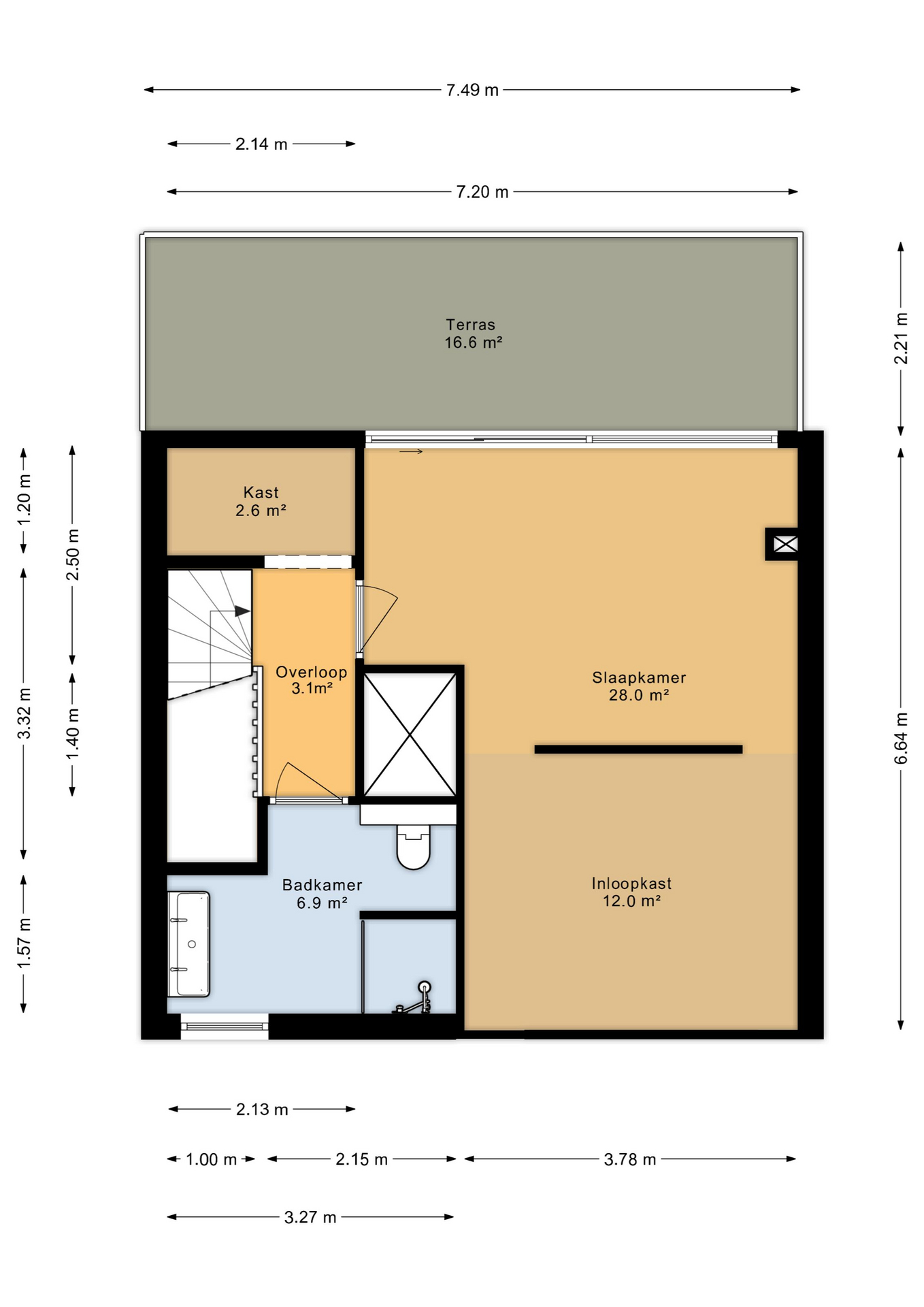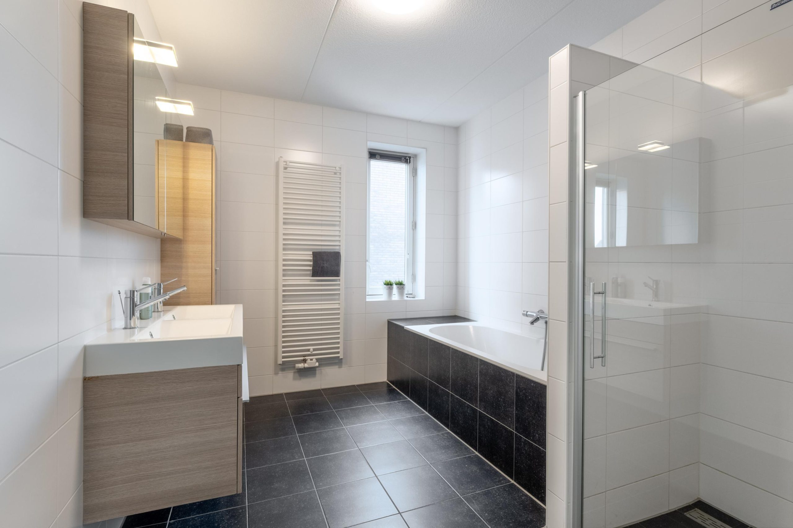 De tweede verdieping verrast met een royale master bedroom. Deze verdieping beschikt over een overloop met kastruimte, een tweede badkamer met dubbel wastafelmeubel, douche en toilet én een groot terras met vrij uitzicht die je kunt bereiken via de schuifpui. De master bedroom heeft bovendien een ruime inloopkast en biedt ultiem slaapcomfort.