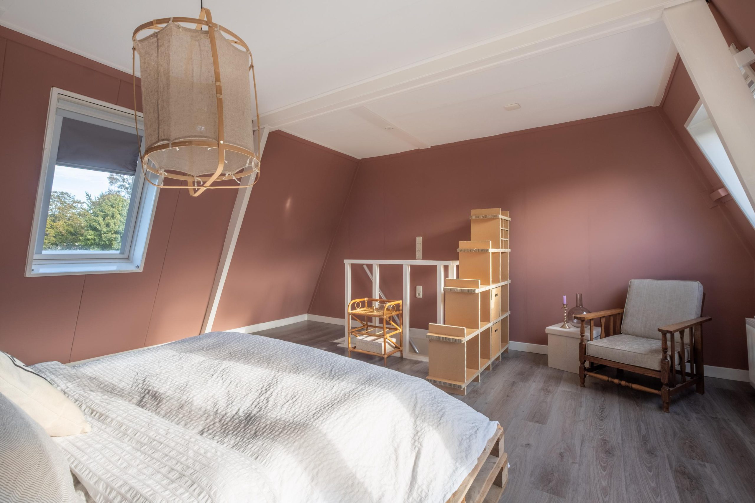 De verdieping is verrassend ruim: hier bevindt zich één grote slaapkamer over de volle breedte van het huis. Dankzij de vele ramen is het hier licht en luchtig. Wie meer kamers wil, kan deze ruimte eenvoudig opdelen in twee slaapkamers. De dakisolatie is in 2014 aangebracht, wat zorgt voor extra comfort.