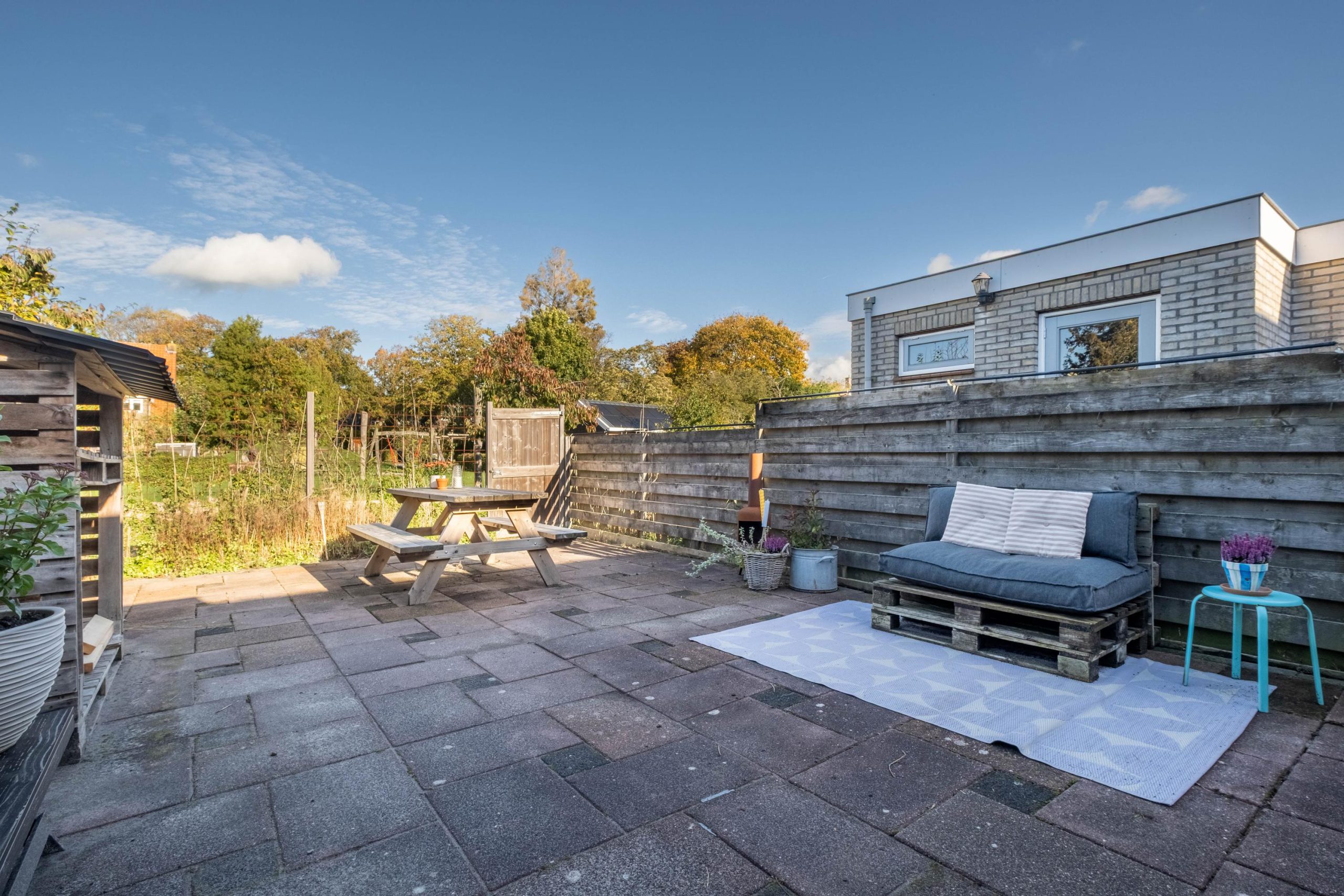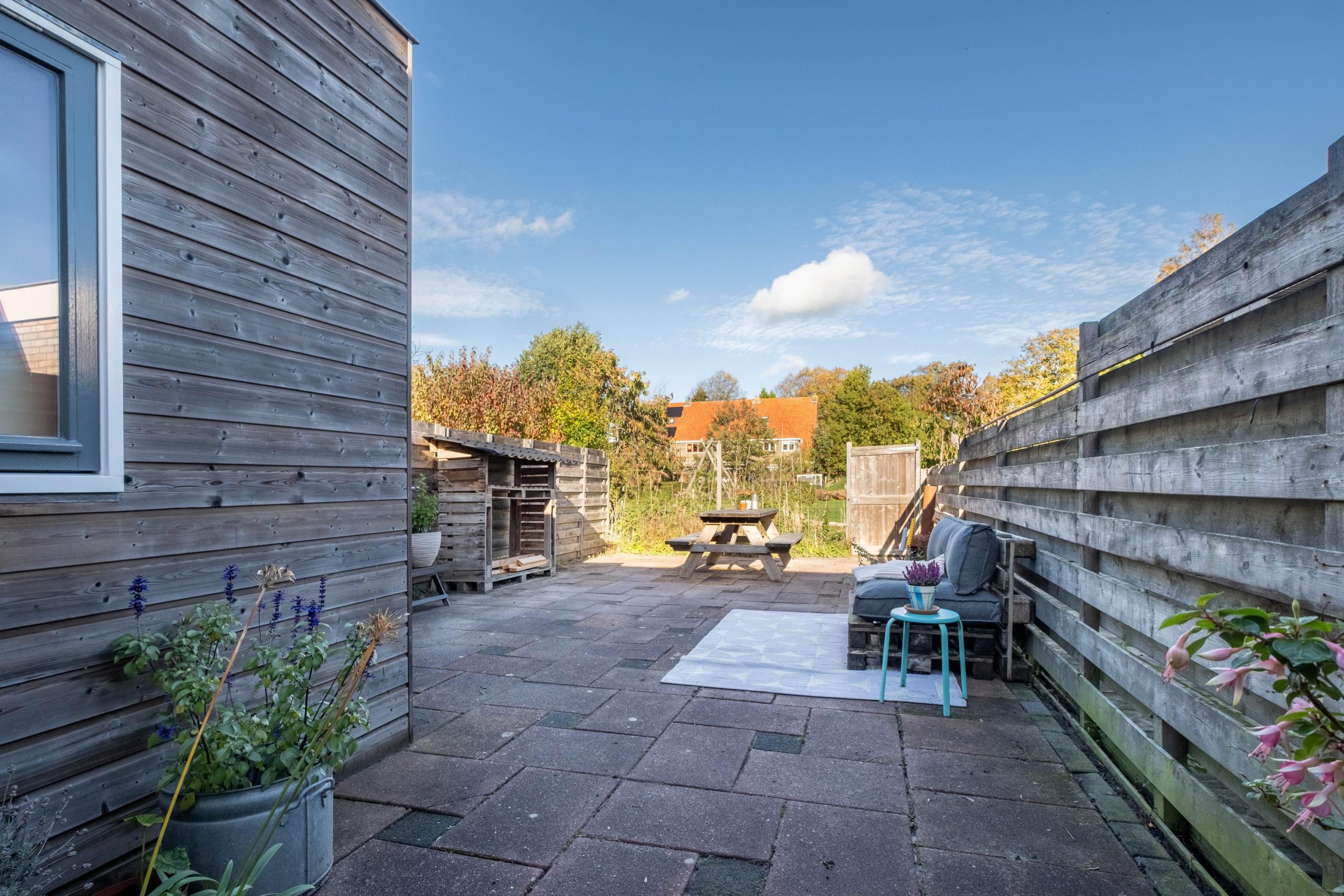 De achtertuin ligt op het noordoosten en biedt een vrij en open gevoel dankzij de speeltuin direct achter het huis. Er is genoeg plek voor een zithoek, planten of een speelplek. Achterin de tuin staat een berging met witgoedaansluiting en de cv-ketel (eigendom, 2022). Het buitenschilderwerk is in 2023 nog aangepakt, dus ook daar hoef je voorlopig niets aan te doen. De voortuin wordt gebruikt met een jaarlijkse retributie van € 4,54 aan de gemeente Súdwest-Fryslân.
