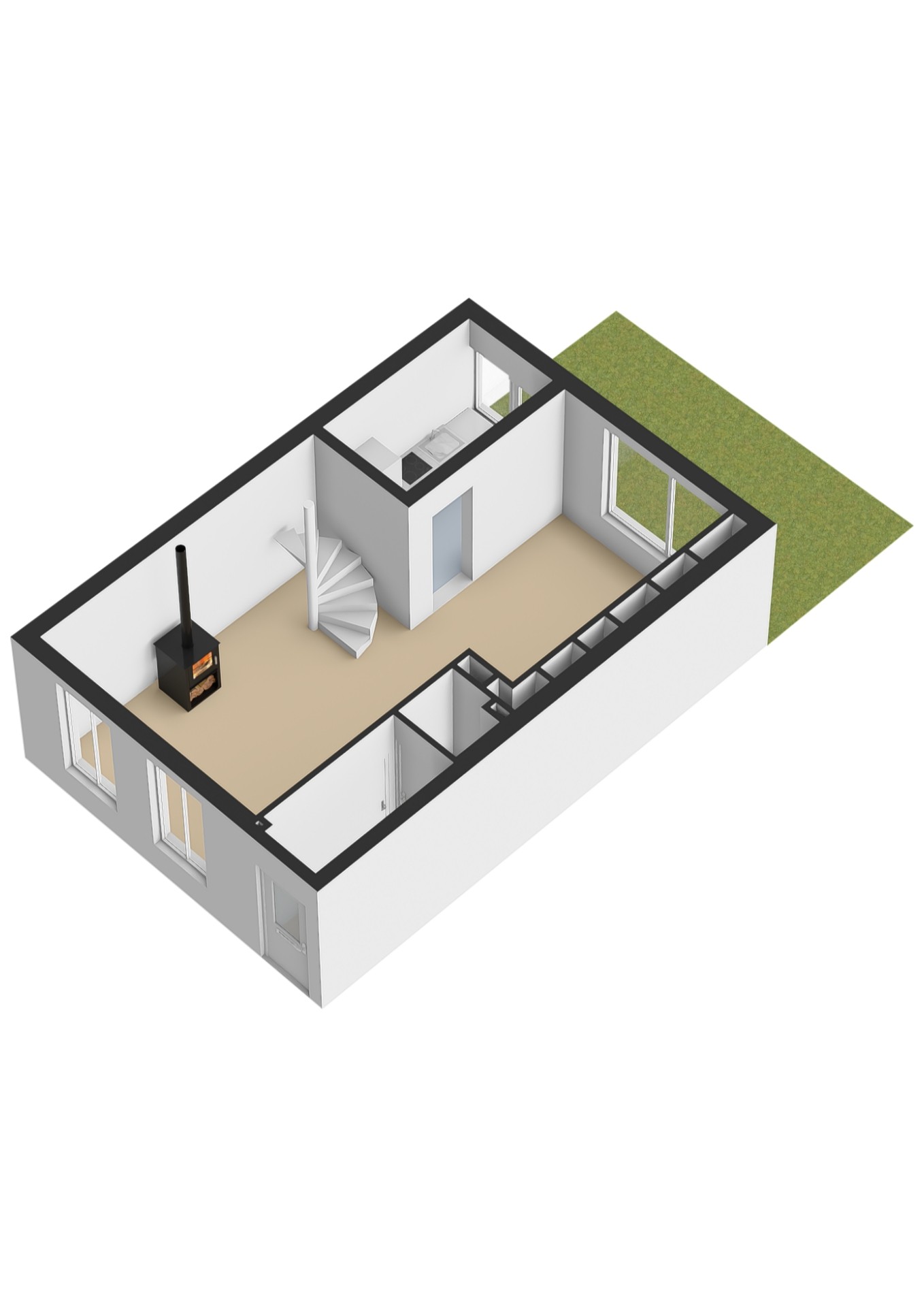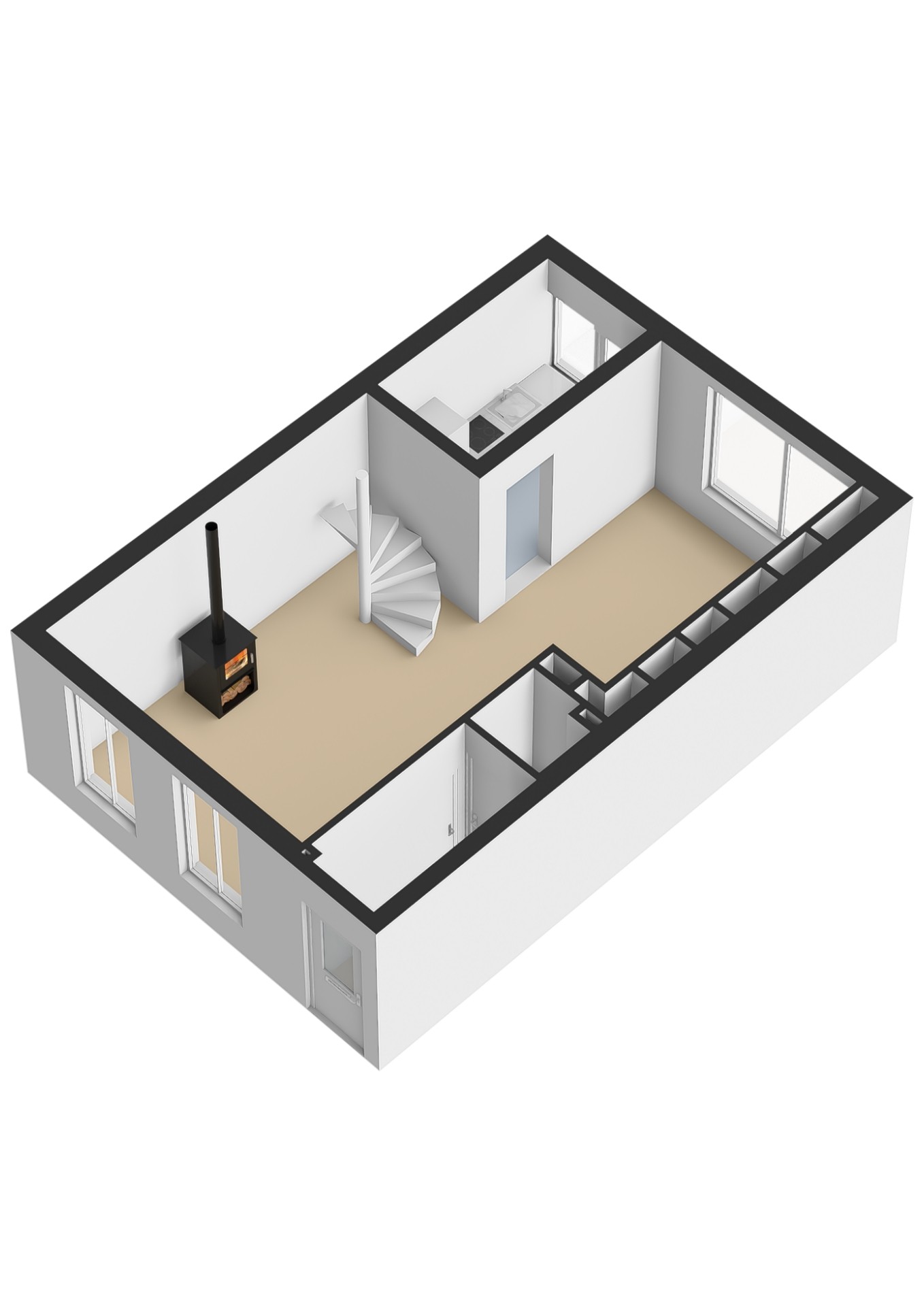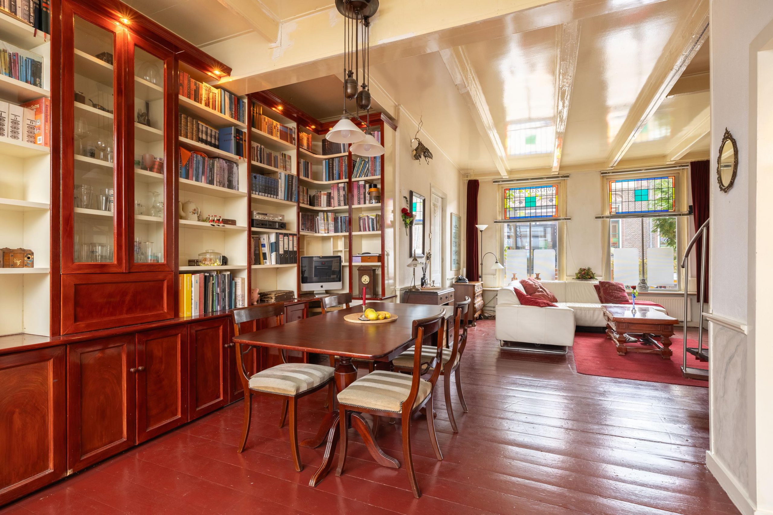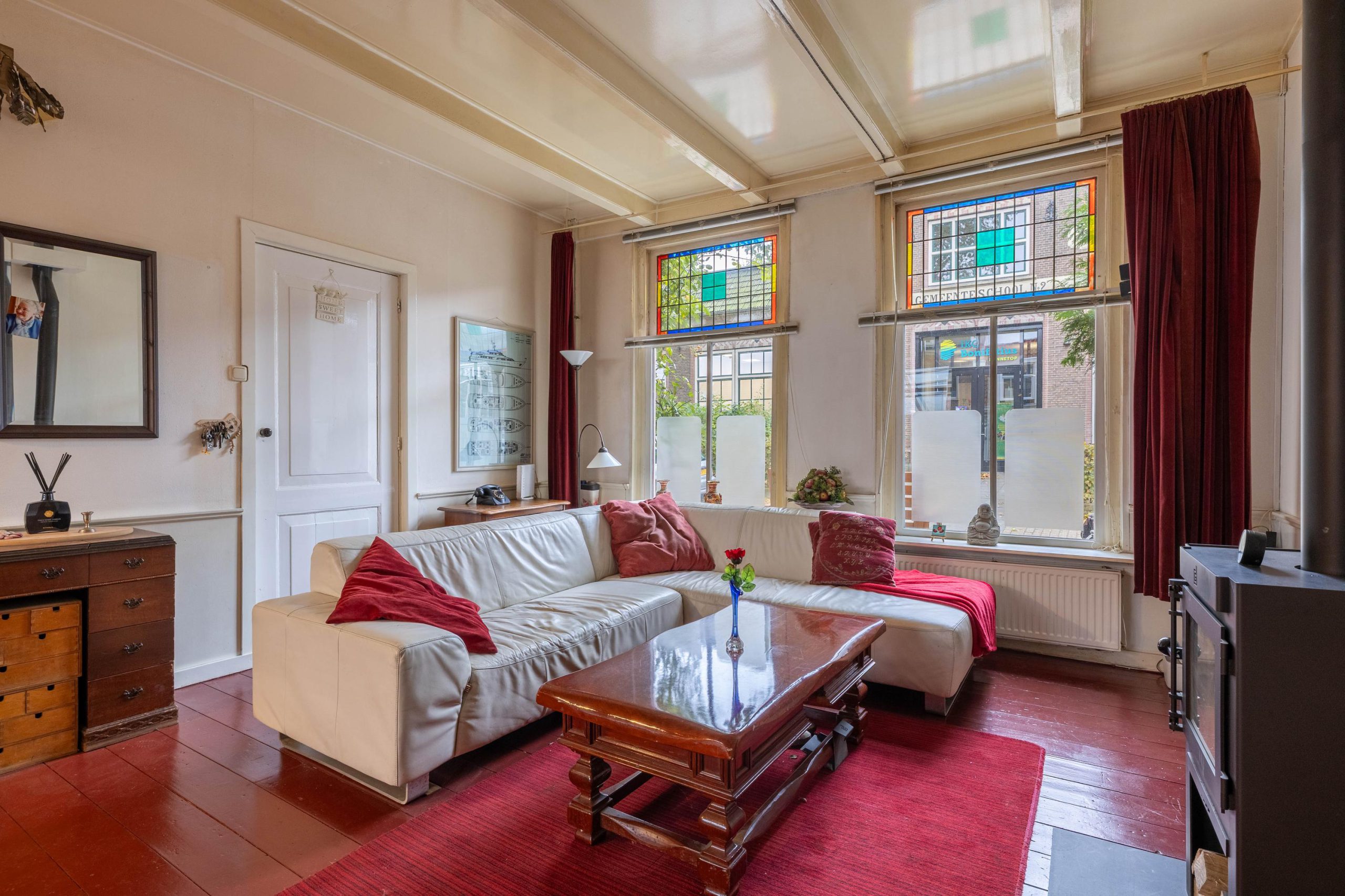 De woonkamers is warme ingericht. De houtkachel, houtenvloer en balkenplafond zorgen samen voor een warme, knusse sfeer. De trap naar boven geeft het geheel een speels accent. Aan de voorzijde is het gezellig zitten met uitzicht op de rustige straat, terwijl er aan de achterzijde plek is voor een eettafel bij het raam.