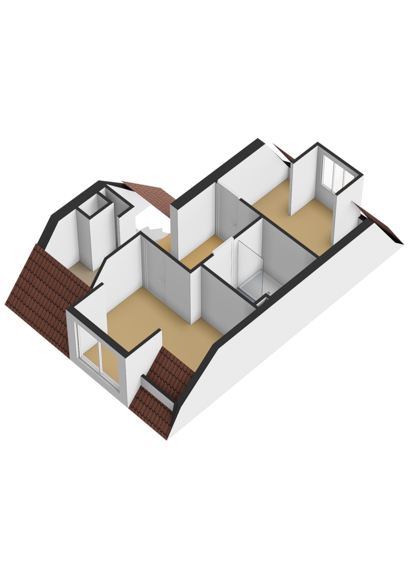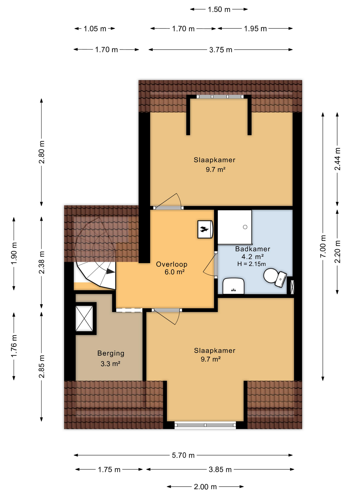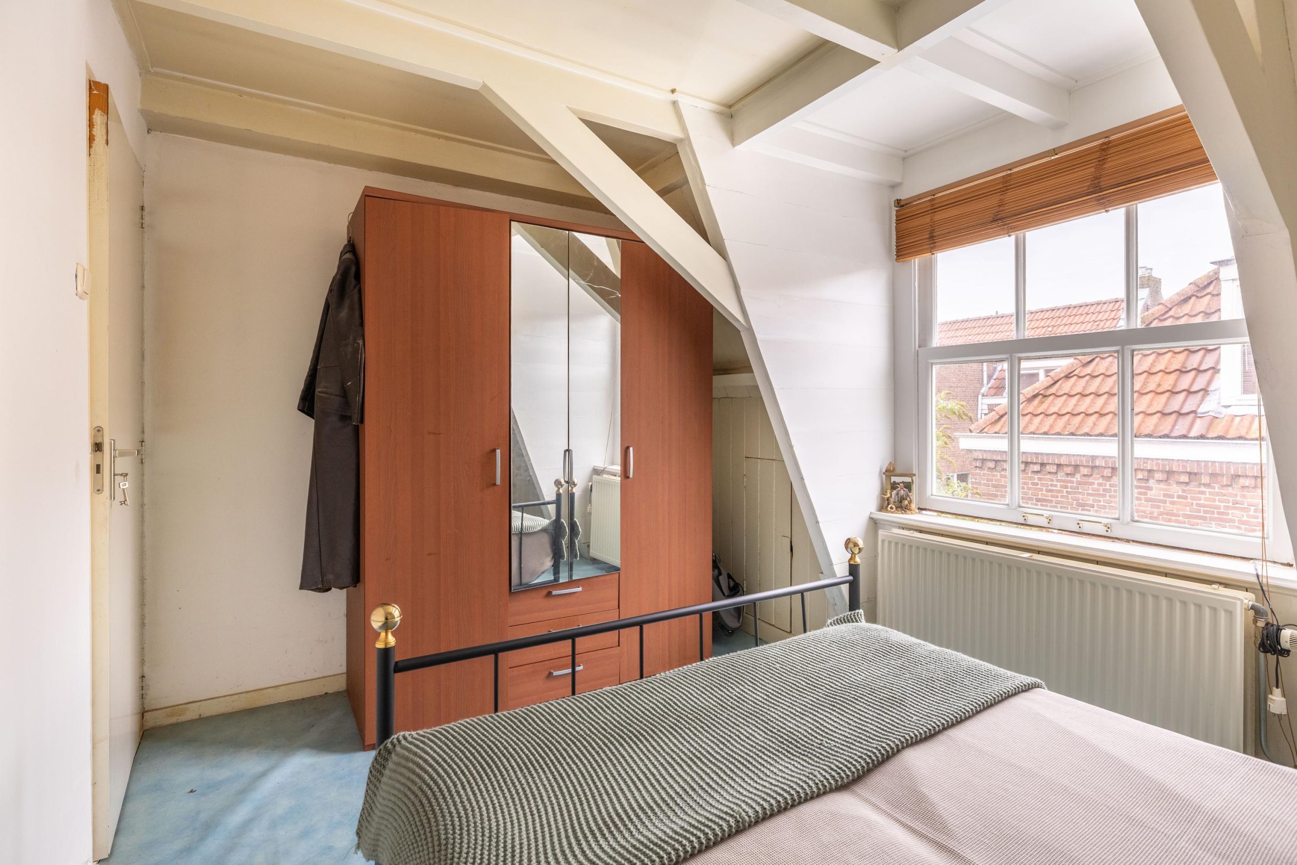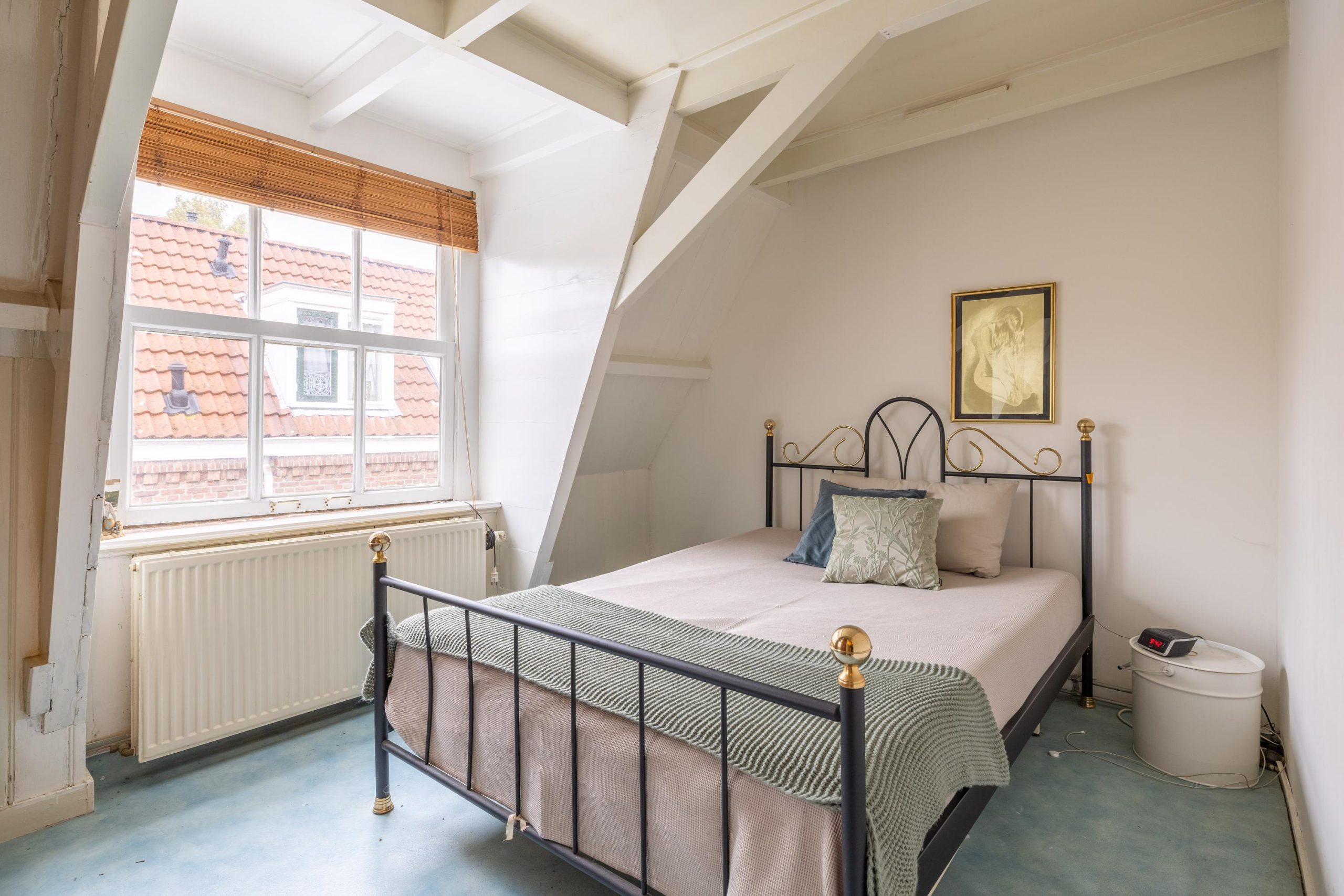 De wenteltrap brengt je naar boven, waar twee slaapkamers zijn te vinden. De grootste kamer kijkt uit over de straat. De tweede is ideaal als logeer kamer of werkkamer. De badkamer ligt ertussenin en is praktisch ingericht.
