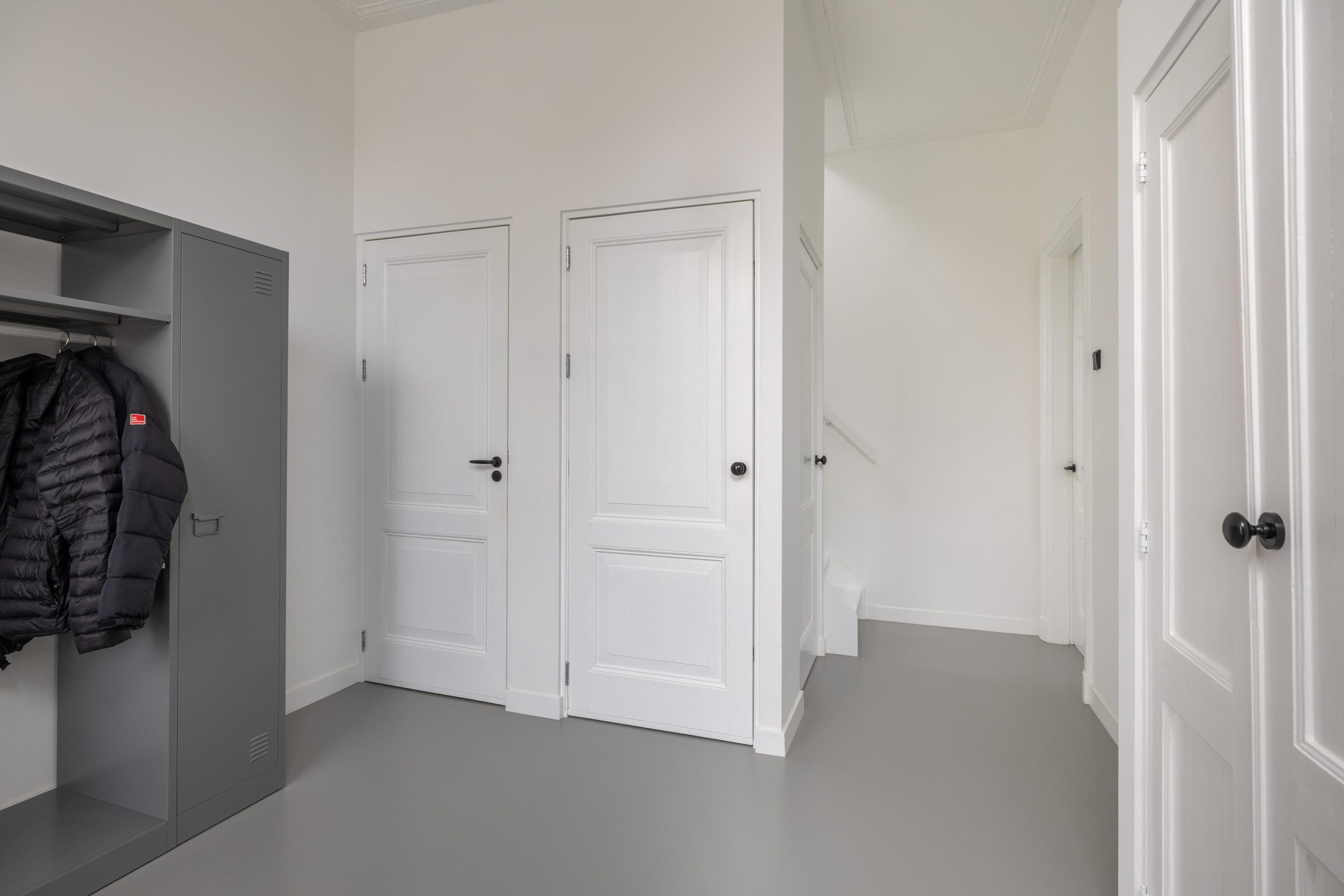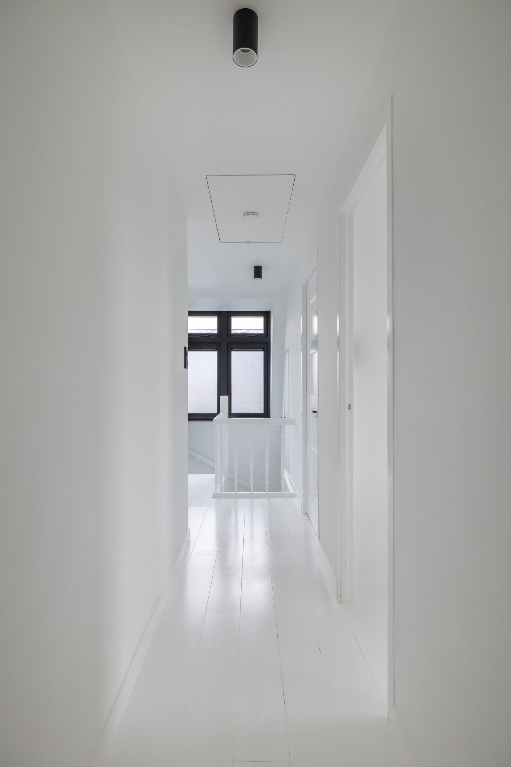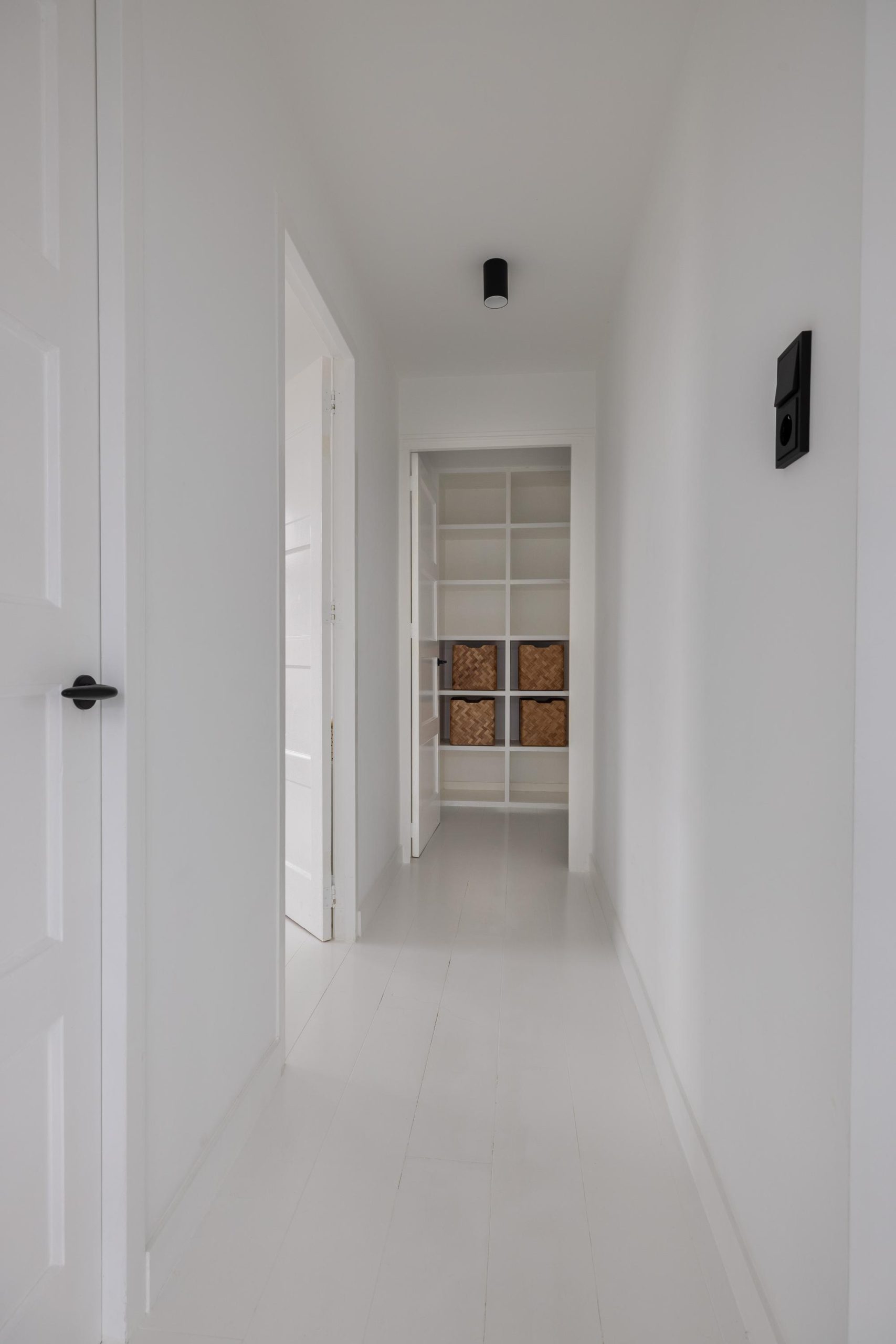 Bij binnenkomst zet de ruime hal direct de toon. Strakke wanden, mooie lijnen en een rustige uitstraling. Het toilet is netjes weggewerkt en de praktische witgoedkast zorgt ervoor dat alles logisch en opgeruimd aanvoelt. Dit is geen binnenkomst waar je snel doorheen loopt, dit is een entree die klopt.