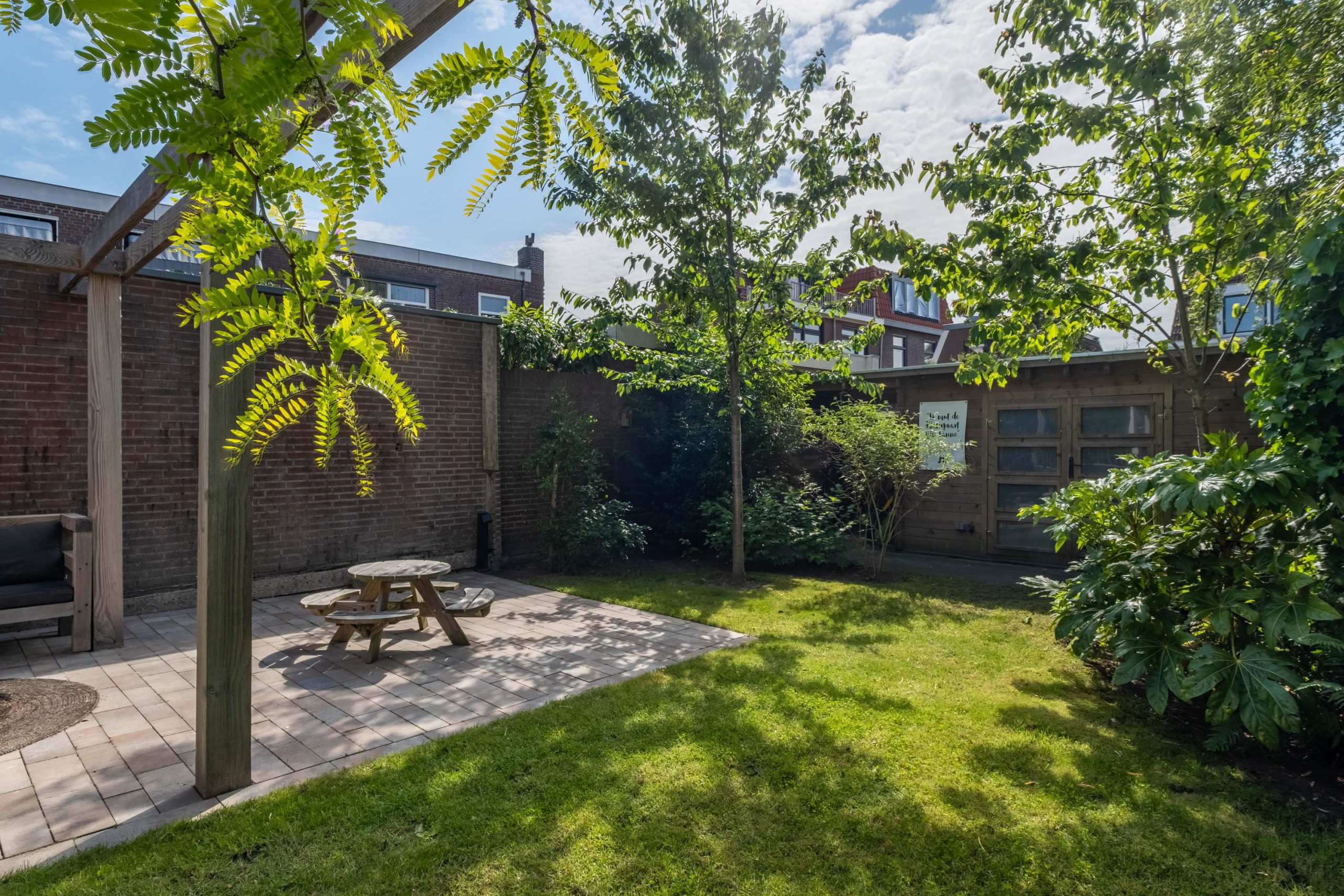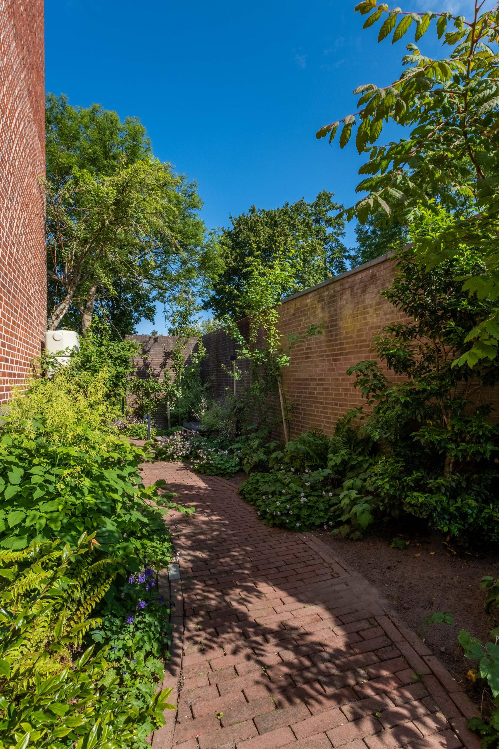 En dan de tuin – een ware verrassing. Achter het huis ligt een royale, opnieuw aangelegde stadstuin waar privacy en groen centraal staan. Hier geniet je in alle rust van de zon, een goed boek of een barbecue met vrienden, terwijl je nauwelijks doorhebt dat je je midden in de stad bevindt.