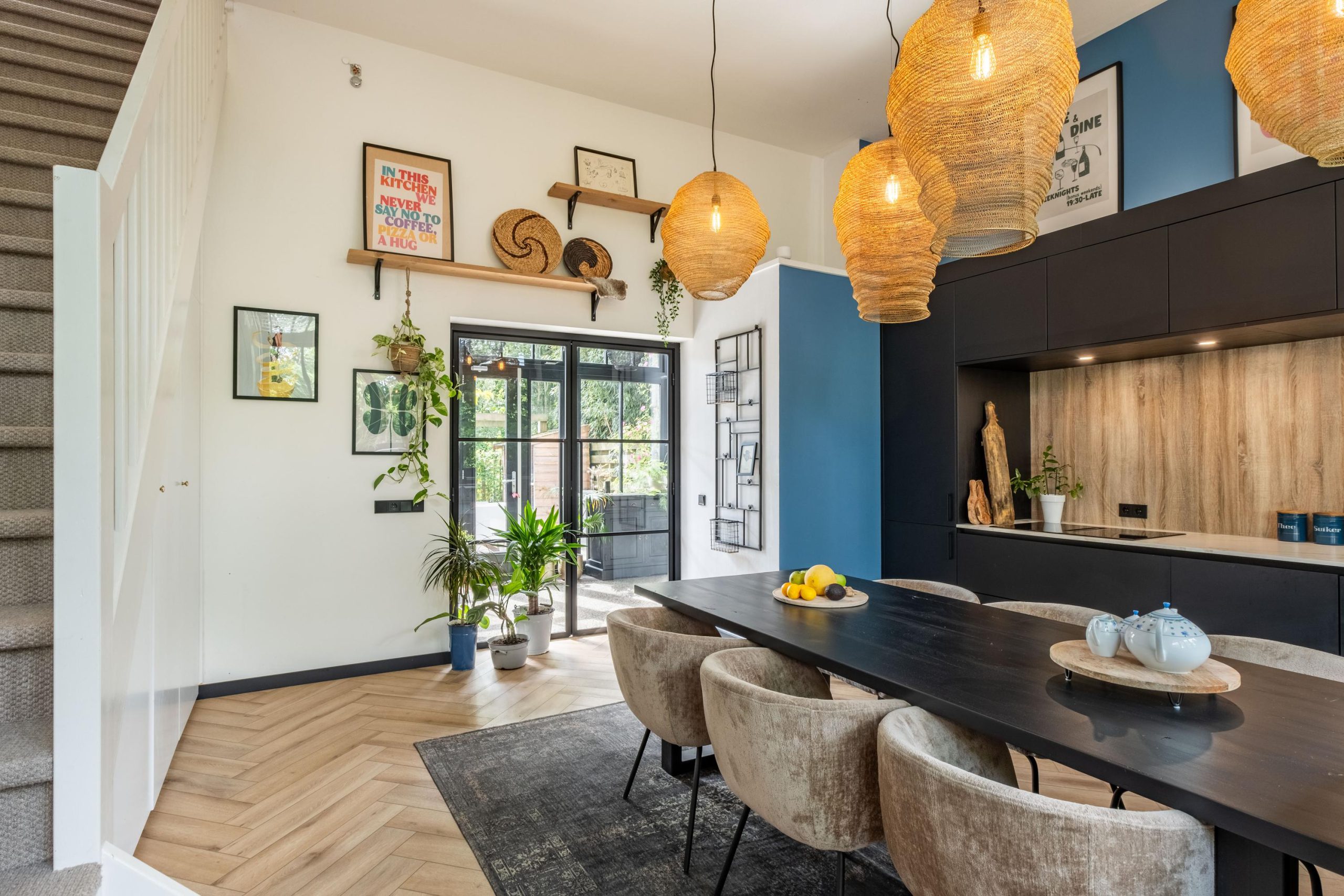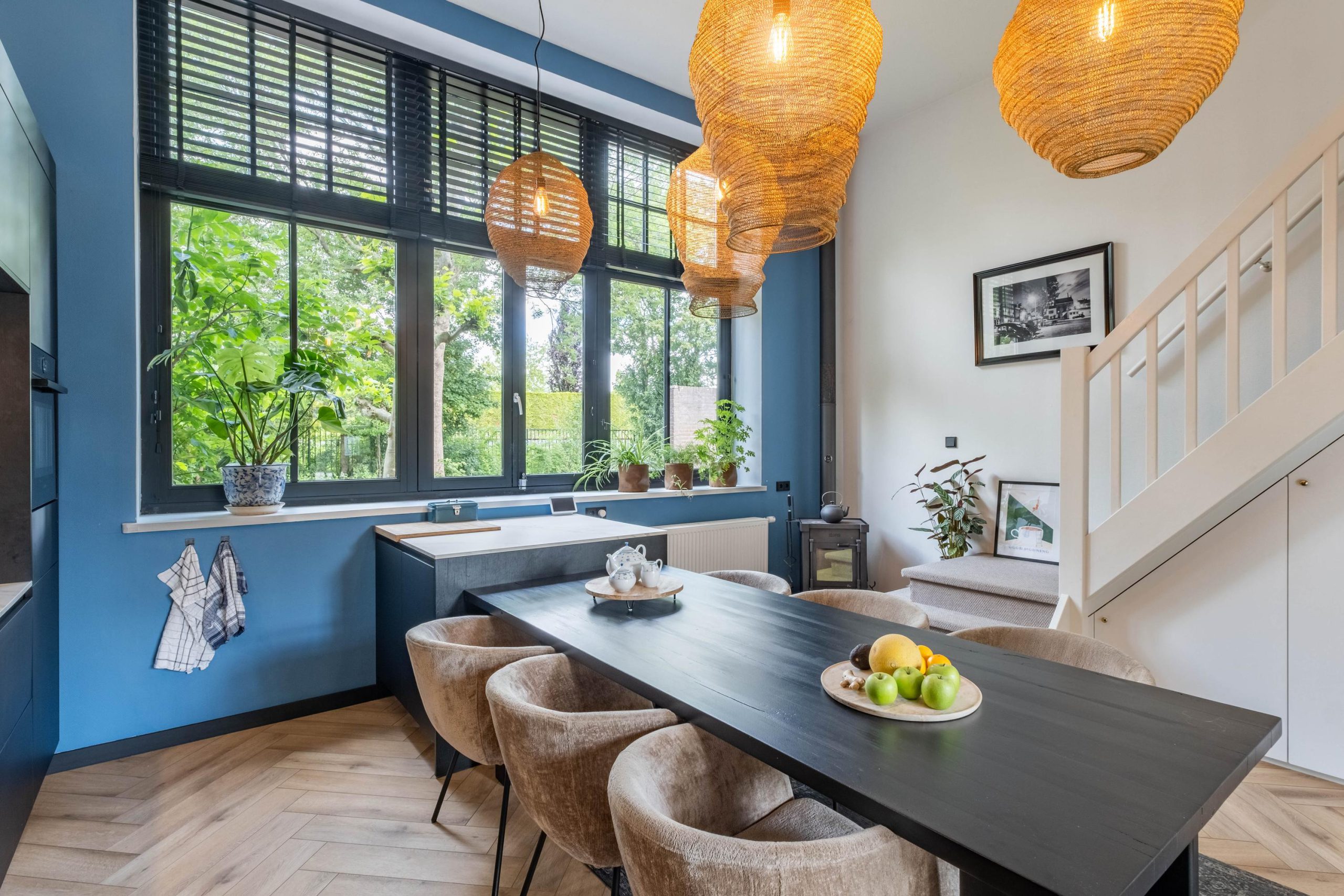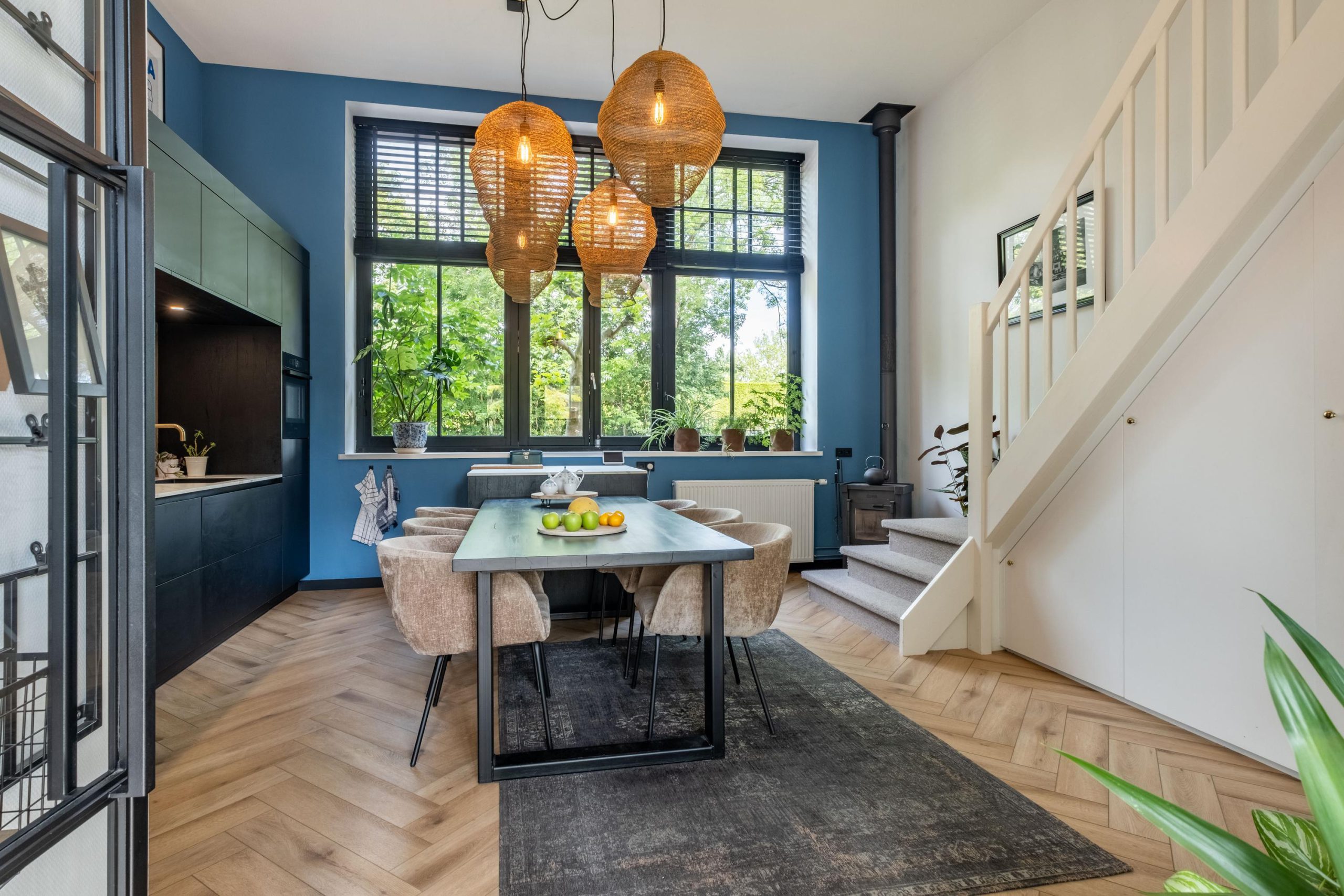 Bij binnenkomst valt direct de hoogte op. De plafonds reiken tot wel vier meter, wat zorgt voor een ongekend ruimtelijk gevoel. De ruime hal met originele terrazzo vloer verraadt nog een beetje dat dit eigenlijk een oud schoolgebouw is. Via de in 2022 geplaatste stalen taatsdeuren kom je in de heerlijke woonkeuken. Deze ruimte op de begane grond vormt het hart van het huis – een plek waar je samenkomt, kookt, lacht en geniet. De keuken is in 2022 volledig vernieuwd en van alle gemakken voorzien, inclusief een wijnkoeler voor de liefhebber. Grote raampartijen laten het daglicht royaal binnenstromen en bieden zowel aan de voor- als achterzijde vrij uitzicht.