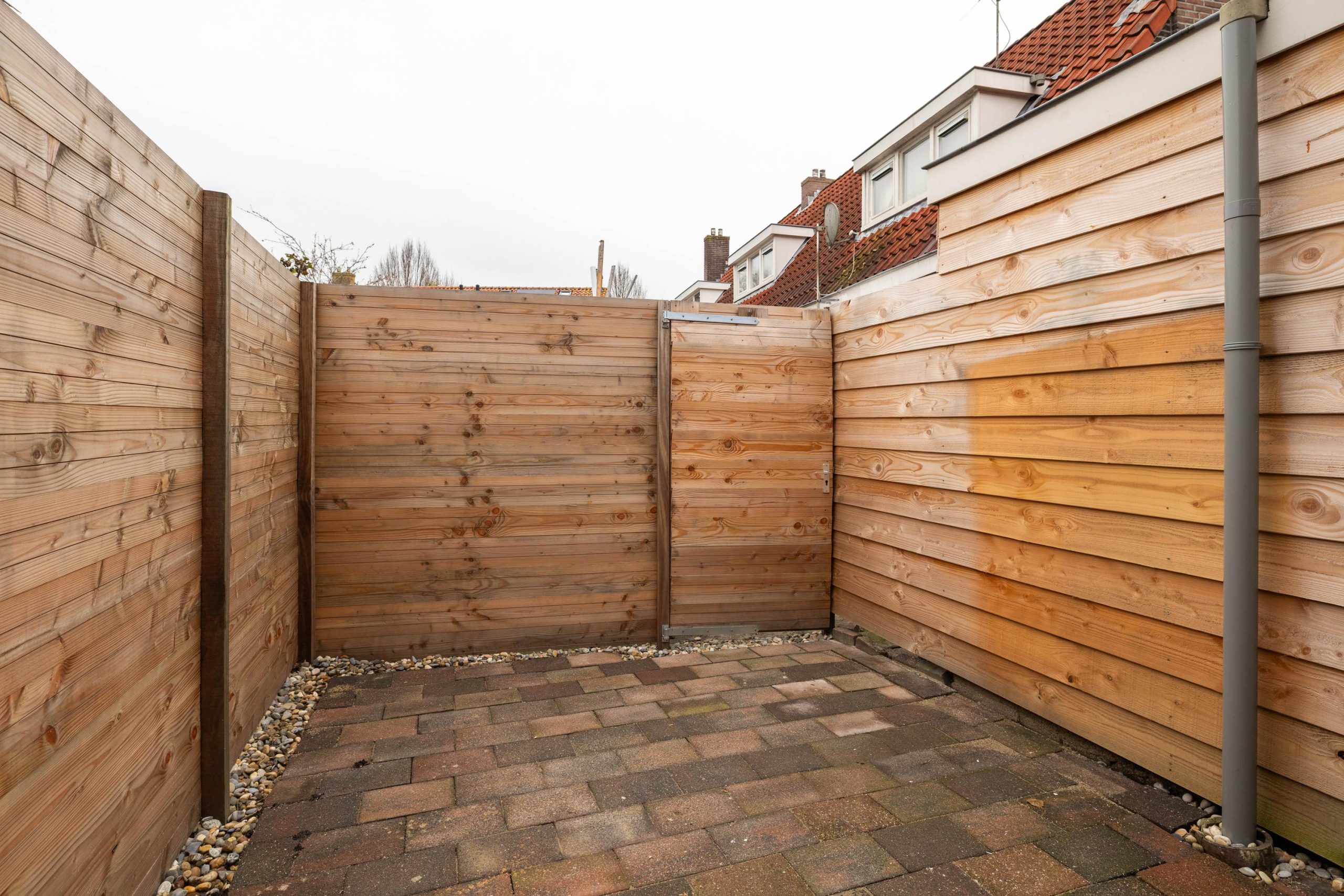 De tuin is voor en achter opnieuw bestraat en er zijn nieuwe schuttingen geplaatst in 2025