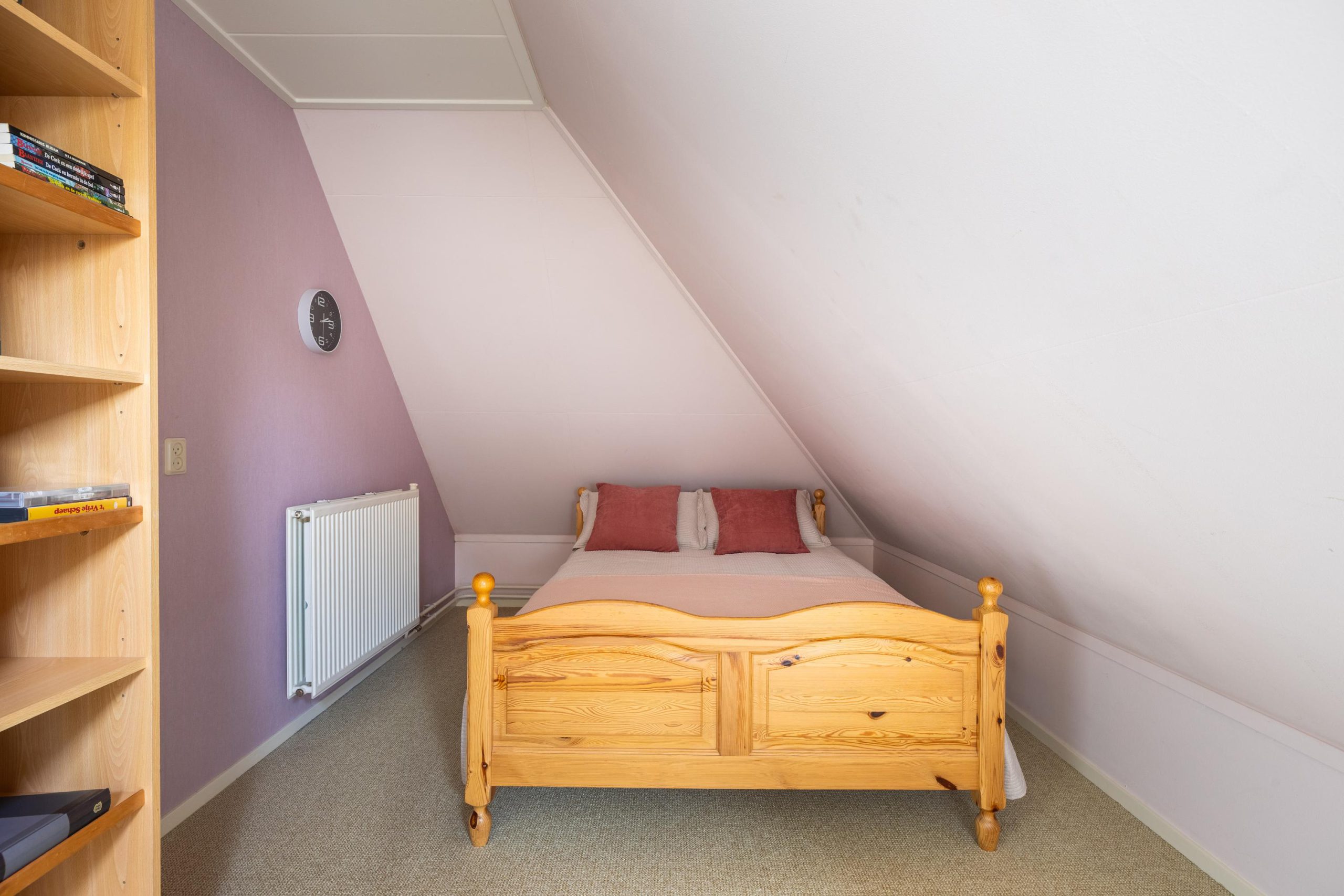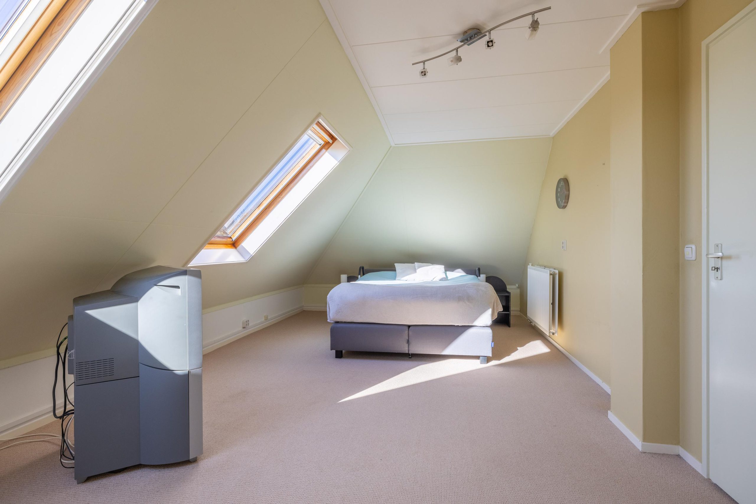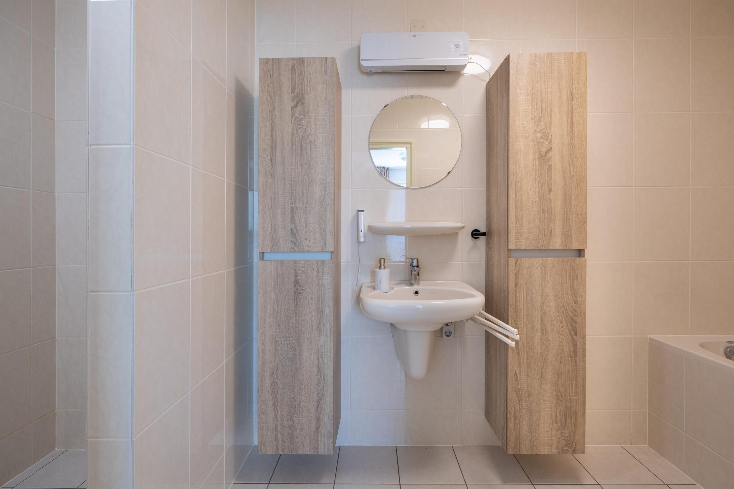 Op de eerste verdieping kom je op een ruime overloop met een handige berging. Hier bevinden zich twee ruime slaapkamers, waarvan één met een nette inbouwkast. Op één slaapkamer is bovendien een airco geplaatst en de ramen zijn voorzien van horren, zodat je ’s zomers heerlijk kunt ventileren. De tweede badkamer op deze verdieping beschikt over een douche, toilet en wastafel. Via een vlizotrap bereik je ook nog een praktische vliering voor extra bergruimte.