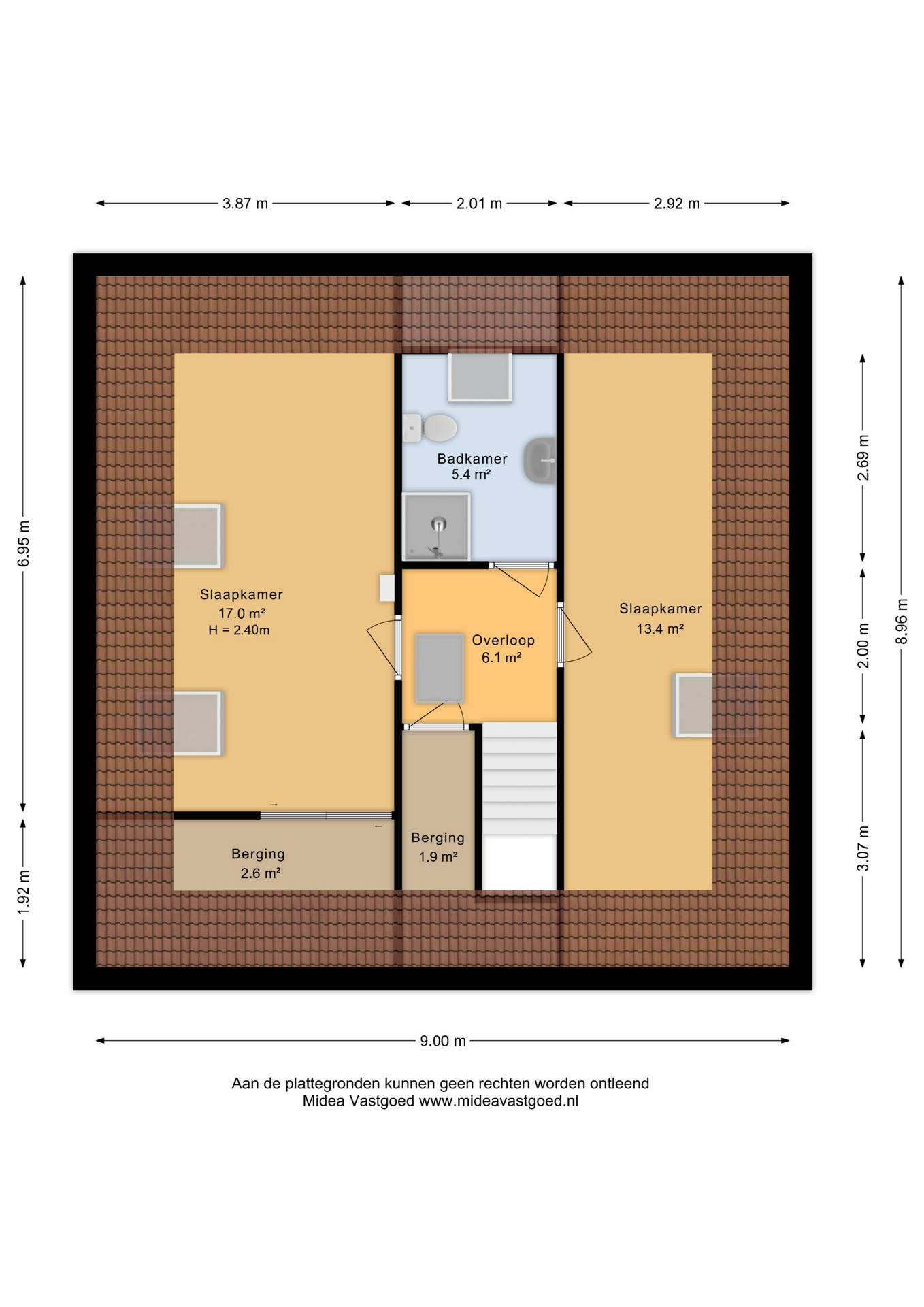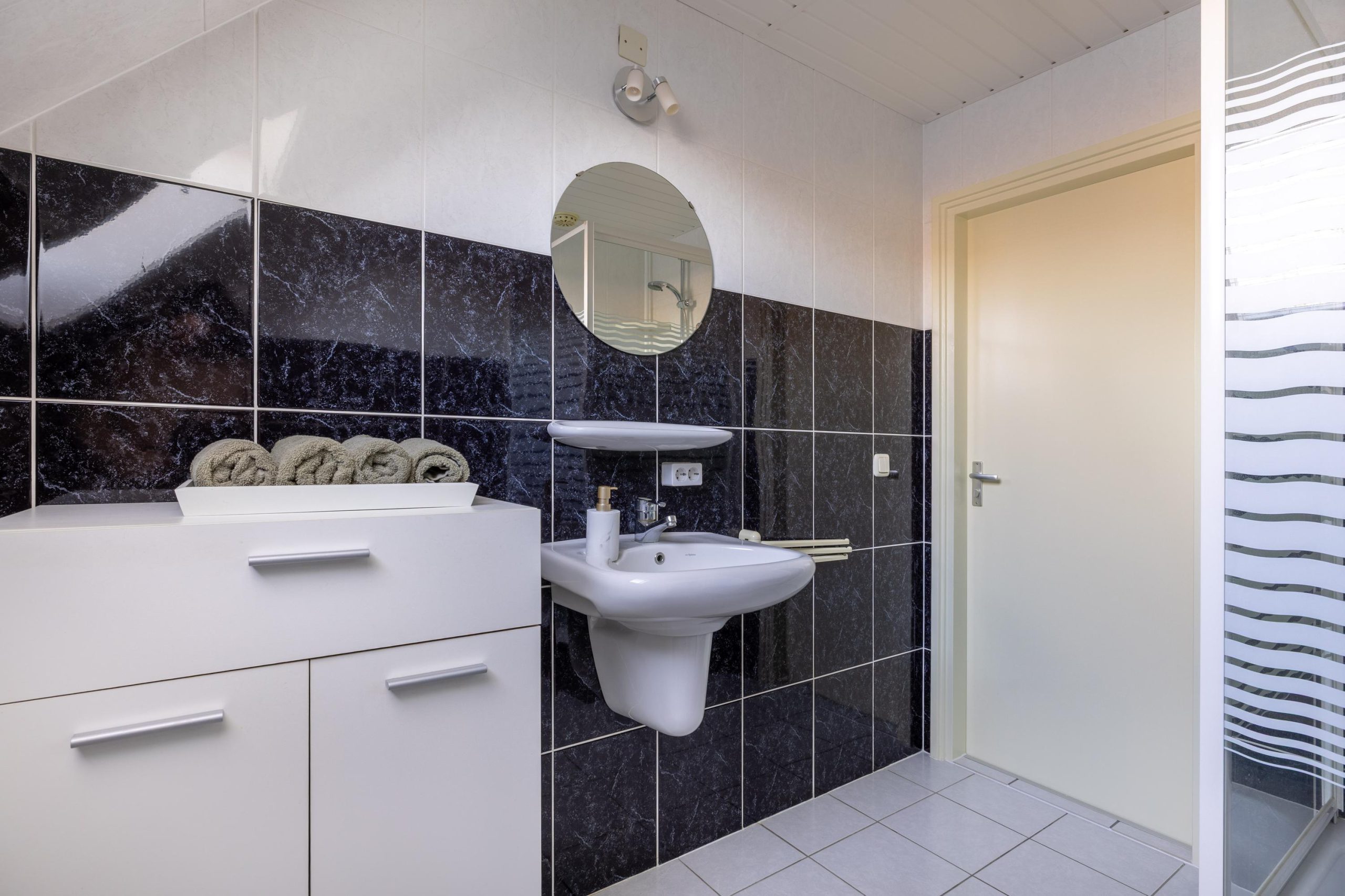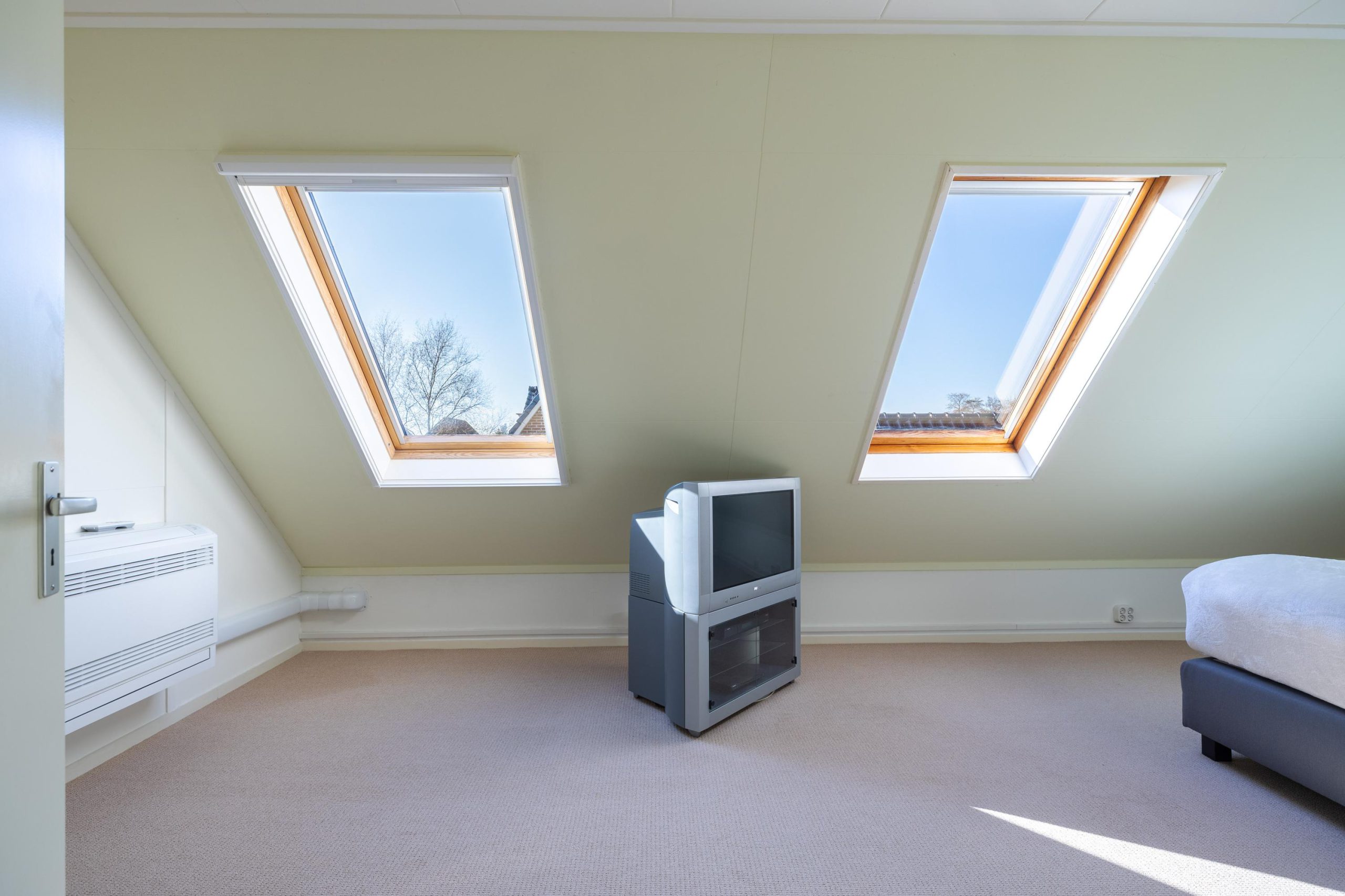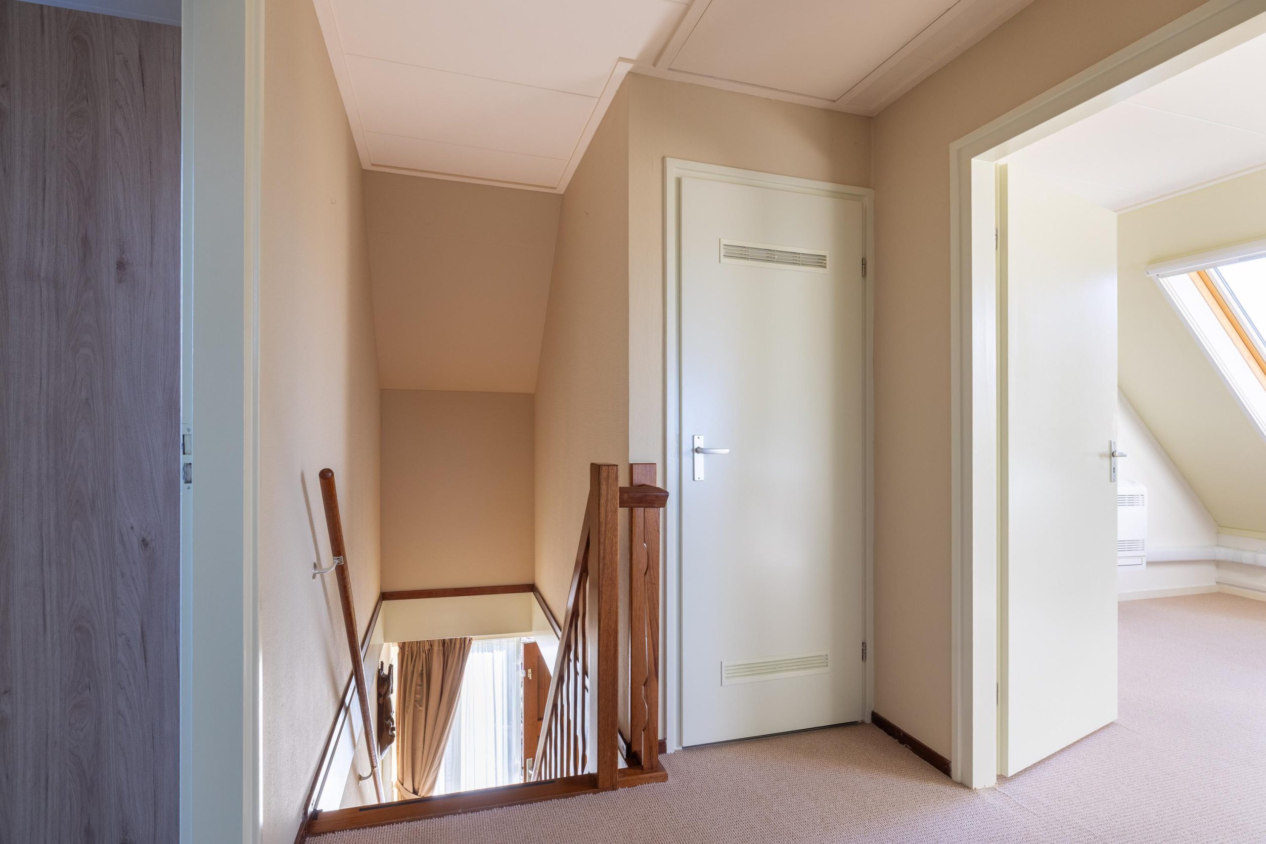 Op de eerste verdieping kom je op een ruime overloop met een handige berging. Hier bevinden zich twee ruime slaapkamers, waarvan één met een nette inbouwkast. Op één slaapkamer is bovendien een airco geplaatst en de ramen zijn voorzien van horren, zodat je ’s zomers heerlijk kunt ventileren. De tweede badkamer op deze verdieping beschikt over een douche, toilet en wastafel. Via een vlizotrap bereik je ook nog een praktische vliering voor extra bergruimte.