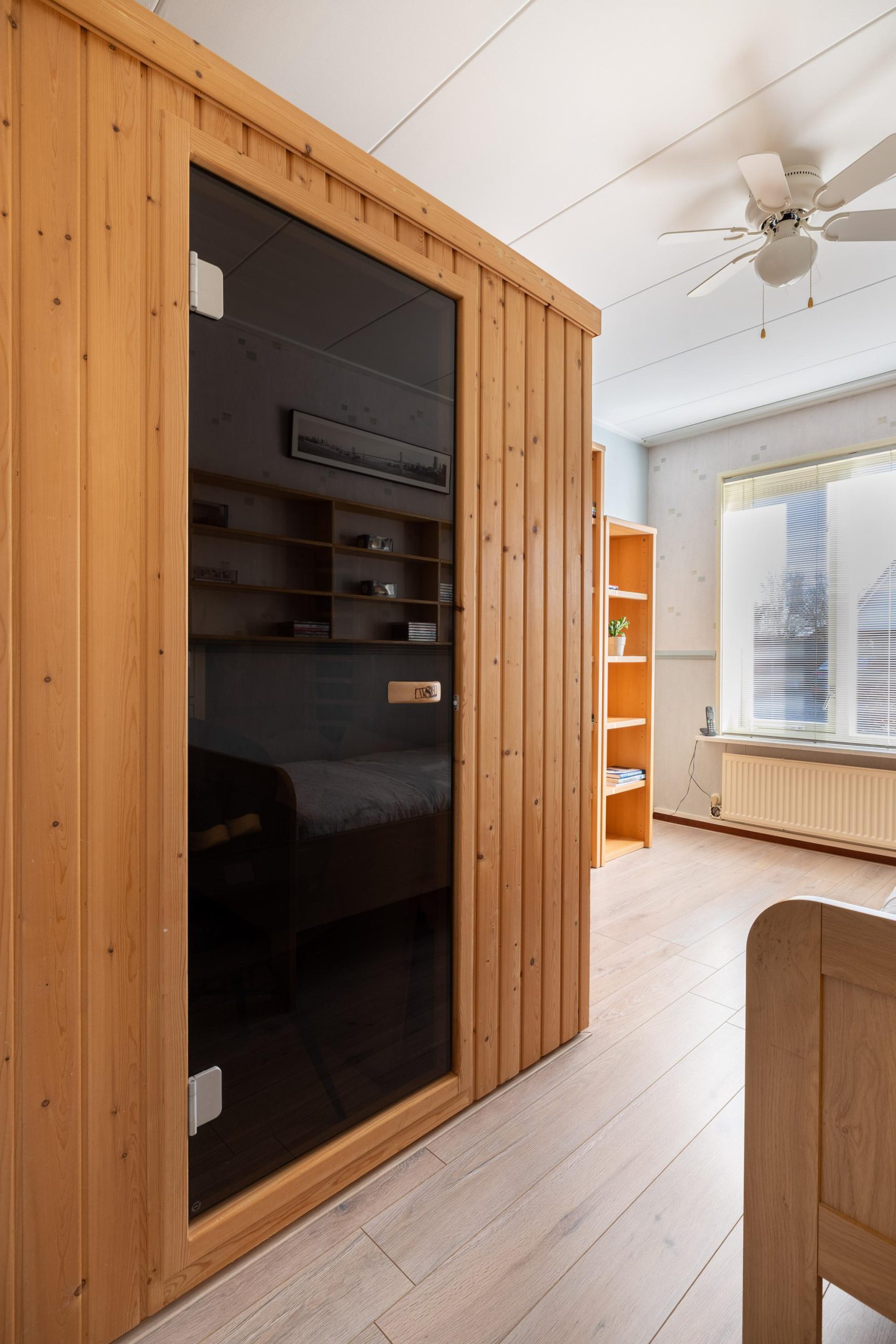 Via de entree stap je binnen in een fijne, ruime hal die direct een warm welkom geeft. Vanuit hier heb je toegang tot het toilet, de leefruimte en een extra kamer aan de rechterzijde. Deze kamer is nu ingericht als slaapkamer of studeerkamer en beschikt over een heerlijke sauna voor twee personen. Hoe fijn is het om na een lange dag gewoon thuis te kunnen ontspannen? Aansluitend vind je hier een royale badkamer met inloopdouche, ligbad en wastafel. Comfort en luxe komen hier samen.