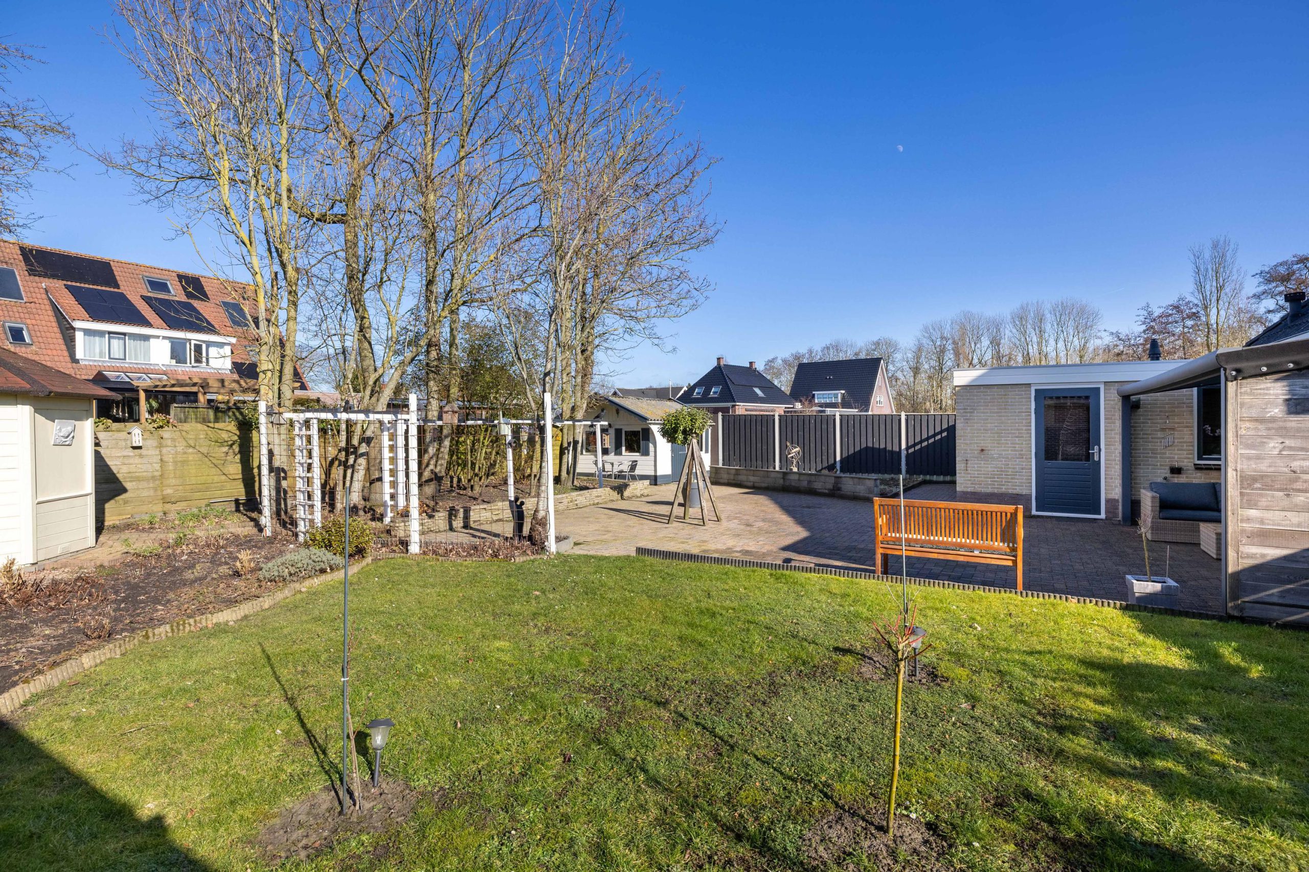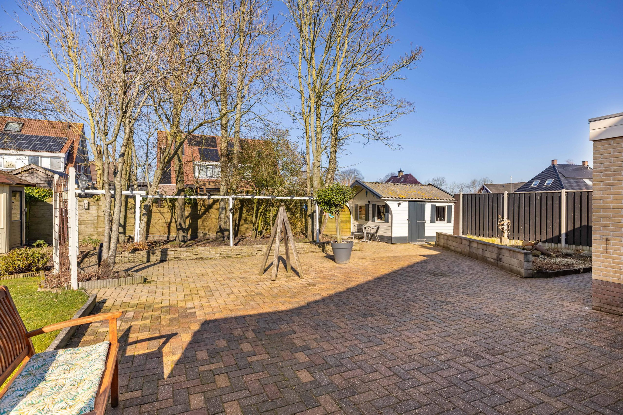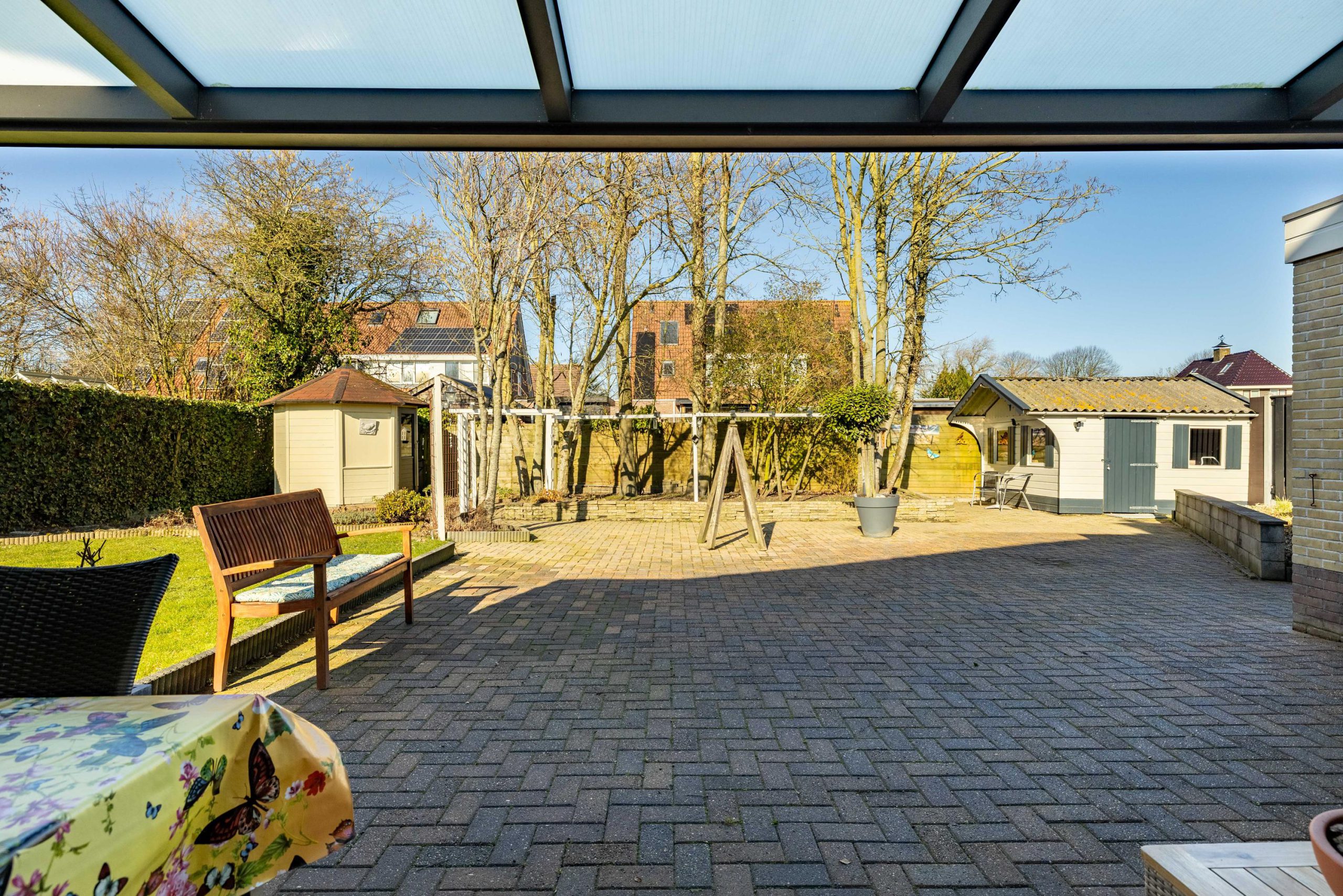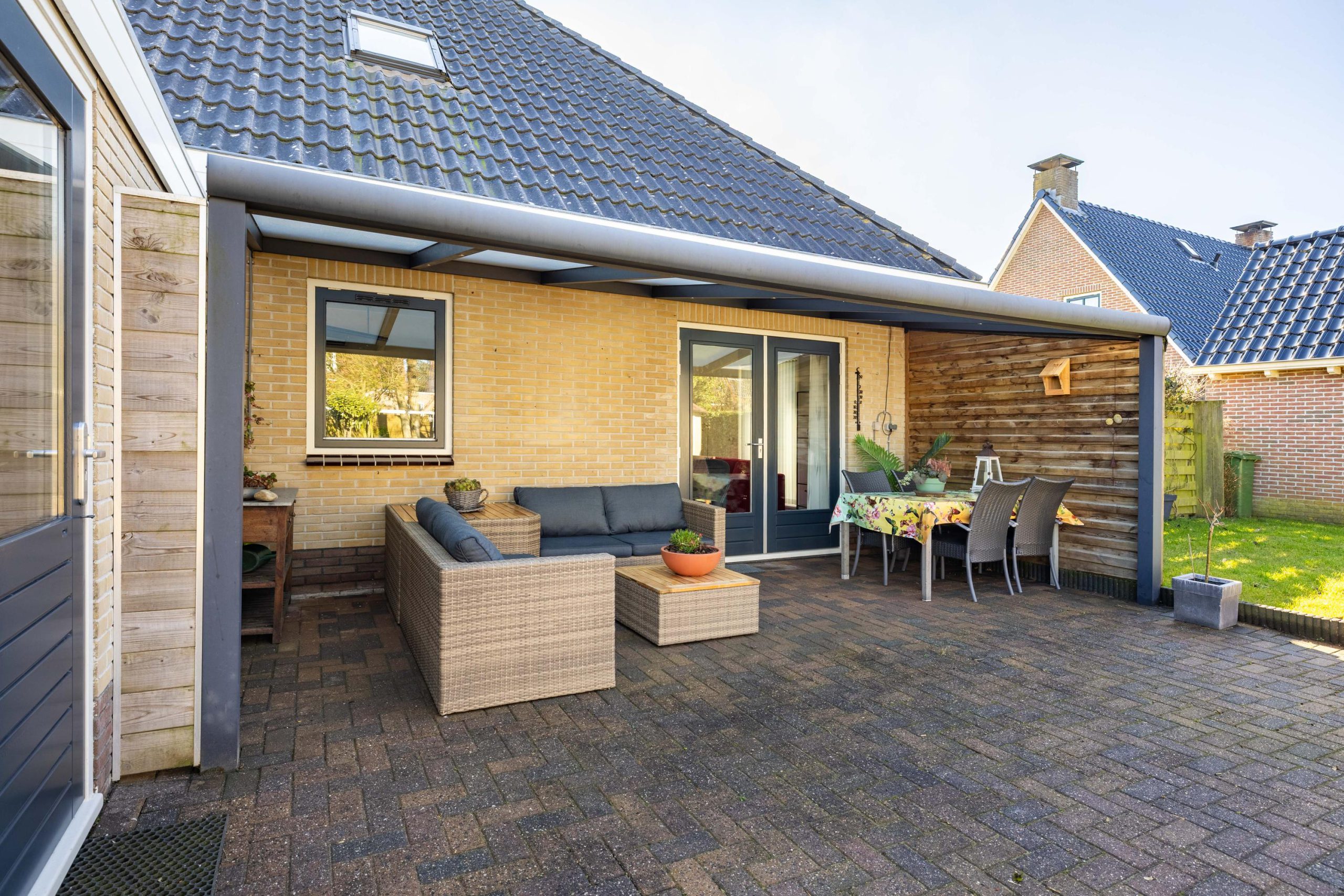 De achtertuin is een plek waar je direct blij van wordt. Ruim opgezet, met veel zon en een fijne overkapping waar je in de zomer heerlijk beschut zit. Of je nu wilt loungen, barbecueën of gewoon genieten van de rust, hier kan het allemaal.