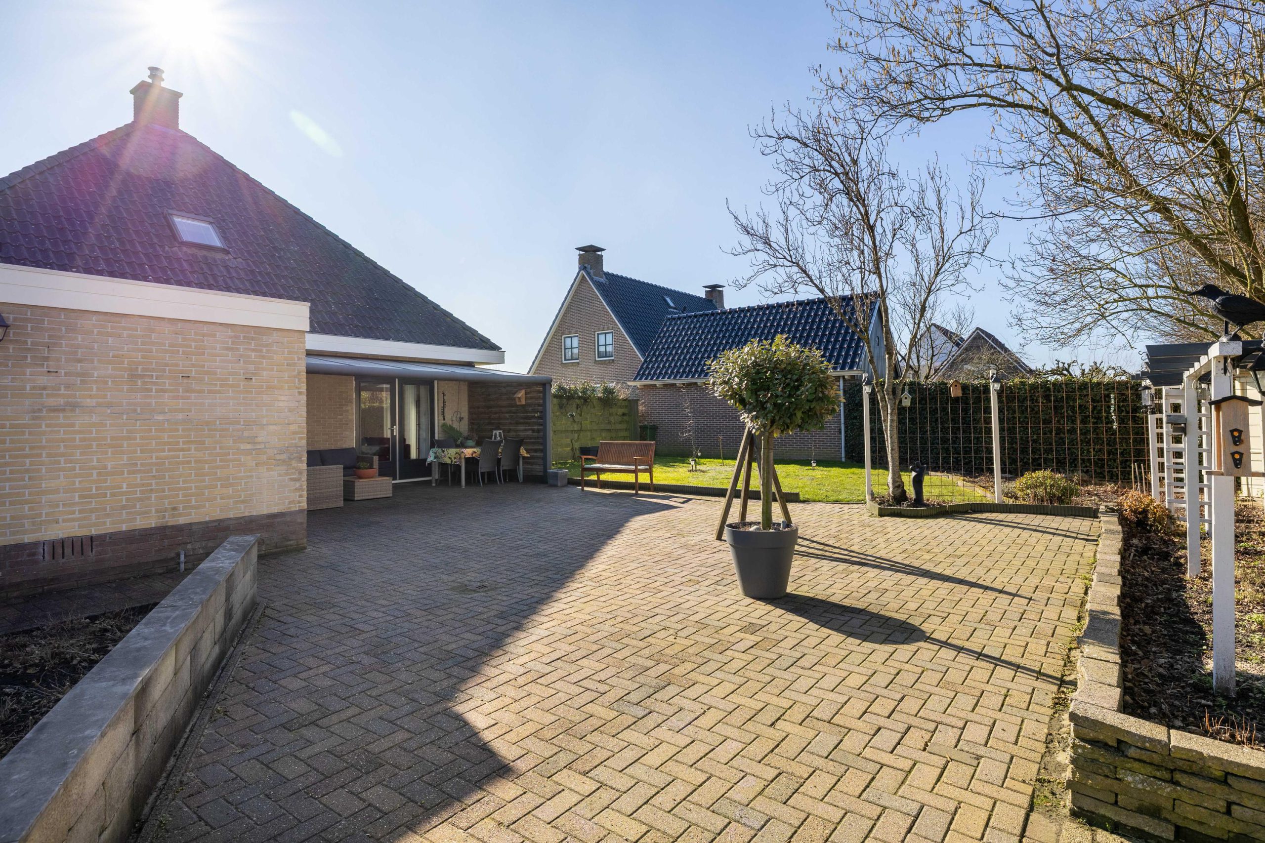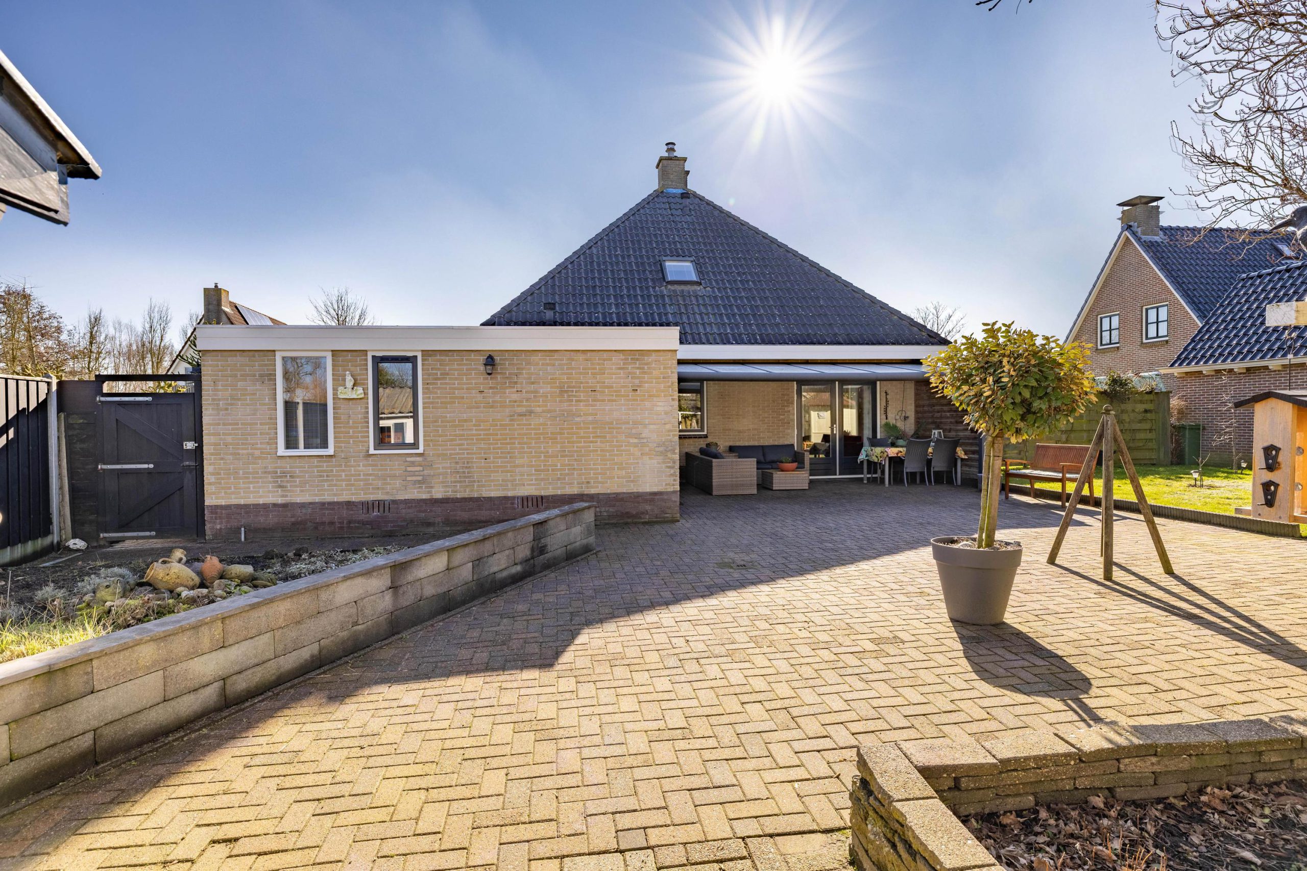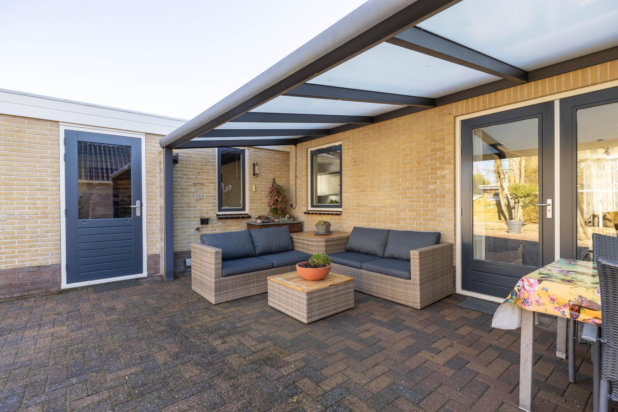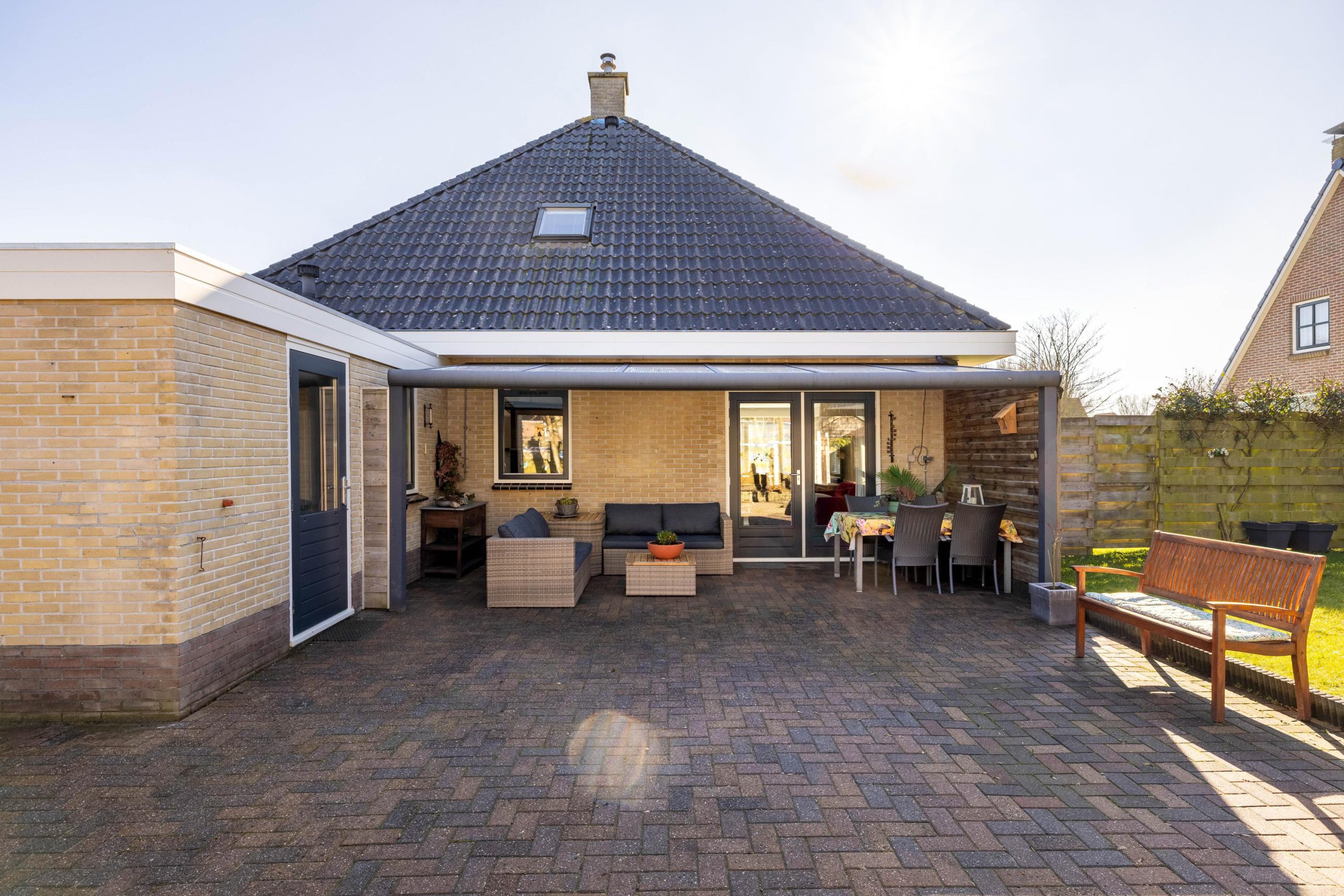 De achtertuin is een plek waar je direct blij van wordt. Ruim opgezet, met veel zon en een fijne overkapping waar je in de zomer heerlijk beschut zit. Of je nu wilt loungen, barbecueën of gewoon genieten van de rust, hier kan het allemaal.