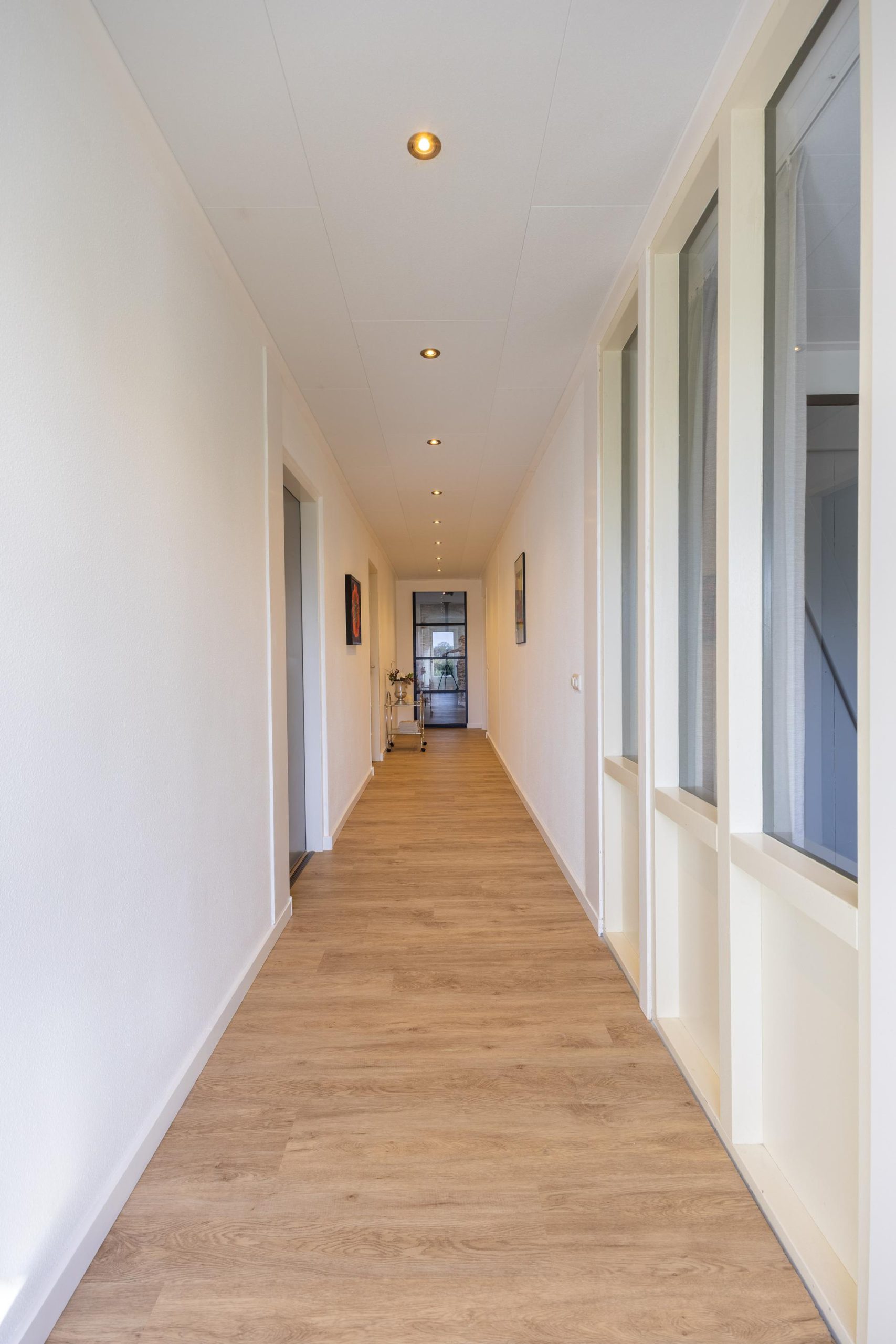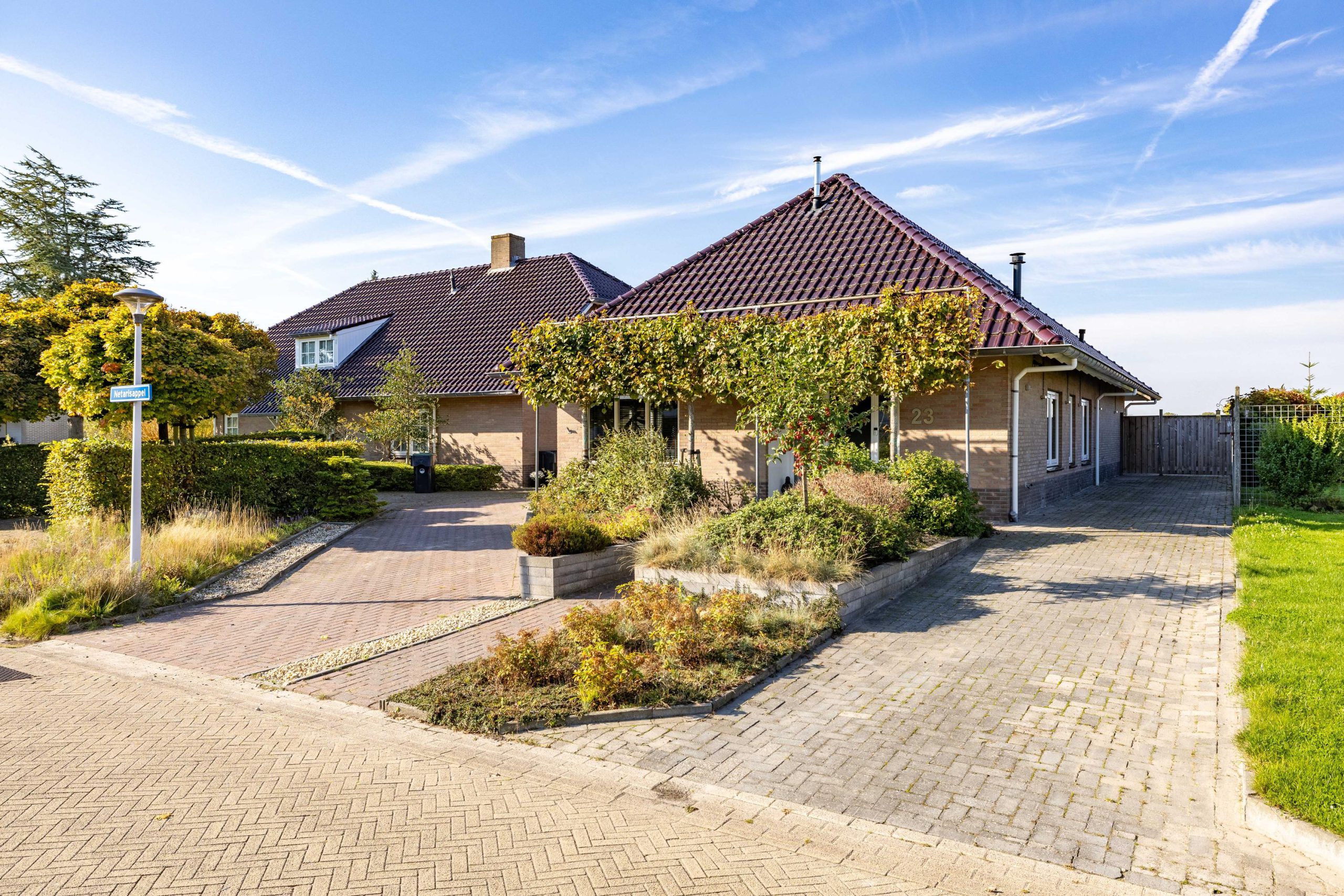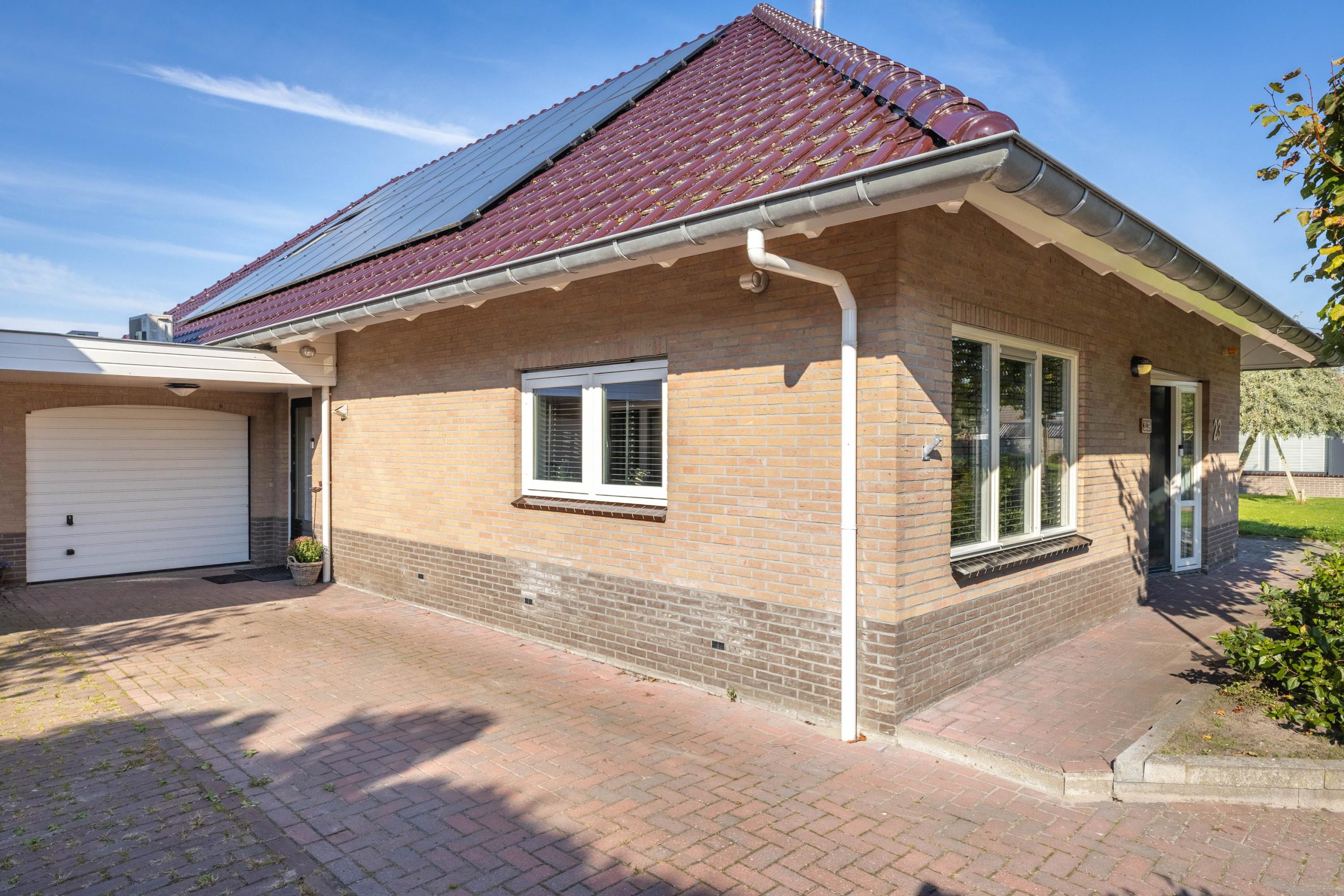 Je bereikt de woning via één van de twee opritten — praktisch en ruim opgezet, met voldoende parkeergelegenheid. De verzorgde voortuin en de vrijstaande garage maken het geheel compleet. Binnen wacht een verrassend lichte en doordachte woning waar je meteen de ruimte voelt.