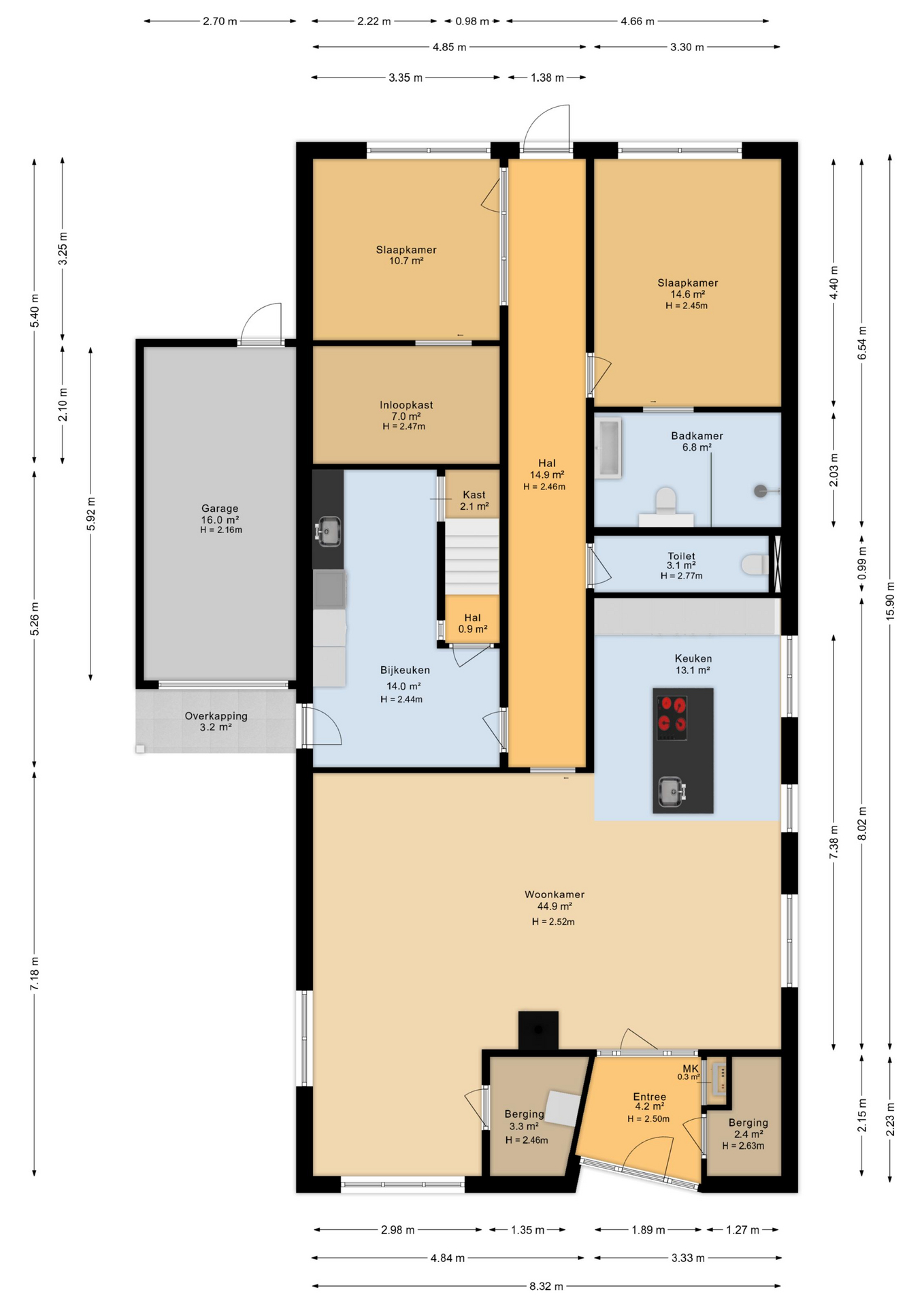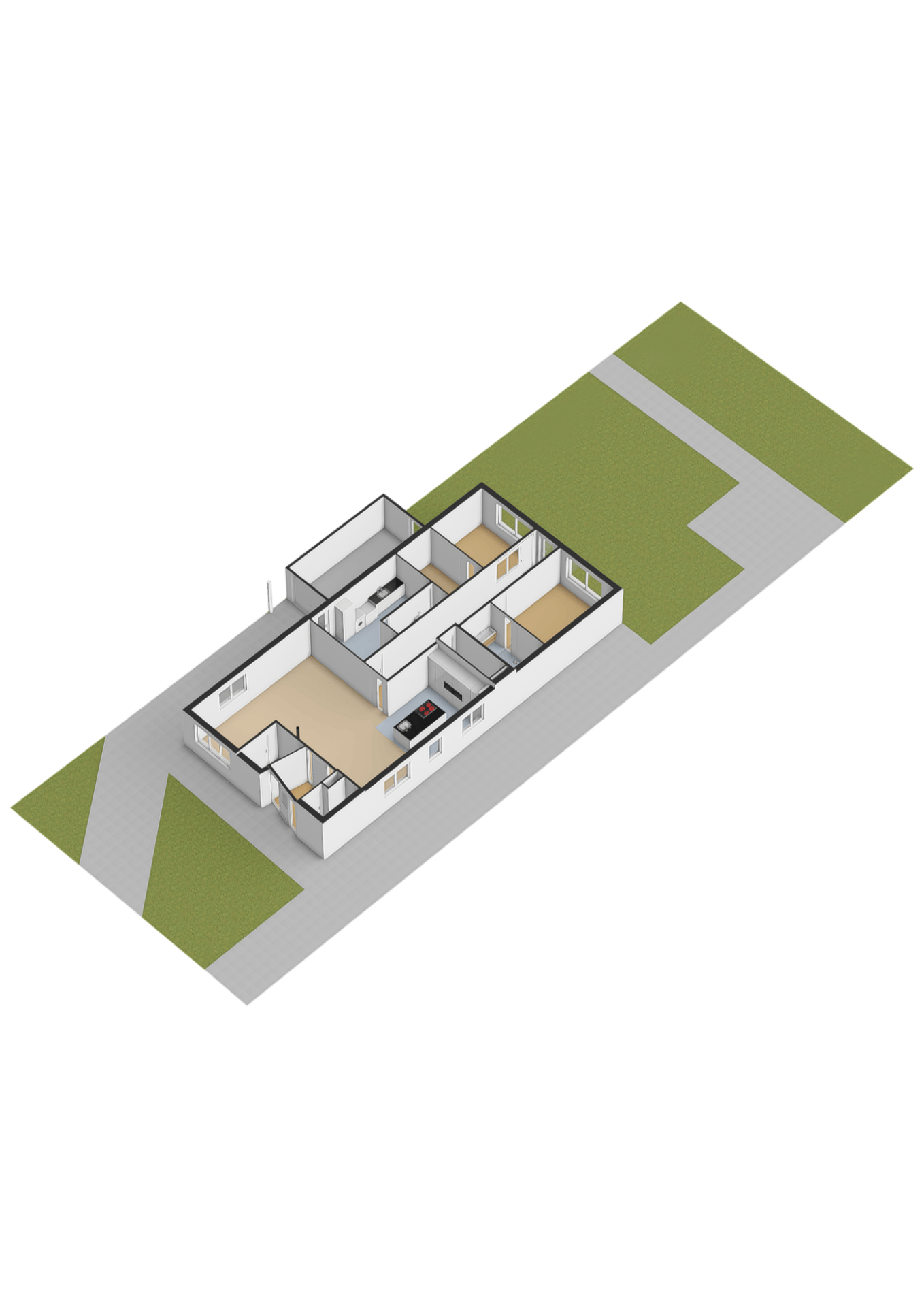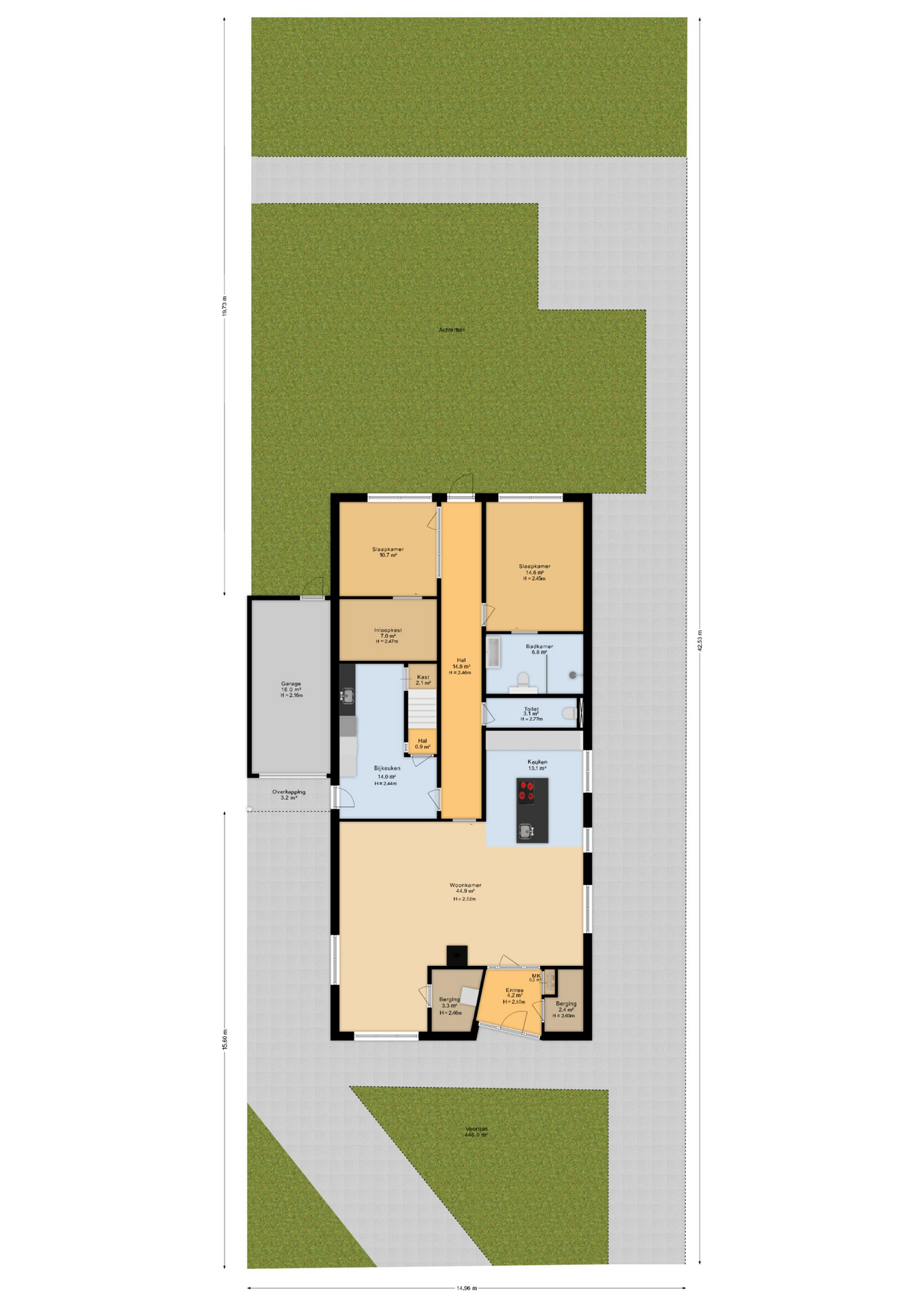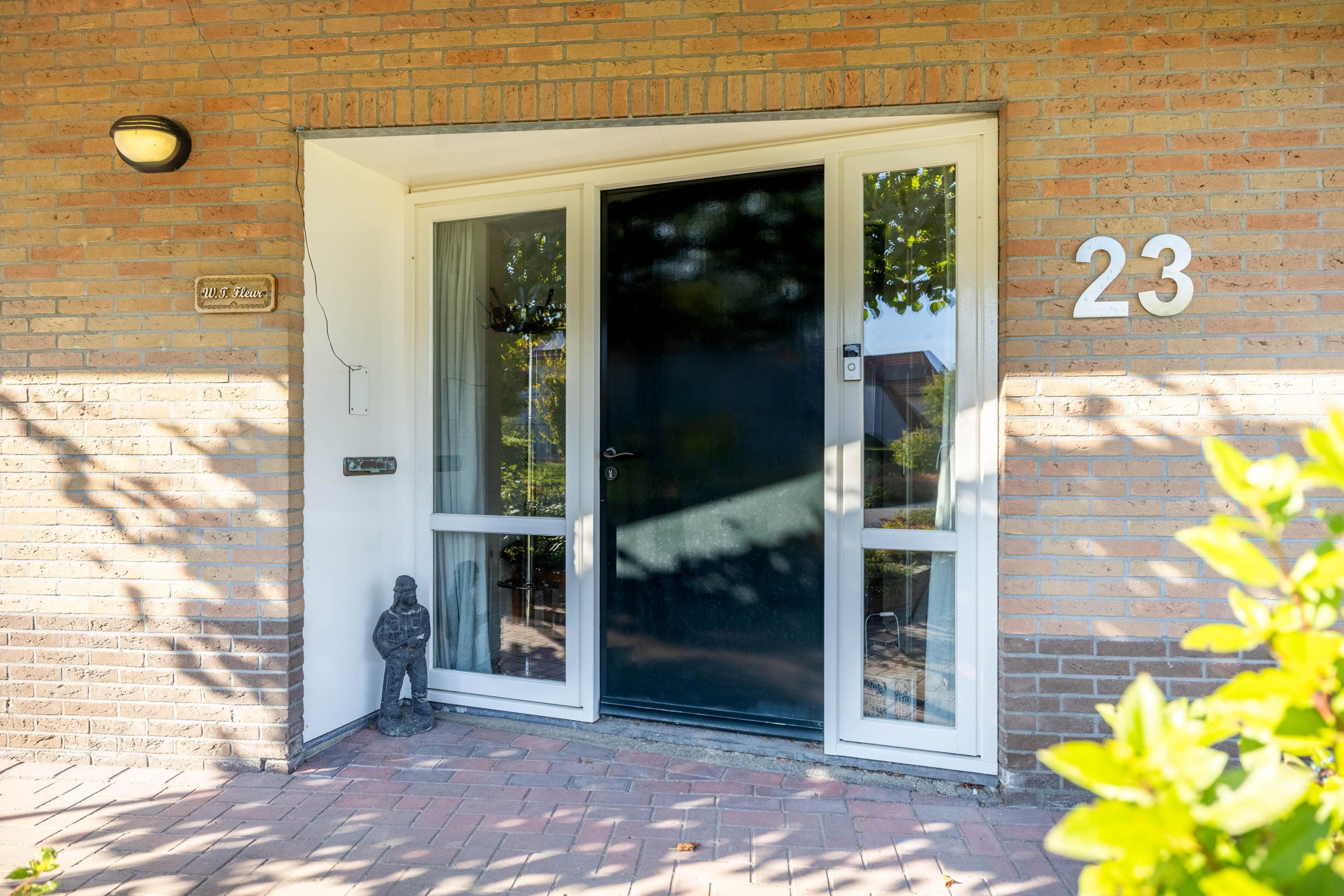 Je bereikt de woning via één van de twee opritten — praktisch en ruim opgezet, met voldoende parkeergelegenheid. De verzorgde voortuin en de vrijstaande garage maken het geheel compleet. Binnen wacht een verrassend lichte en doordachte woning waar je meteen de ruimte voelt.