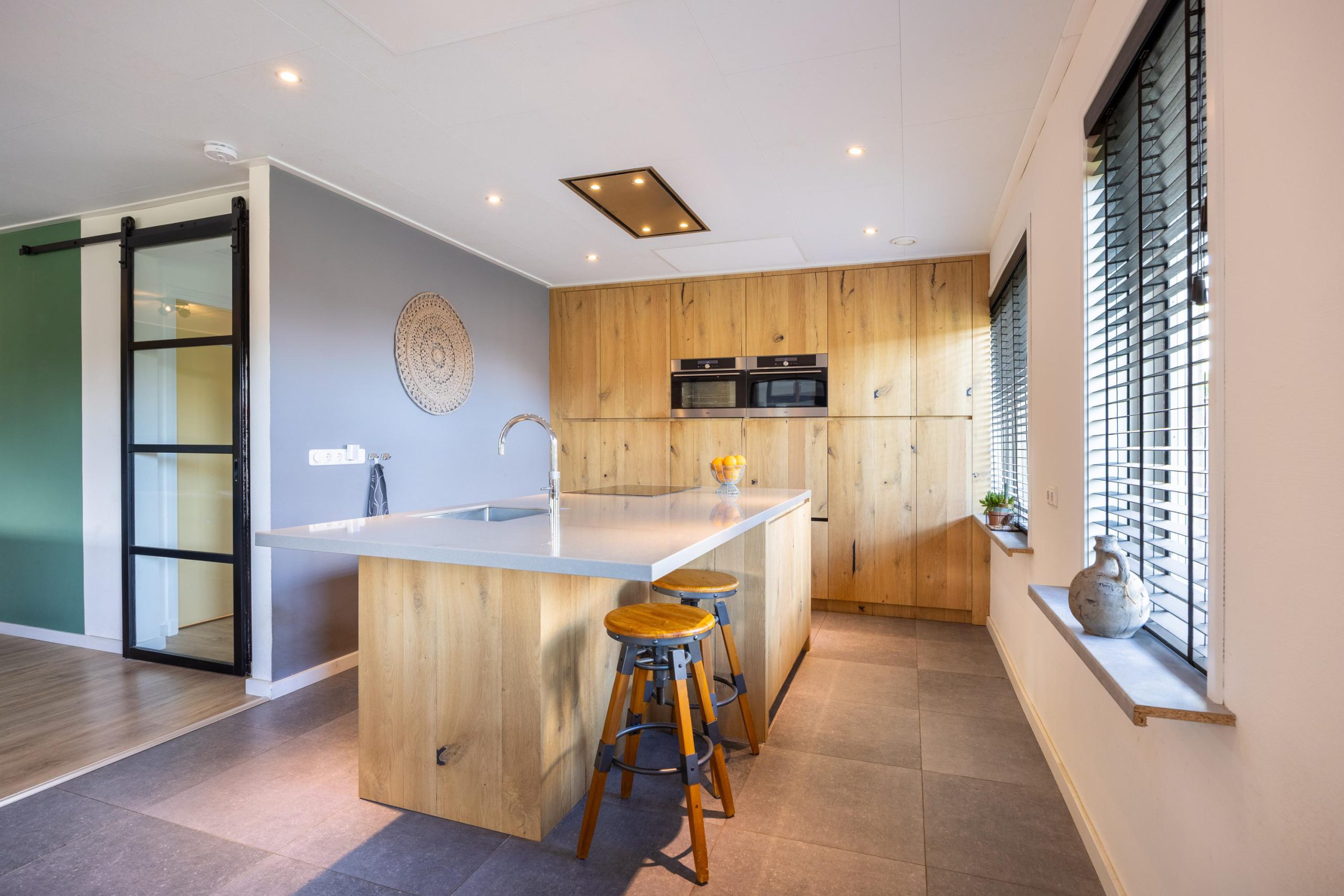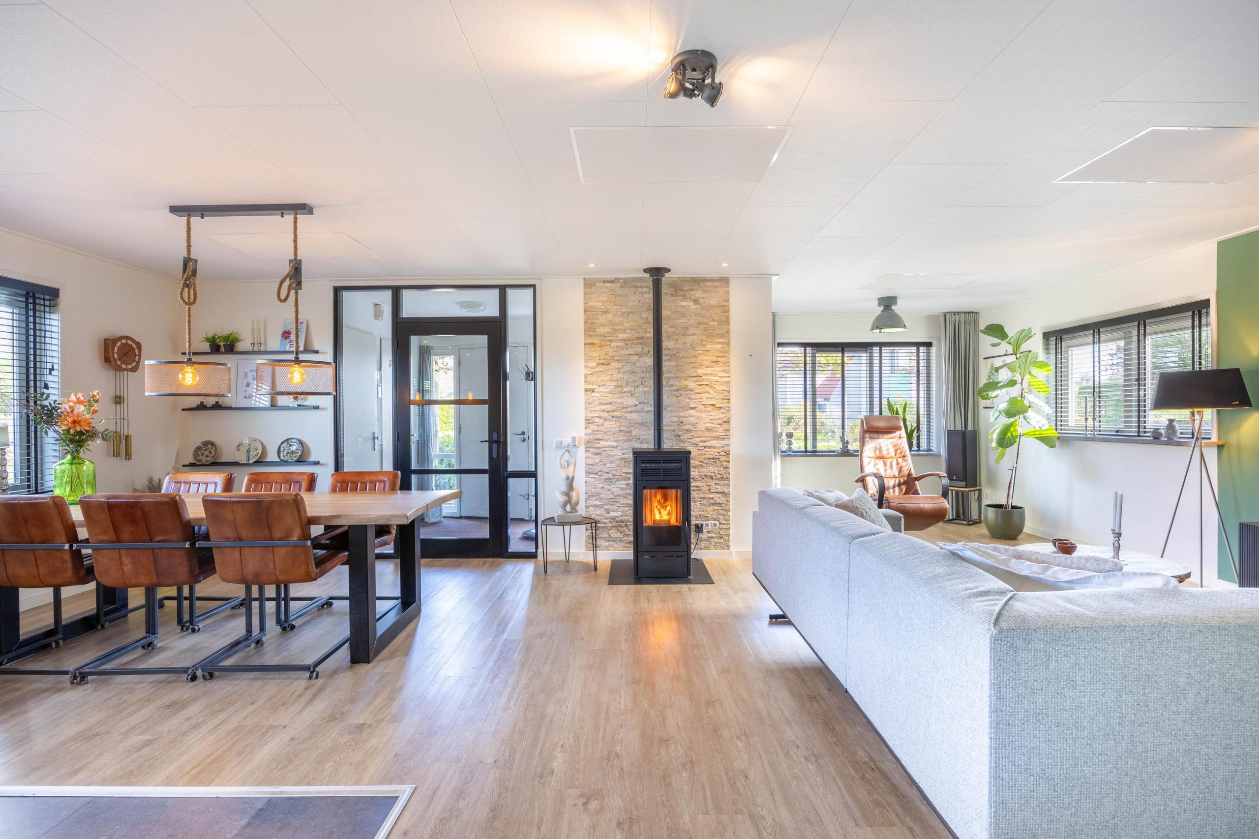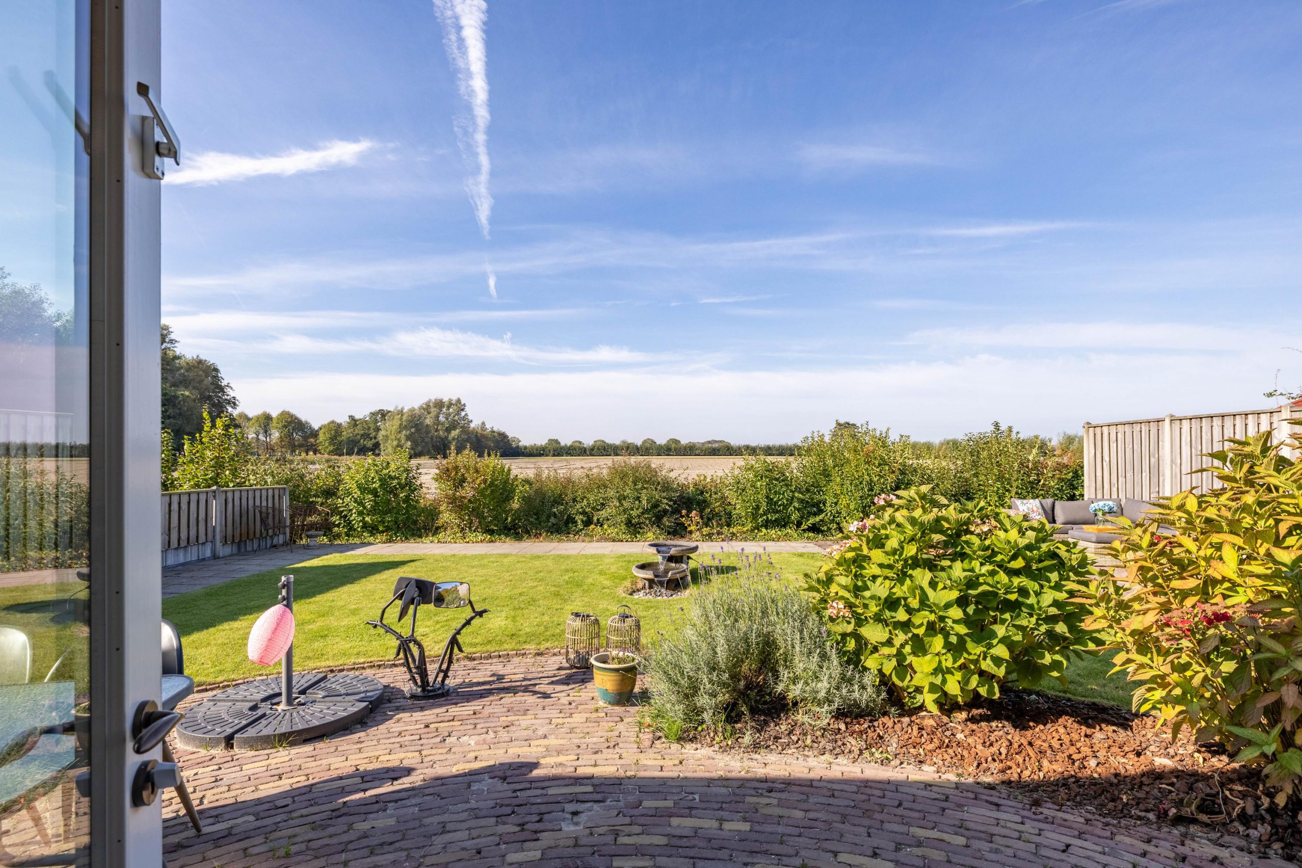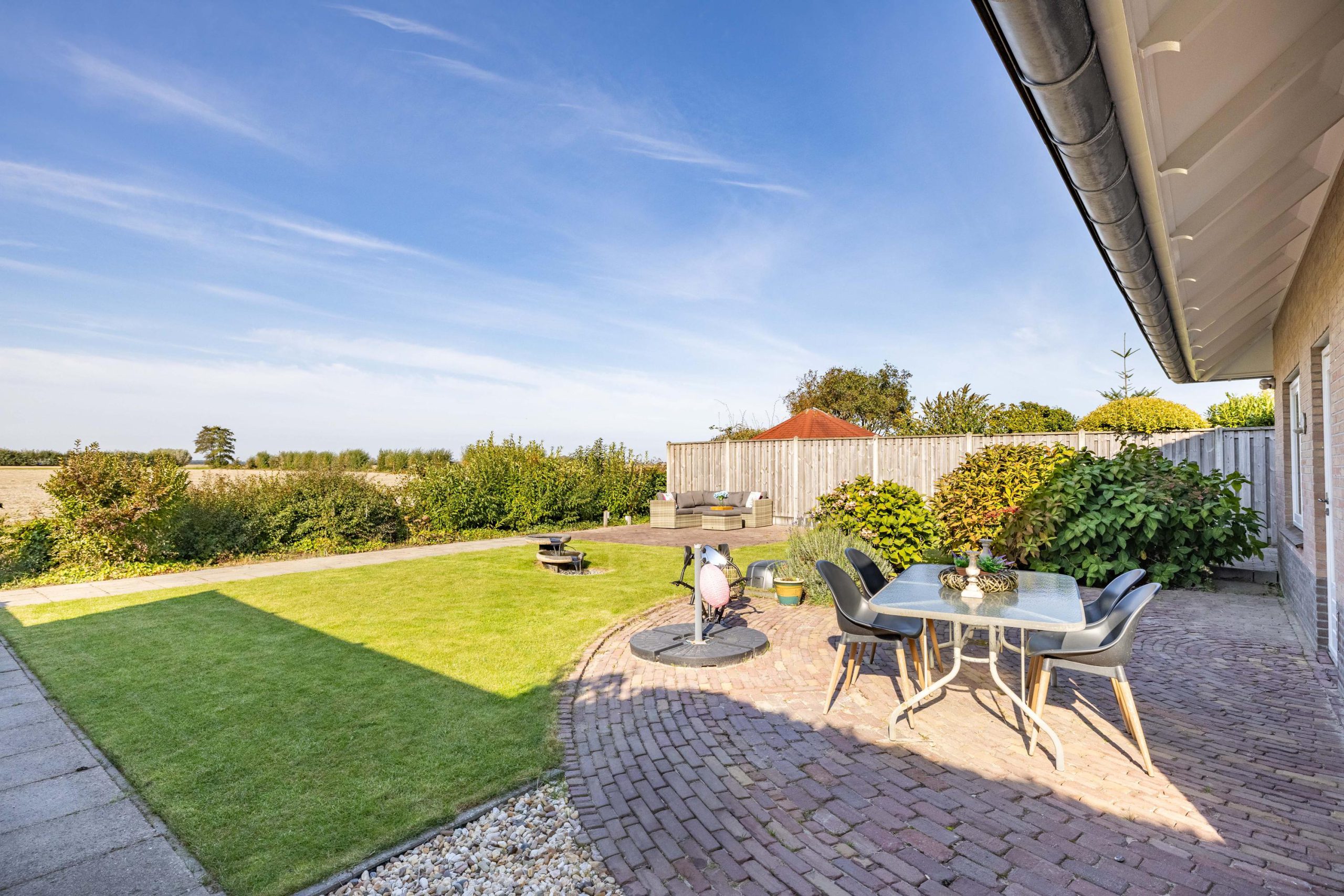 De keuken biedt volop mogelijkheden en grenst aan de royale woonkamer, waar meerdere zithoeken te creëren zijn. De sfeer is open en vriendelijk, met directe verbinding naar buiten. De tuin ligt rondom de woning, met aan de westzijde het vrije uitzicht en de avondzon — ideaal voor een borrel of barbecue op lange zomerdagen.