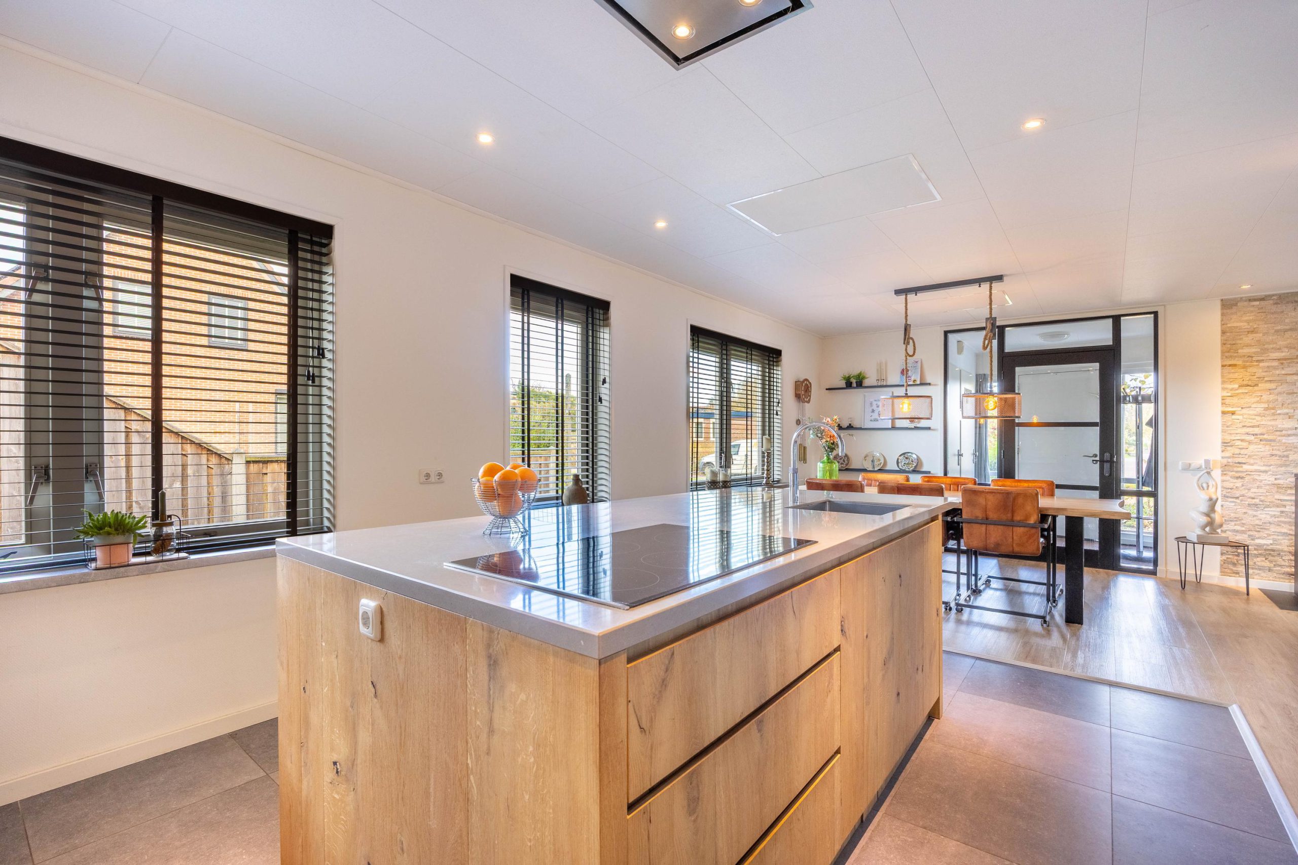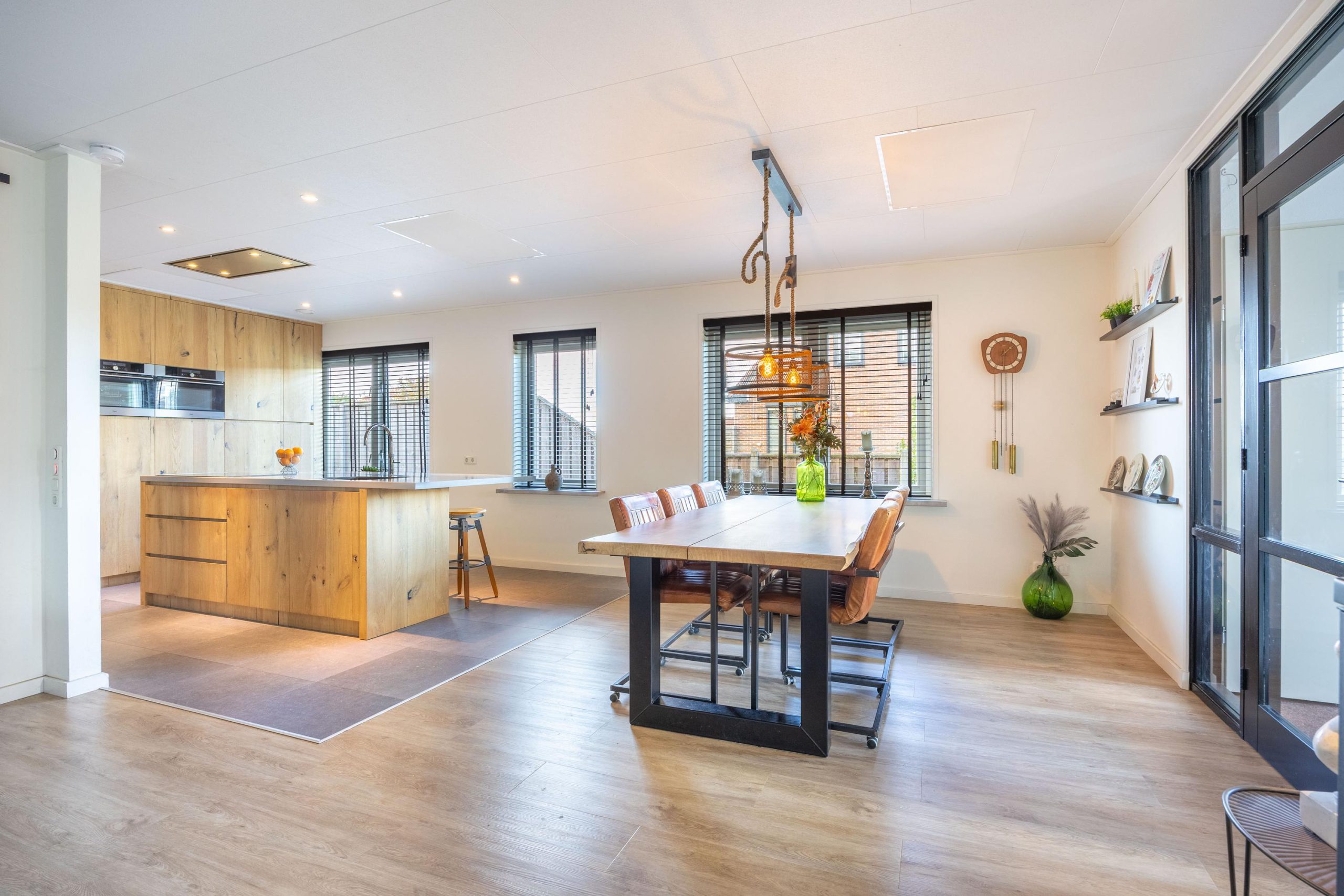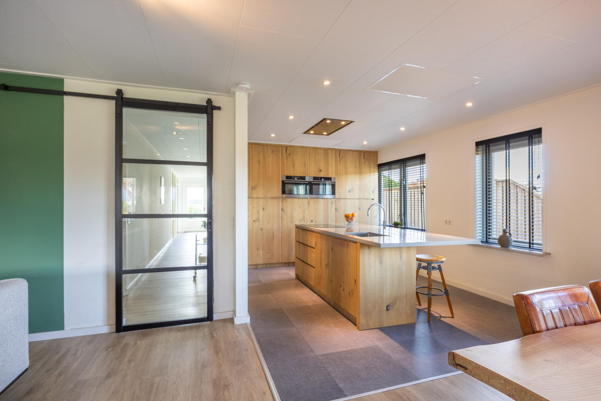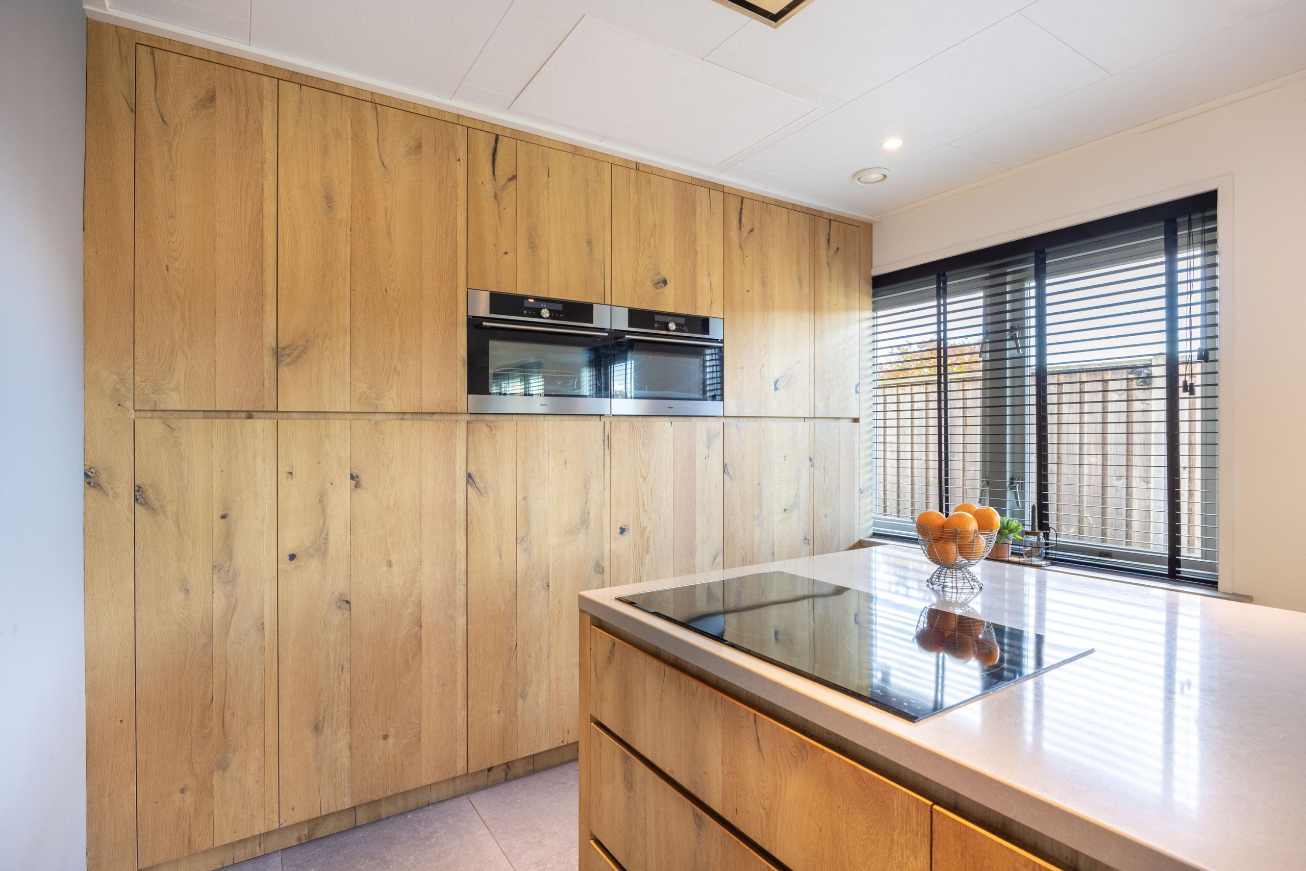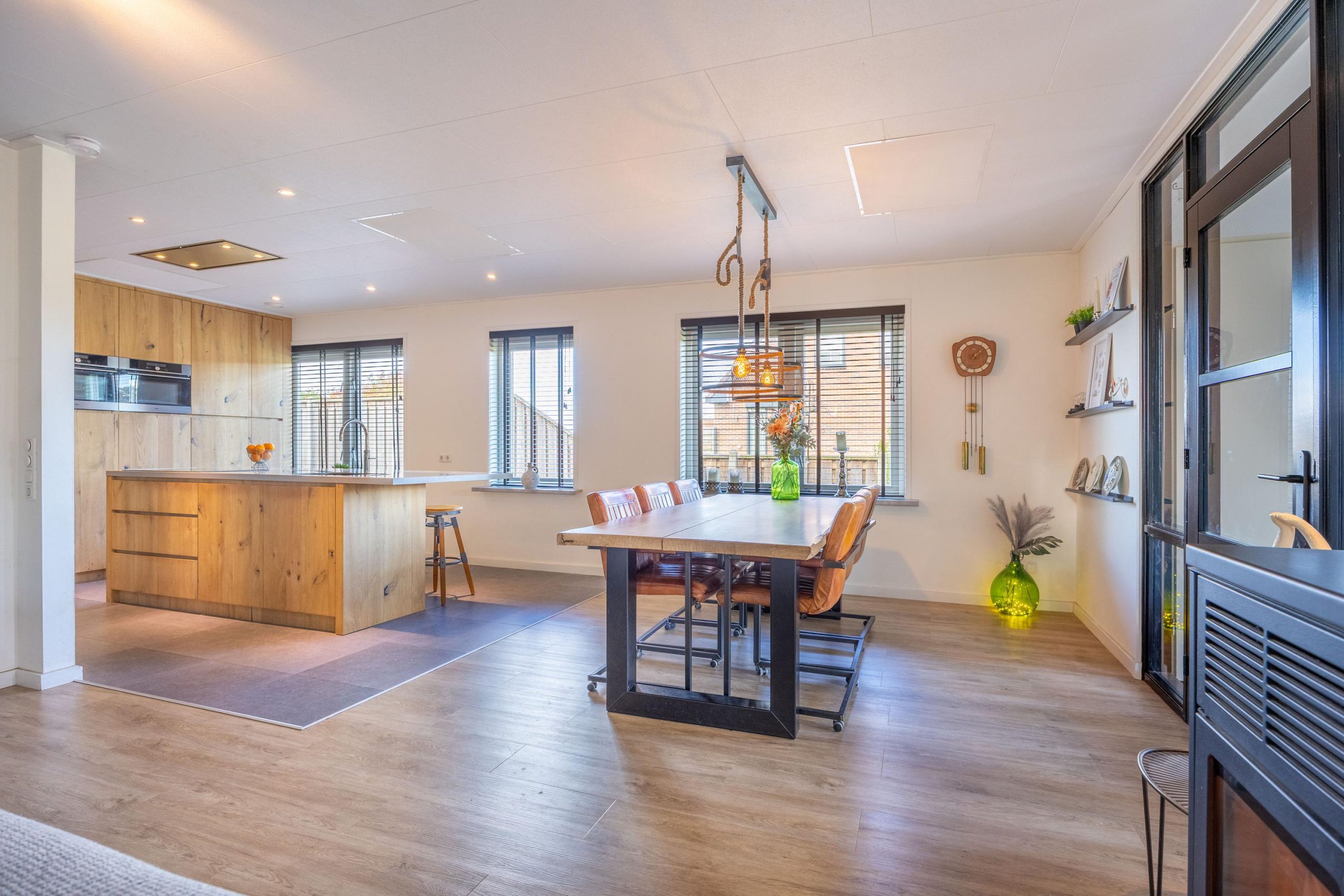 De keuken biedt volop mogelijkheden en grenst aan de royale woonkamer, waar meerdere zithoeken te creëren zijn. De sfeer is open en vriendelijk, met directe verbinding naar buiten. De tuin ligt rondom de woning, met aan de westzijde het vrije uitzicht en de avondzon — ideaal voor een borrel of barbecue op lange zomerdagen.