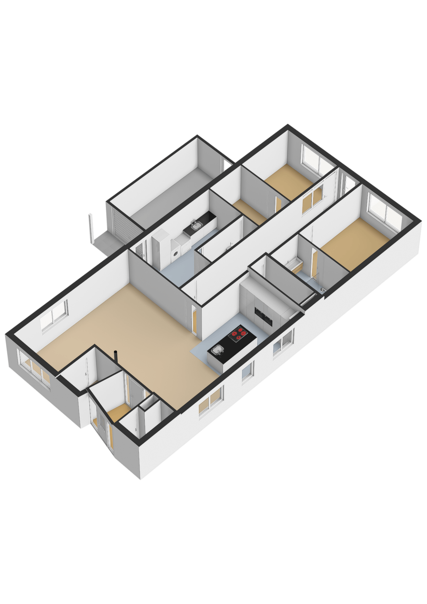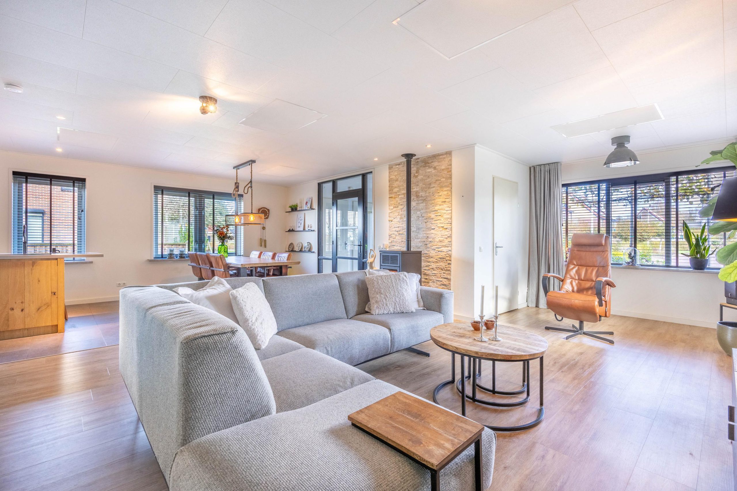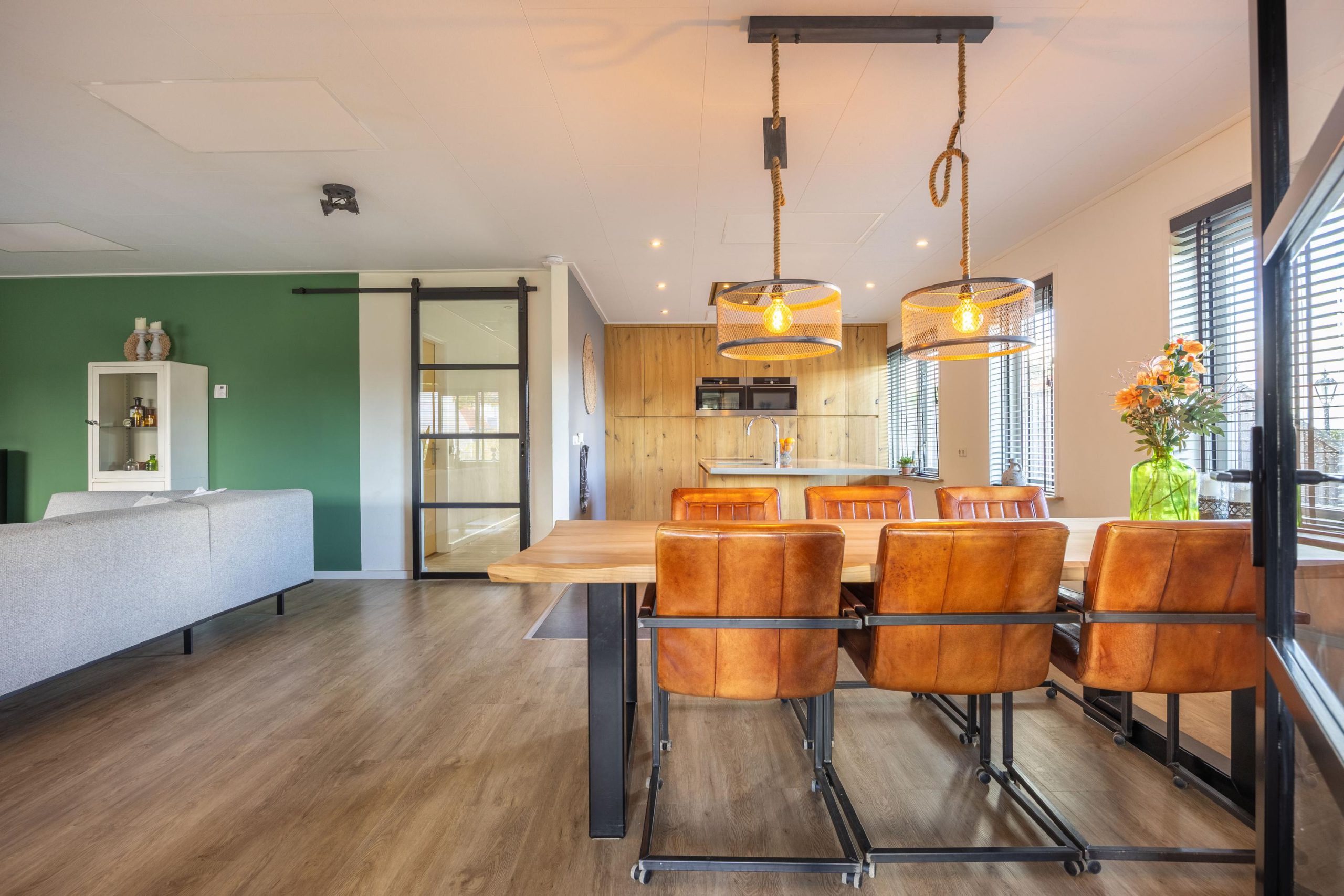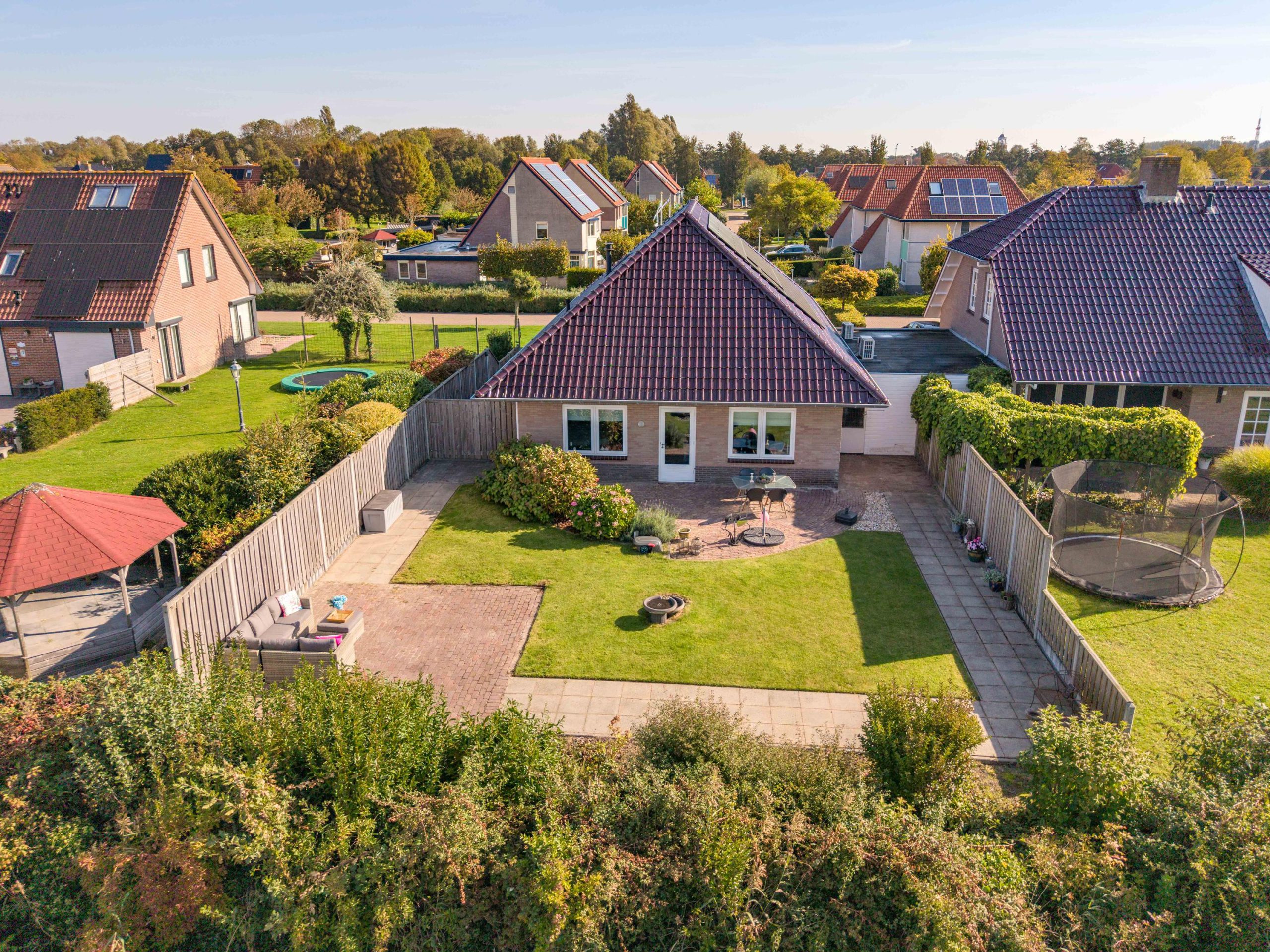 De keuken biedt volop mogelijkheden en grenst aan de royale woonkamer, waar meerdere zithoeken te creëren zijn. De sfeer is open en vriendelijk, met directe verbinding naar buiten. De tuin ligt rondom de woning, met aan de westzijde het vrije uitzicht en de avondzon — ideaal voor een borrel of barbecue op lange zomerdagen.