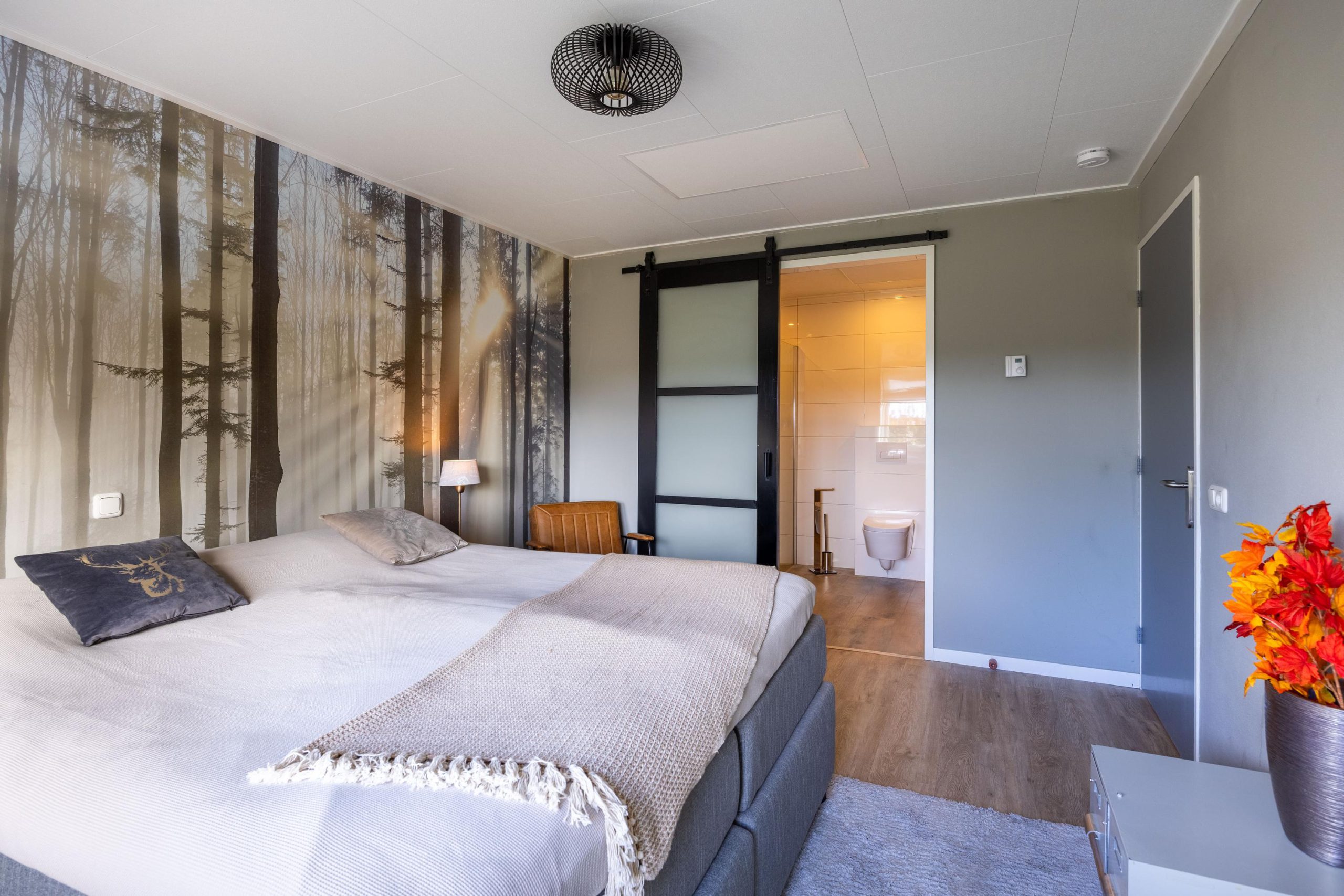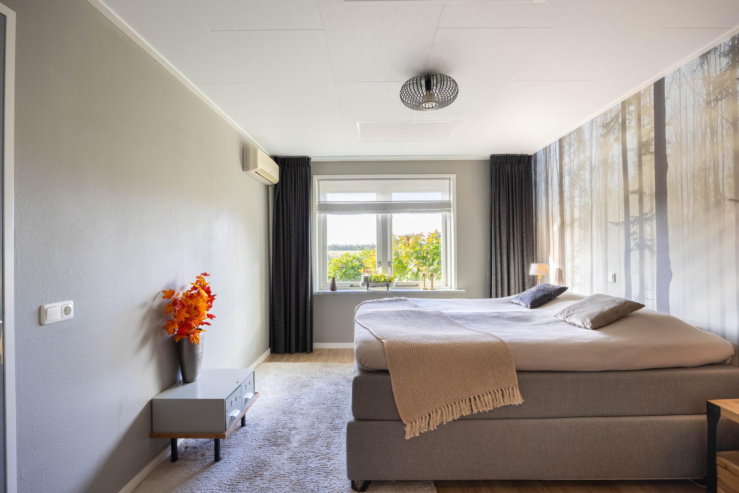 De begane grond is volledig ingericht op comfortabel wonen. Vanuit de hal bereik je de lichte woonkamer, waar grote ramen zorgen voor een prachtig uitzicht op de tuin en het groene landschap. De zon draait hier prachtig rond het huis, en tegen de avond valt het warme licht binnen aan de westkant — een plek om echt even stil te staan.