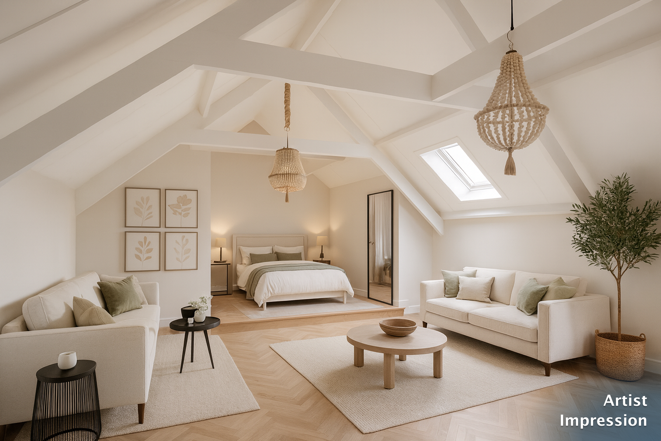De verdieping is nu grotendeels open, maar biedt ruimte voor maar liefst vier slaapkamers en een badkamer. De basis is er — het is aan jou om deze verdieping verder in te delen naar wens. Denk aan een thuiskantoor, speelzolder of atelier: de mogelijkheden zijn eindeloos!