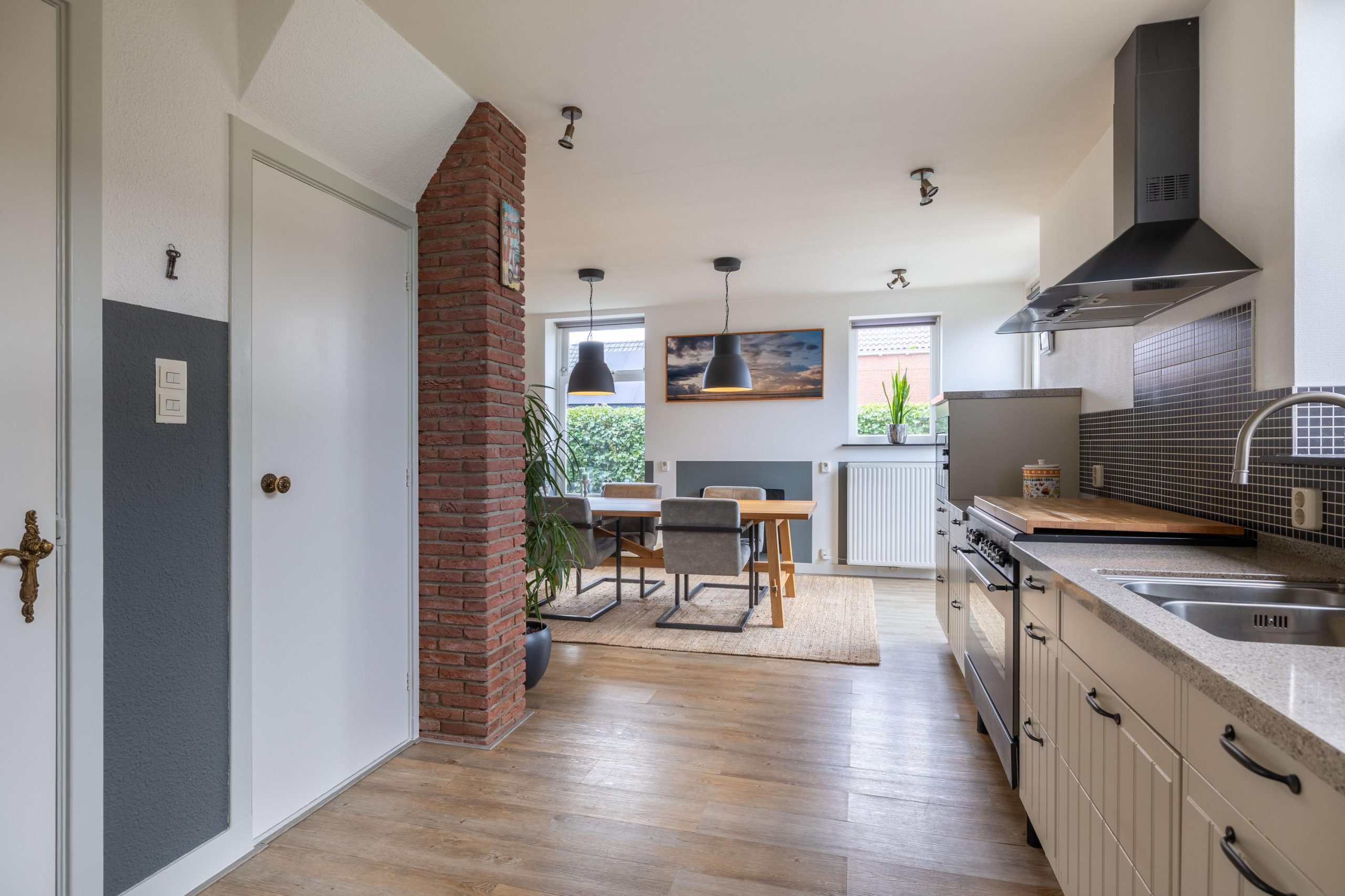 Praktisch en prettig in gebruik, met een directe verbinding naar de leefruimtes. Een echte woonkeuken, waar je kunt kokkerellen terwijl iemand anders alvast aanschuift met een glas wijn. Hier wordt gelachen, bijgepraat en getafeld... precies de plek waar het dagelijks leven samenkomt. De ruimte nodigt uit om te genieten van drukke ontbijtmomenten, lange avonden met vrienden of gewoon die doordeweekse gezelligheid die een huis tot een thuis maakt.