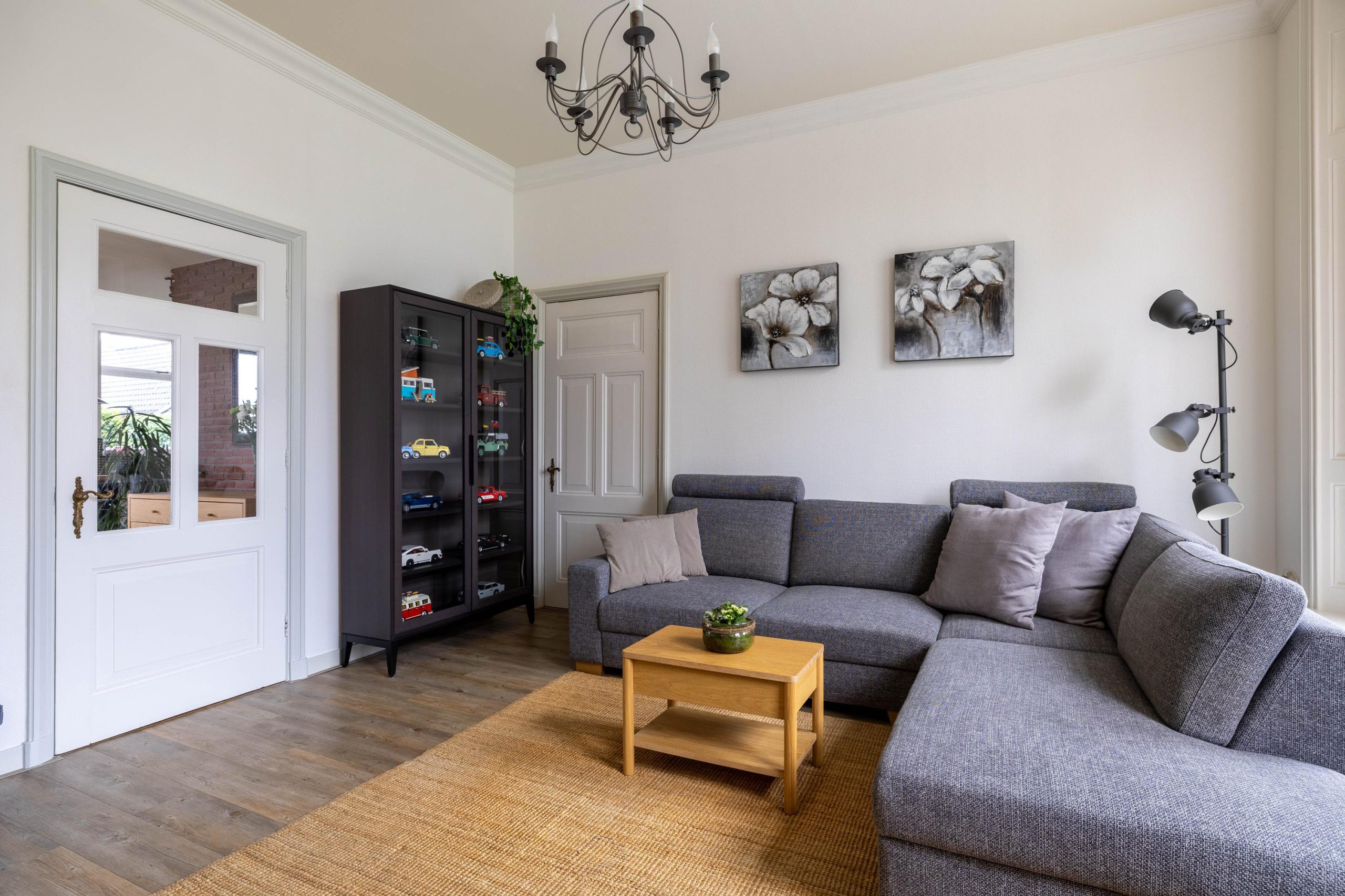 Het huis staat trots en ruim op het perceel, met een klassieke gevel die meteen opvalt. Je parkeert gemakkelijk op eigen terrein.