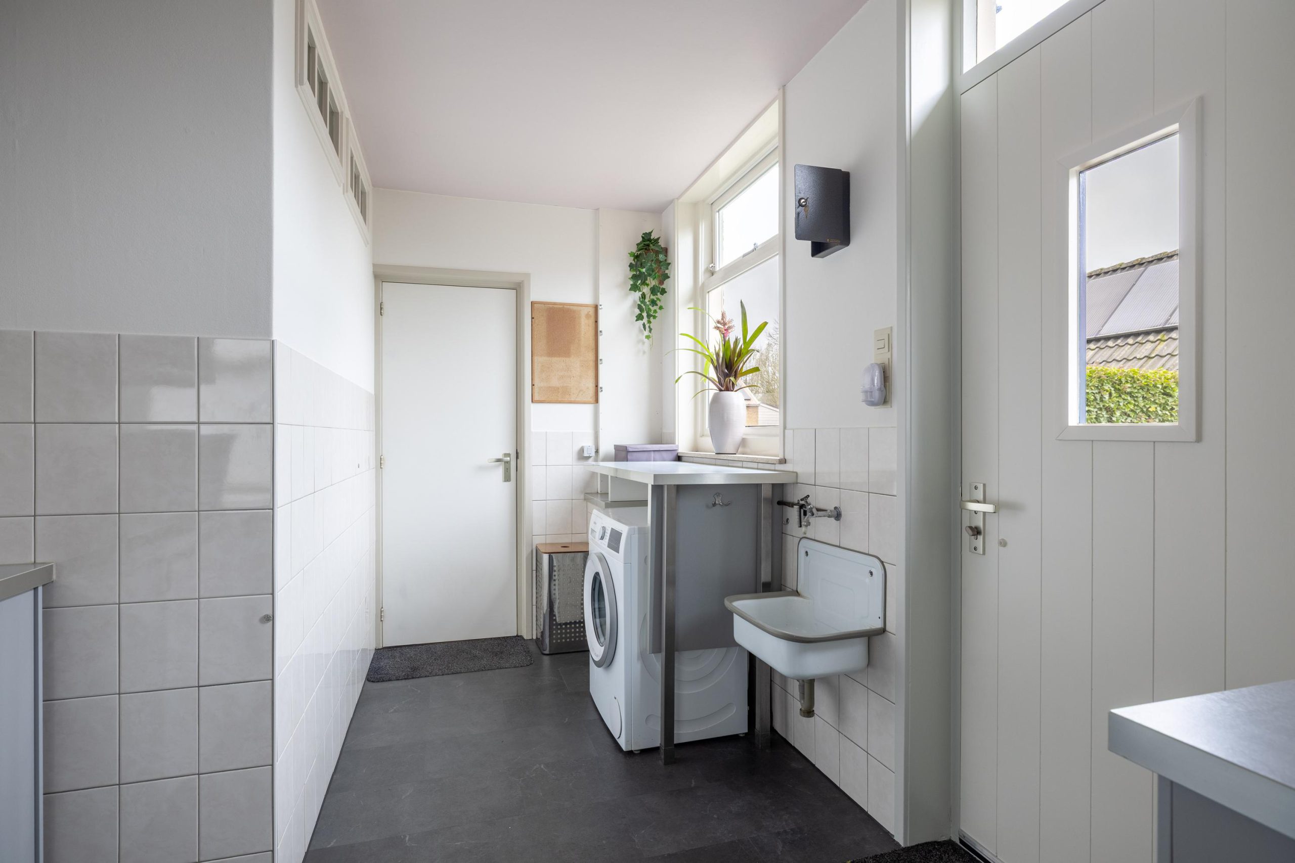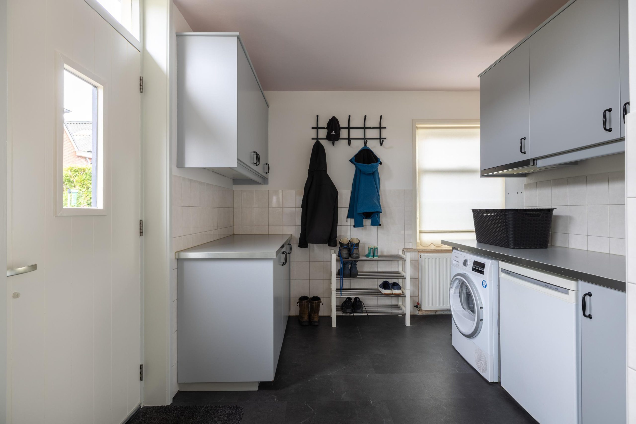 Een groot voordeel: een ruime bijkeuken voor wasmachine, droger en extra voorraad. Altijd fijn in een groot gezin of druk huishouden.