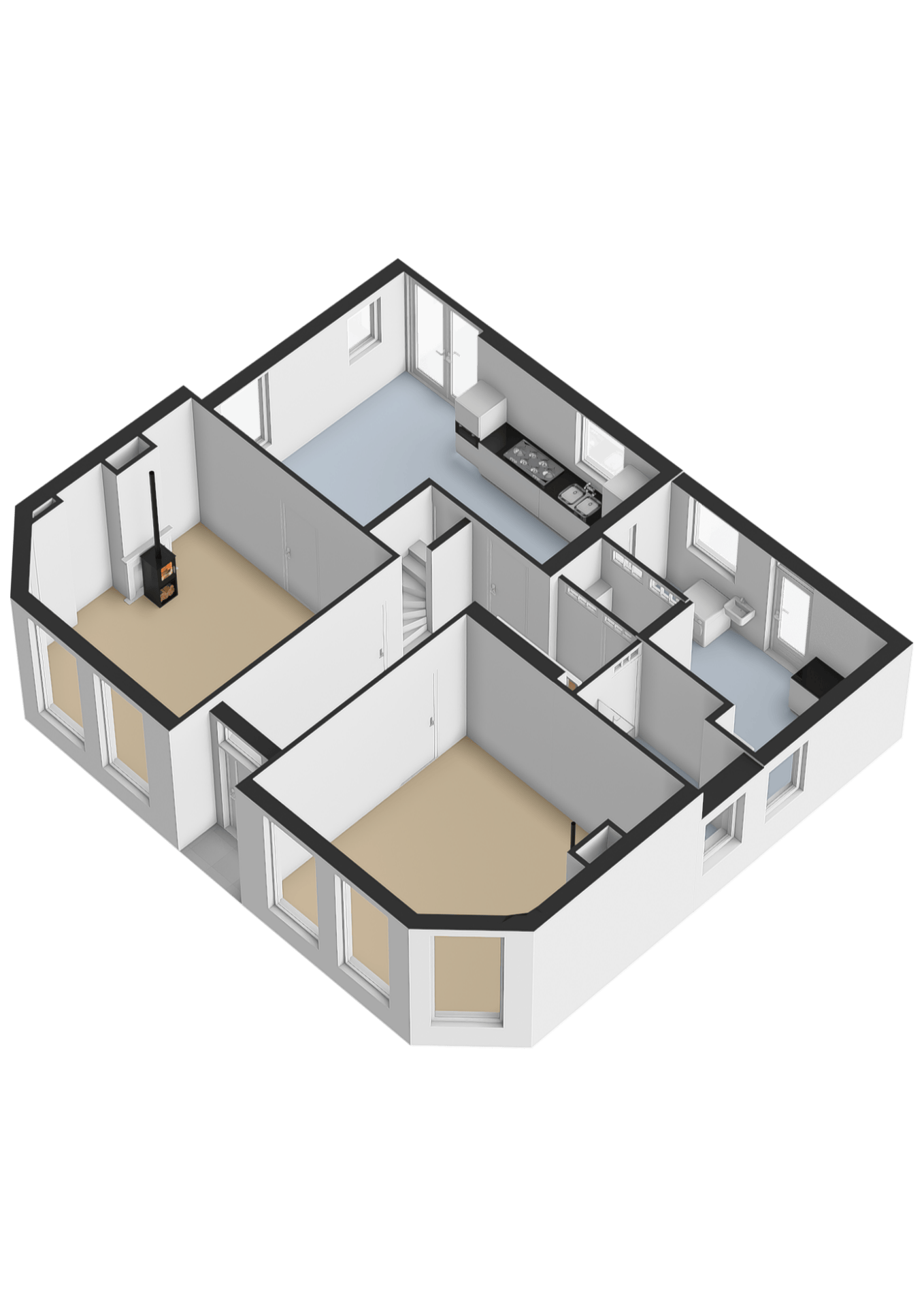 De begane grond biedt de mogelijkheid tot een volledig zelfstandige slaapkamer én een badkamer. Ideaal voor levensloopbestendig wonen, gasten of werken aan huis.