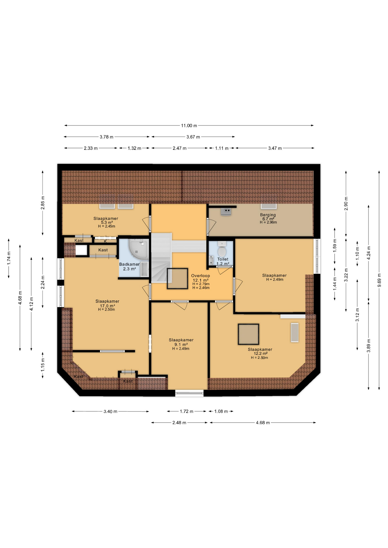 De volledige slaapverdieping bestaat uit 5 slaapkamers, waarmee je totaal op 6 slaapkamers uitkomt. Één van de slaapkamers beschikt over een eigen doucheruimte!
