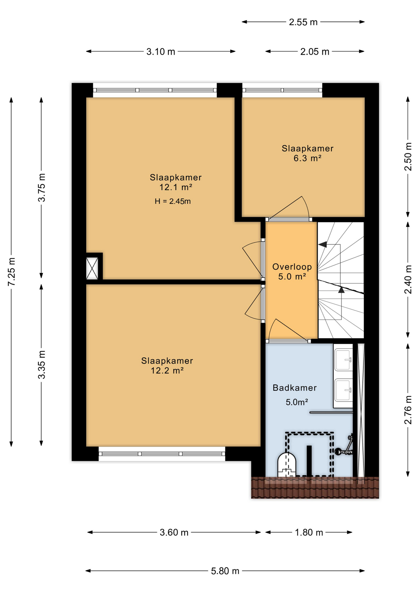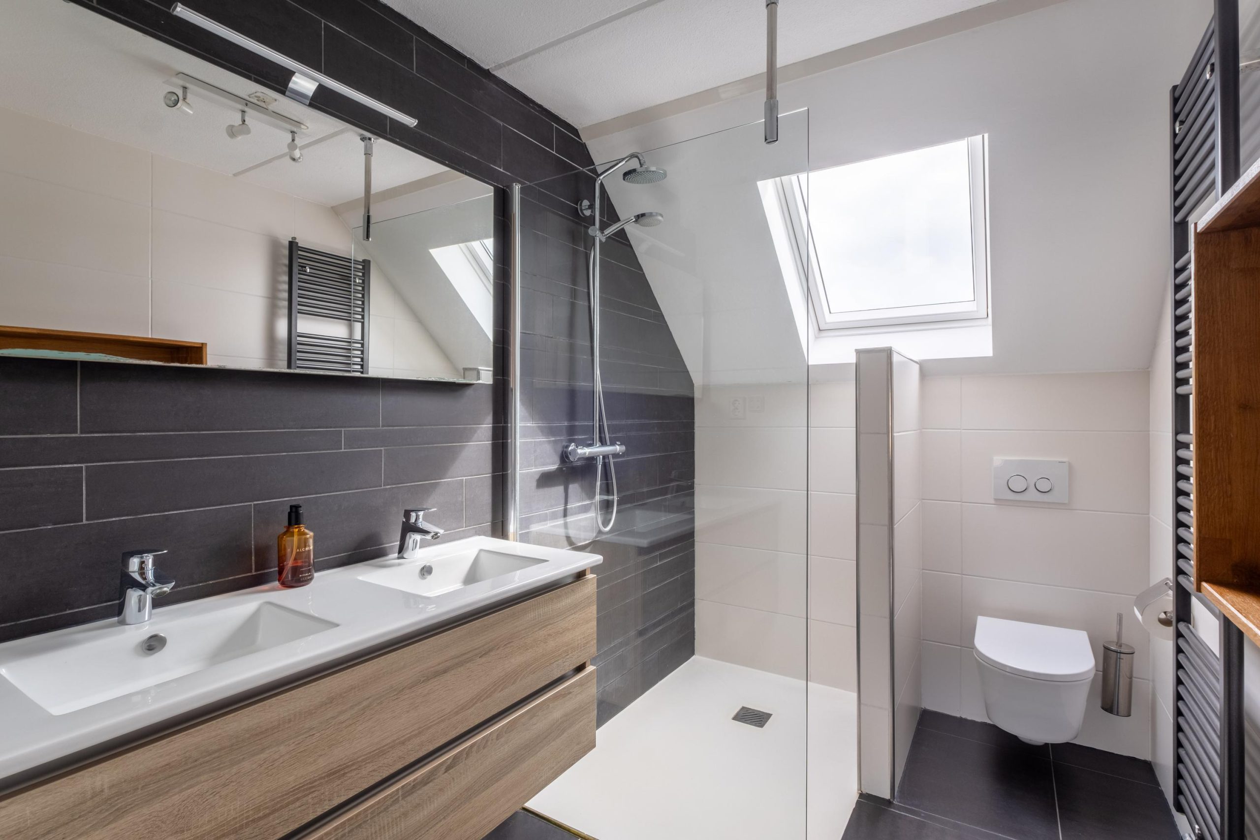 Op de eerste verdieping vind je drie slaapkamers, allemaal voorzien van kunststof kozijnen! De badkamer is modern en comfortabel: een inloopdouche, hangtoilet, dubbel wastafelmeubel en radiator maken het compleet.