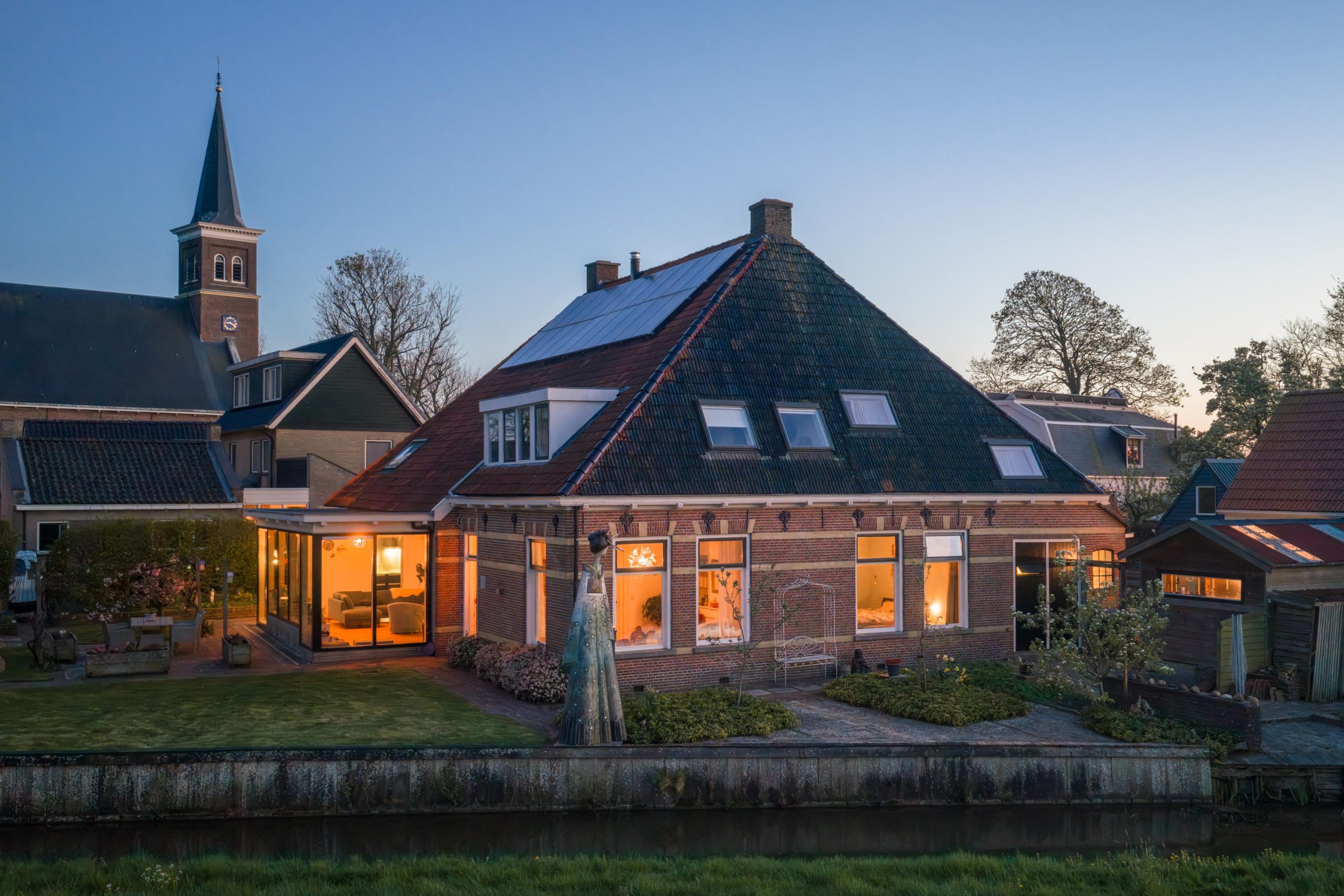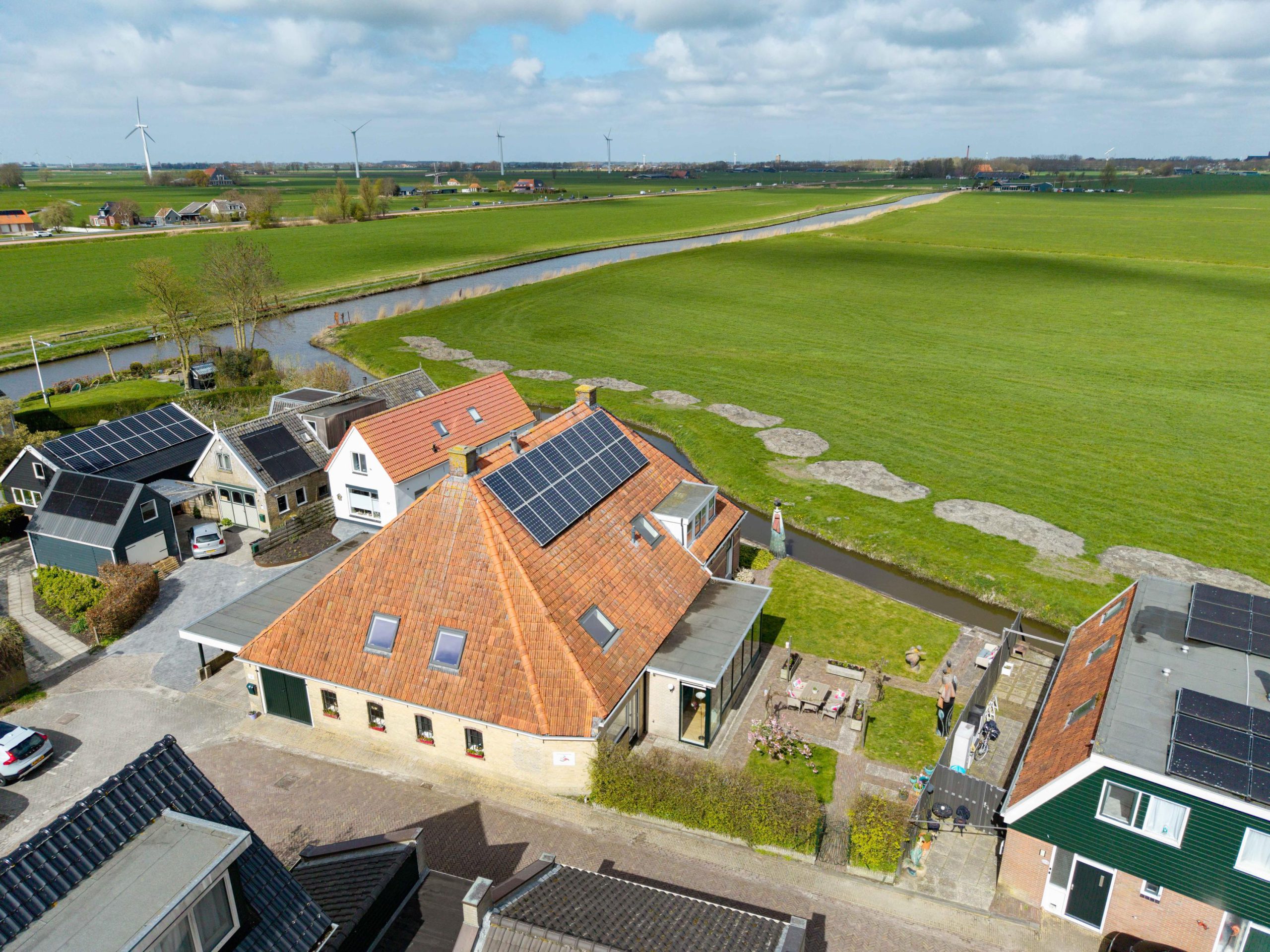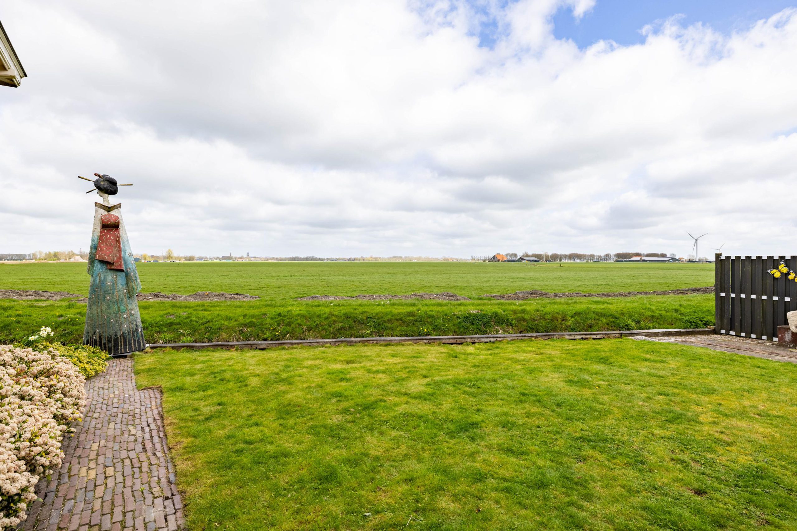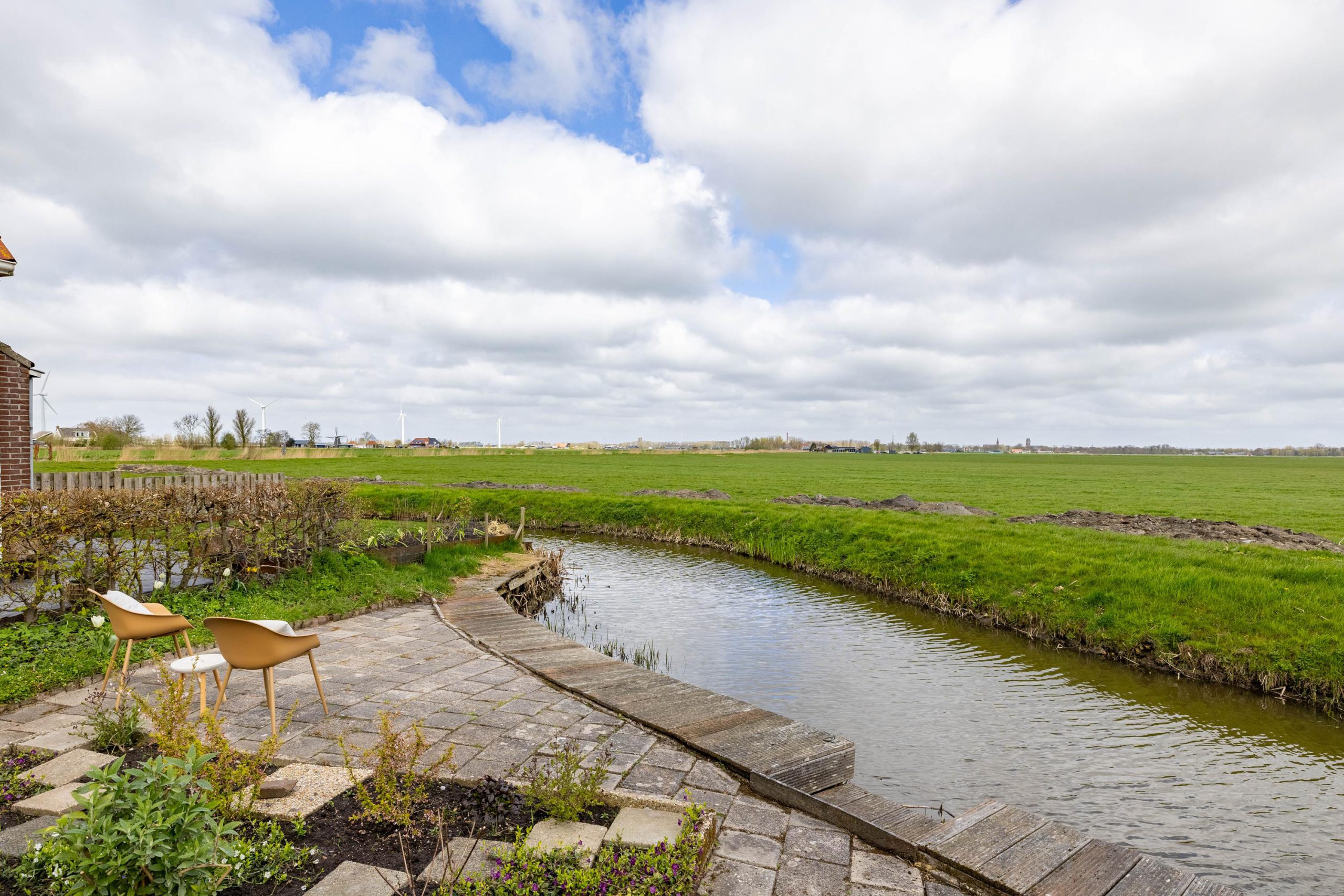 De tuin en het omliggende erf maken het geheel meer dan compleet en tillen het woongevoel hier echt naar een hoger niveau. Achter de woning ontvouwt zich een prachtig vrij uitzicht over het open landschap, terwijl het water van de Oude Haven direct aan je achtertuin ligt. Dit geeft niet alleen een gevoel van rust en ruimte, maar ook een unieke verbinding met de omgeving.