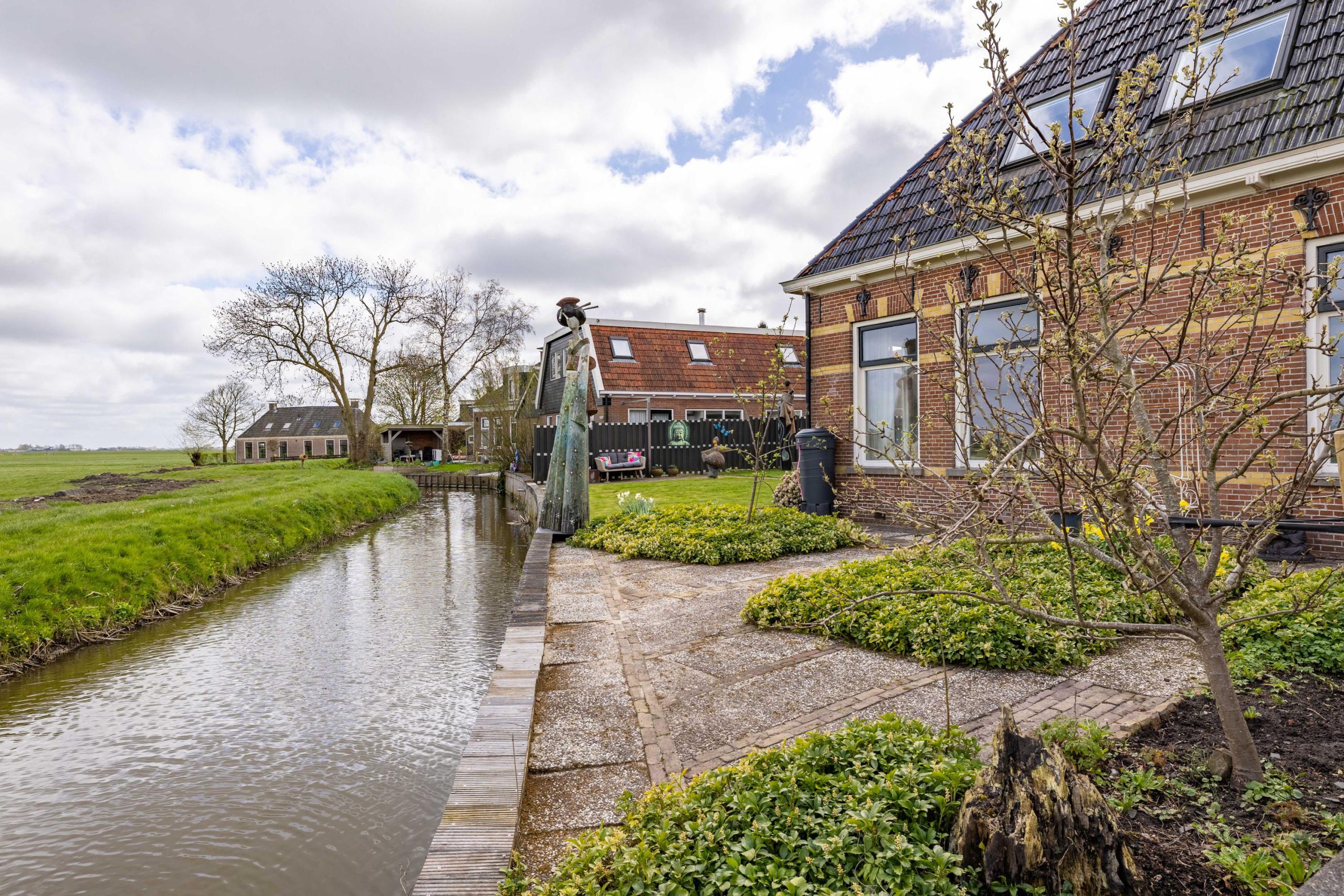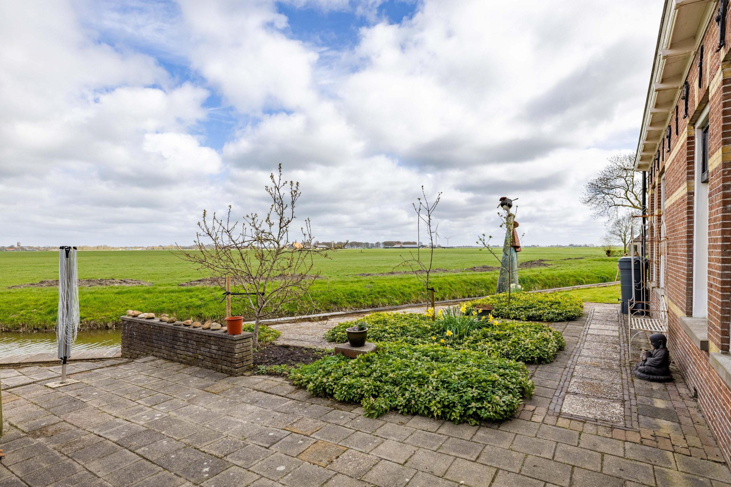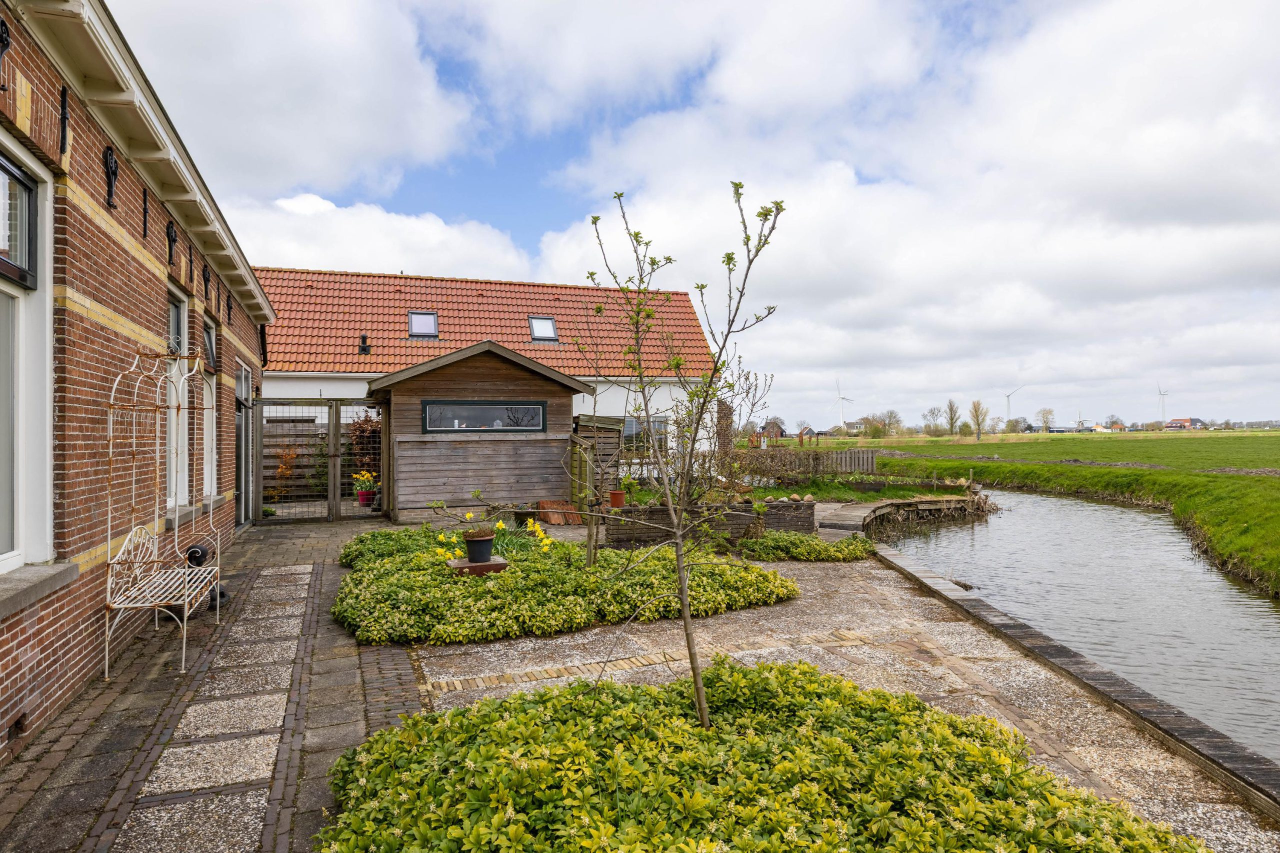 Hier begin je de dag met het kabbelende water en het weidse uitzicht, en sluit je af met lange avonden buiten, omringd door stilte en natuur. Of je nu een bootliefhebber bent en zo het Friese merengebied op wilt varen, of juist op zoek bent naar een plek om volledig tot rust te komen, deze tuin biedt het allemaal. De combinatie van ruimte, privacy en direct vaarwater maakt dit een buitenkans voor wie landelijk wil wonen met nét dat beetje extra.