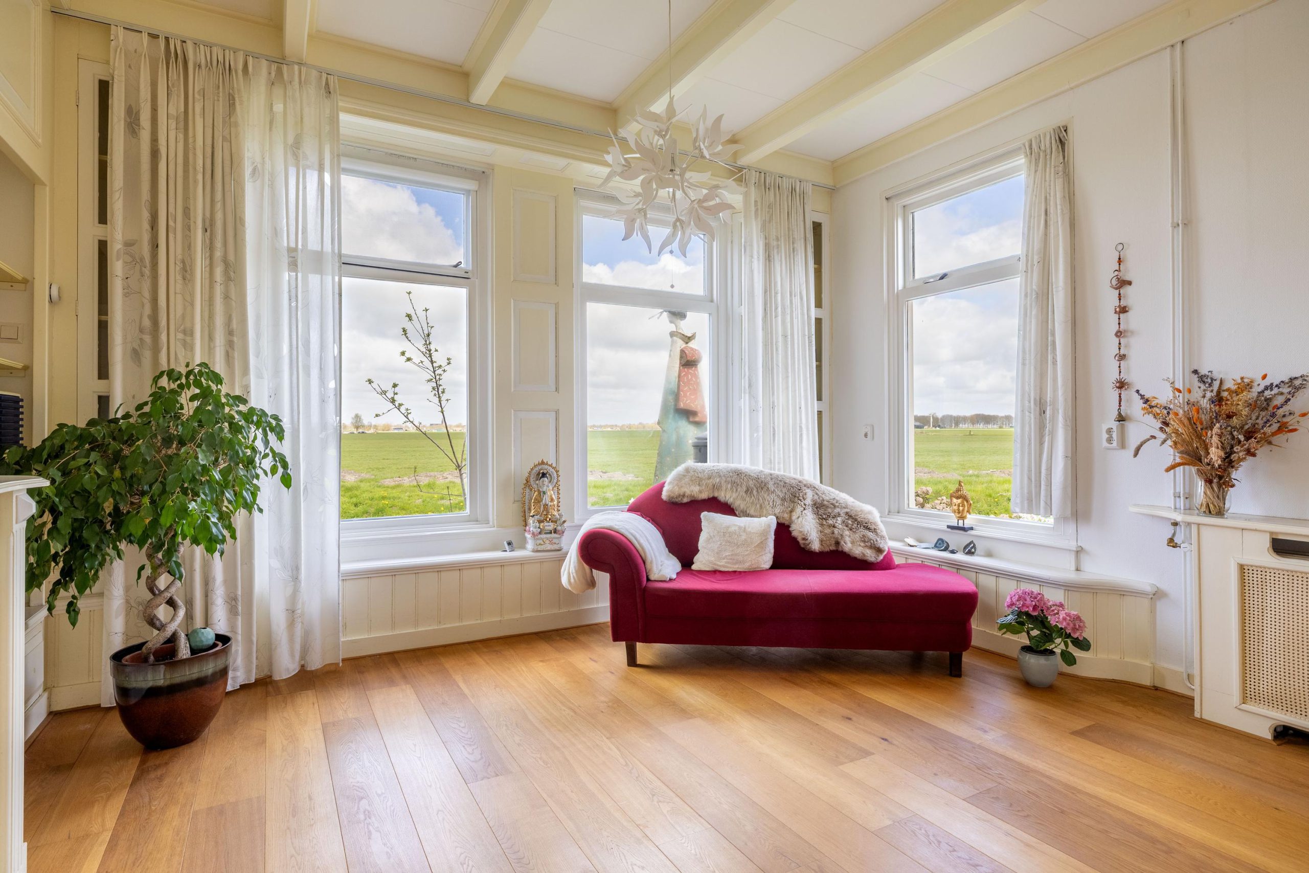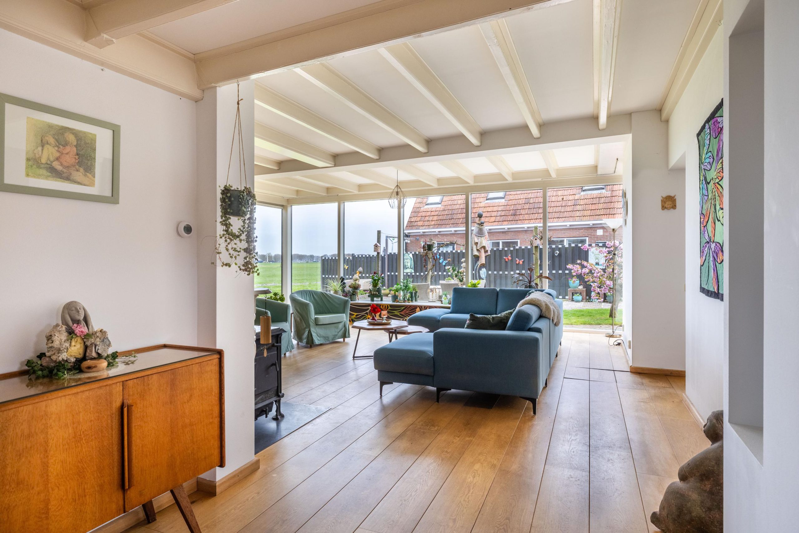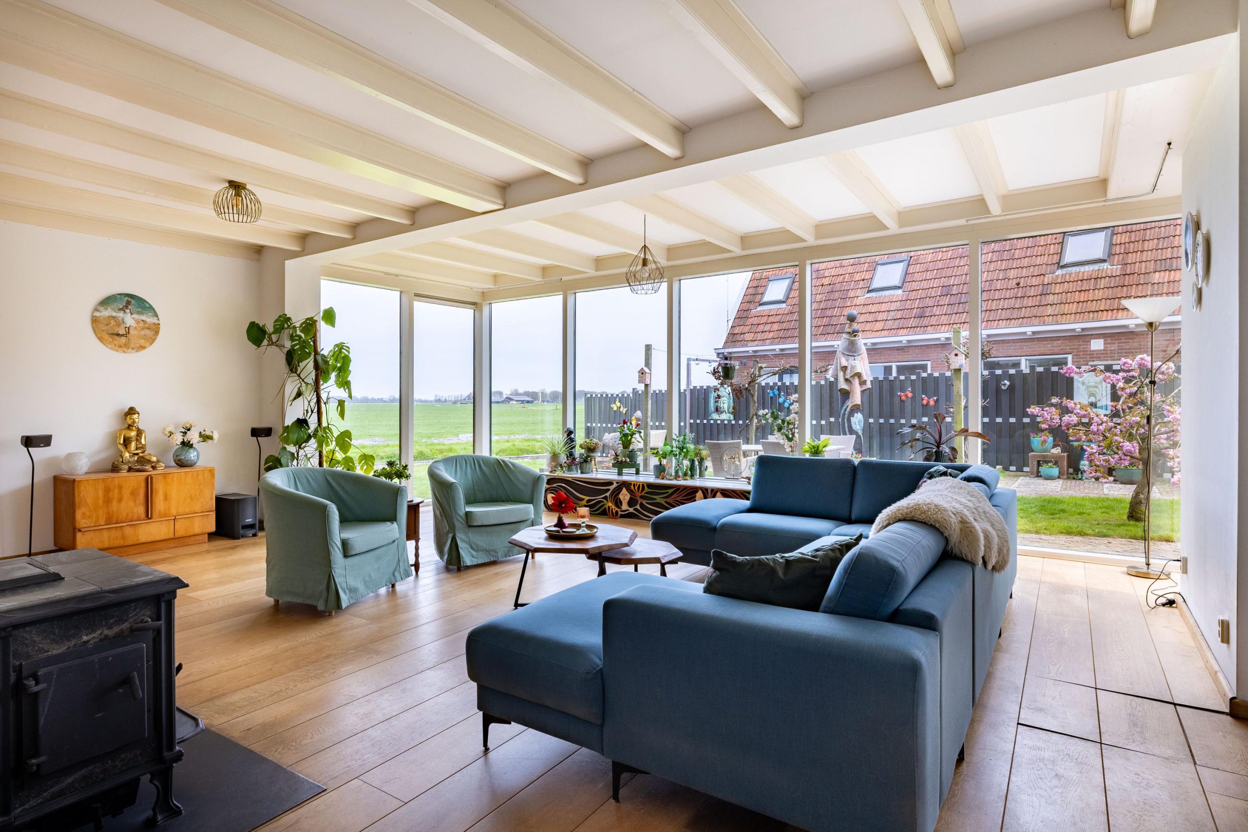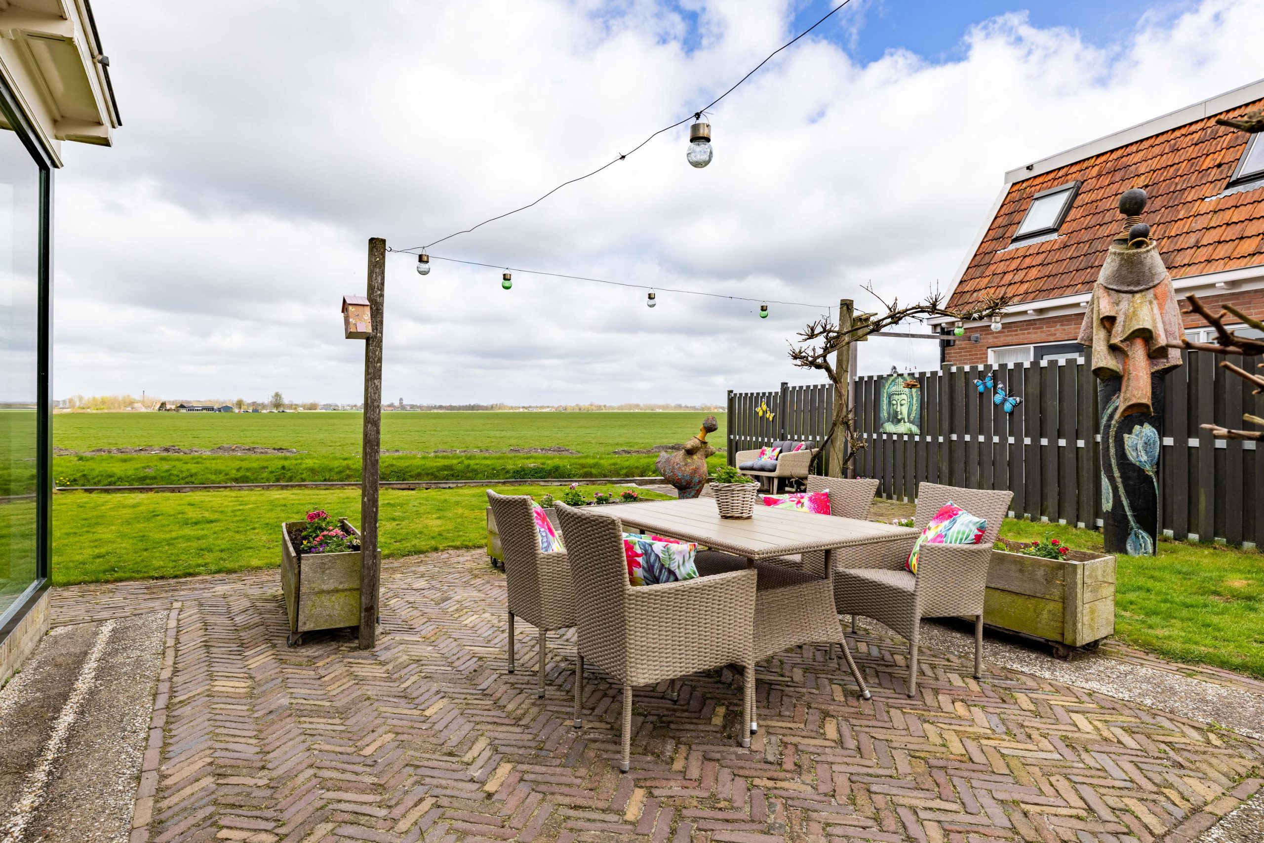 Hier begin je de dag met het kabbelende water en het weidse uitzicht, en sluit je af met lange avonden buiten, omringd door stilte en natuur. Of je nu een bootliefhebber bent en zo het Friese merengebied op wilt varen, of juist op zoek bent naar een plek om volledig tot rust te komen, deze tuin biedt het allemaal. De combinatie van ruimte, privacy en direct vaarwater maakt dit een buitenkans voor wie landelijk wil wonen met nét dat beetje extra.
