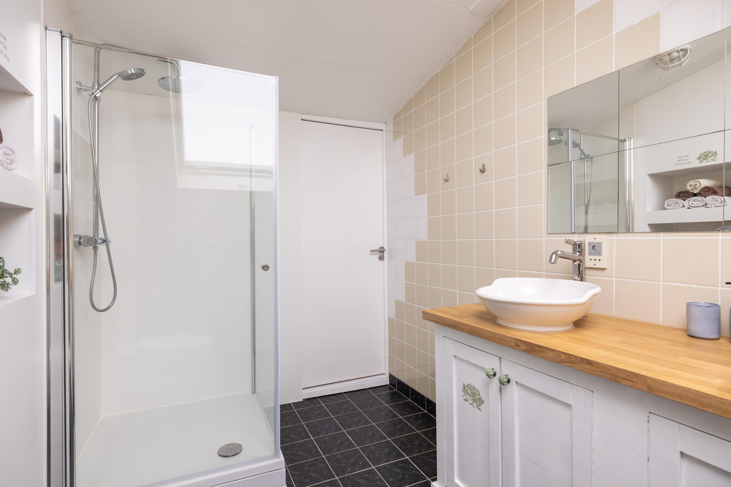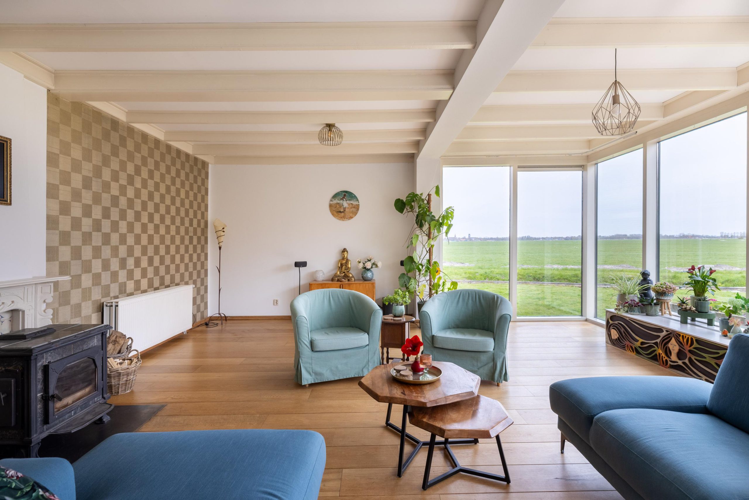 Binnen word je verwelkomd in een sfeervol en authentiek geheel. De woonkamer is zonder twijfel één van de mooiste plekken van het huis, waar binnen en buiten naadloos in elkaar overlopen en je het gevoel hebt midden in de natuur te zitten. Grote raampartijen zorgen voor een prachtig uitzicht en veel lichtinval. Aansluitend bevindt zich de royale woonkeuken, een heerlijke plek om samen te komen.