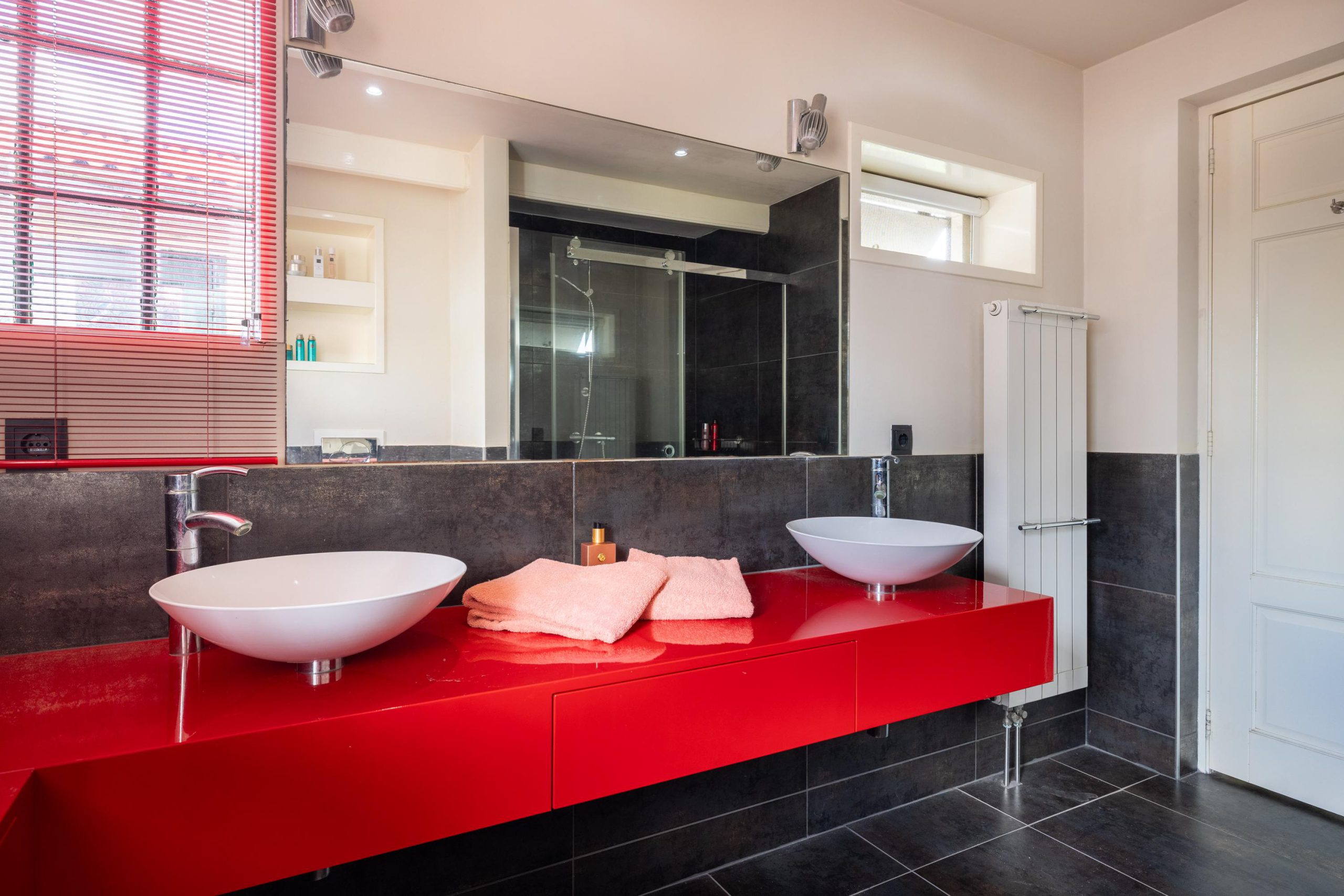 De eerste verdieping biedt vier ruime slaapkamers en een tweede badkamer met dubbele wastafel en douche. Daarnaast is er een zeer royale praktijk- of groepsruimte, perfect voor werken aan huis, dagbesteding of andere invullingen. Dankzij de aanwezige voorzieningen zoals een pantry, badkamer en toilet is het geheel bovendien uitstekend geschikt om op te splitsen in twee zelfstandige wooneenheden.