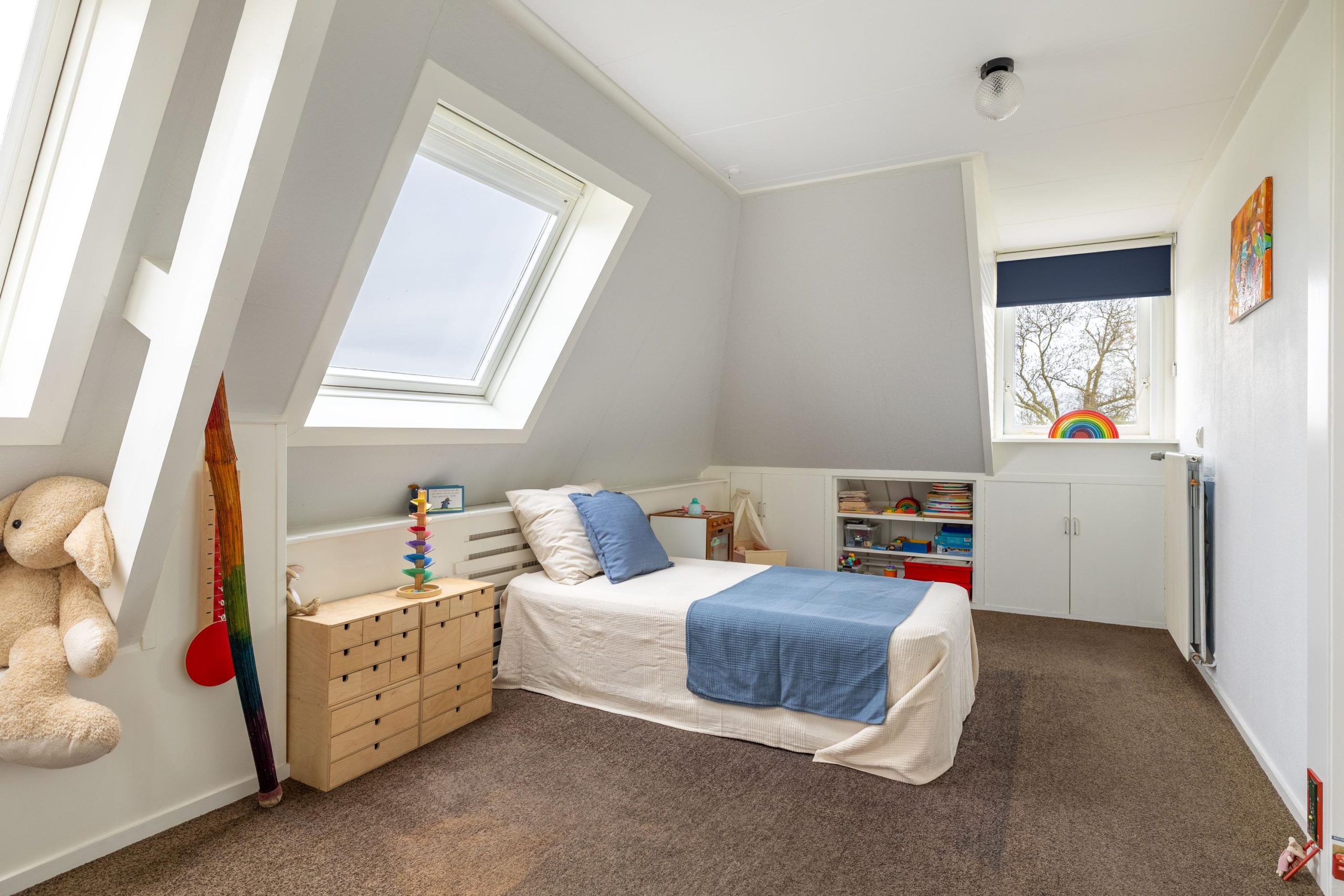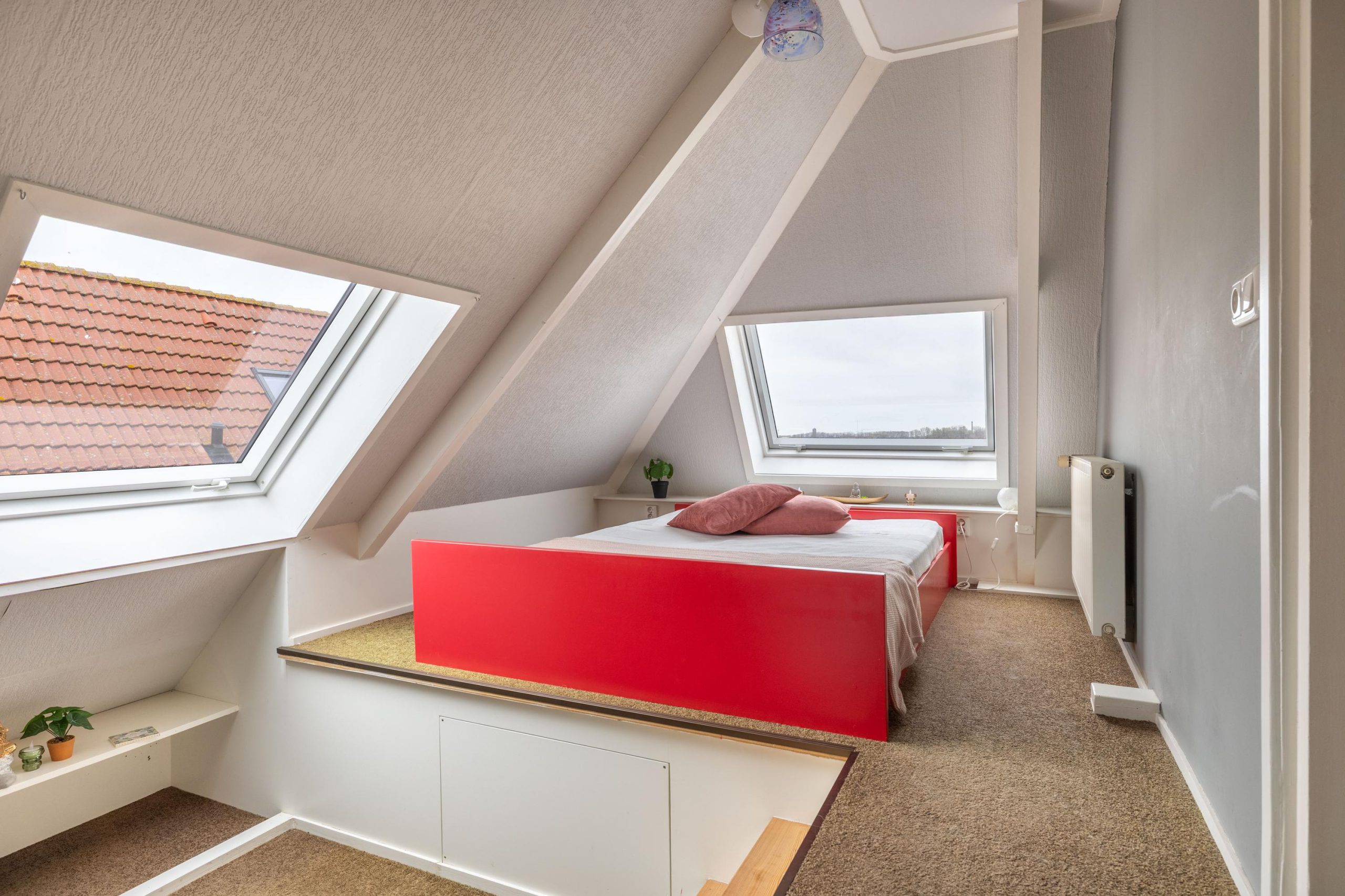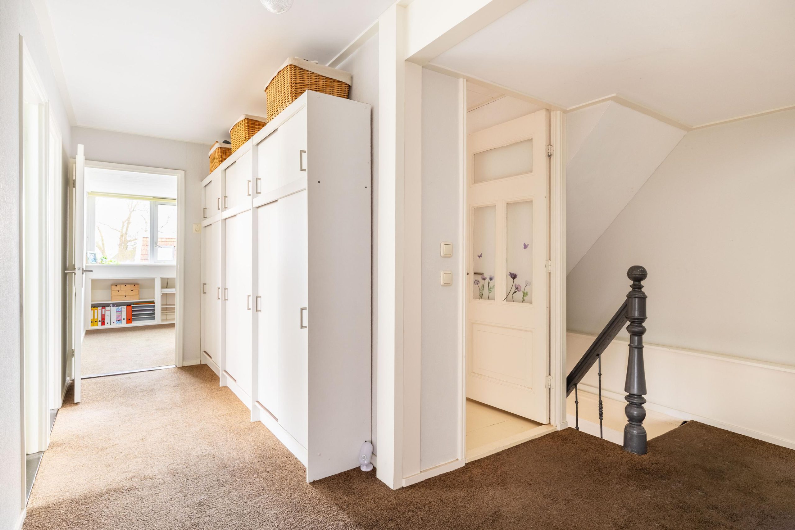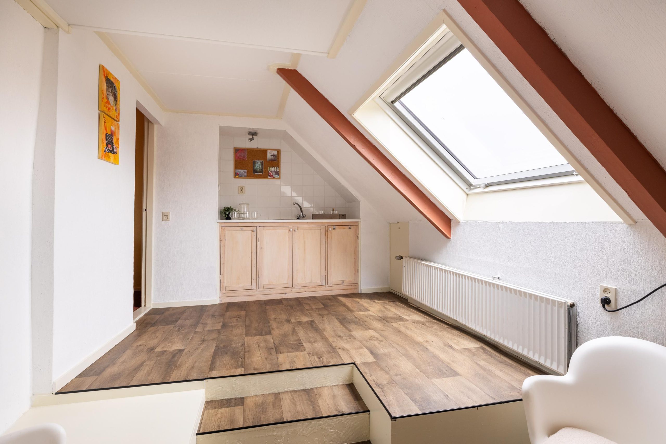 Op de tweede verdieping bevindt zich nog een volwaardige extra slaapkamer, een fijne en rustige plek die zich uitstekend leent als logeerkamer, werkruimte of privévertrek. Dankzij de aanwezige ruimte rondom is er bovendien volop bergruimte beschikbaar, wat deze verdieping extra praktisch maakt. De open indeling biedt daarnaast mogelijkheden om de ruimte verder naar eigen wens in te delen, bijvoorbeeld als combinatie van slapen en werken of als hobbyruimte.