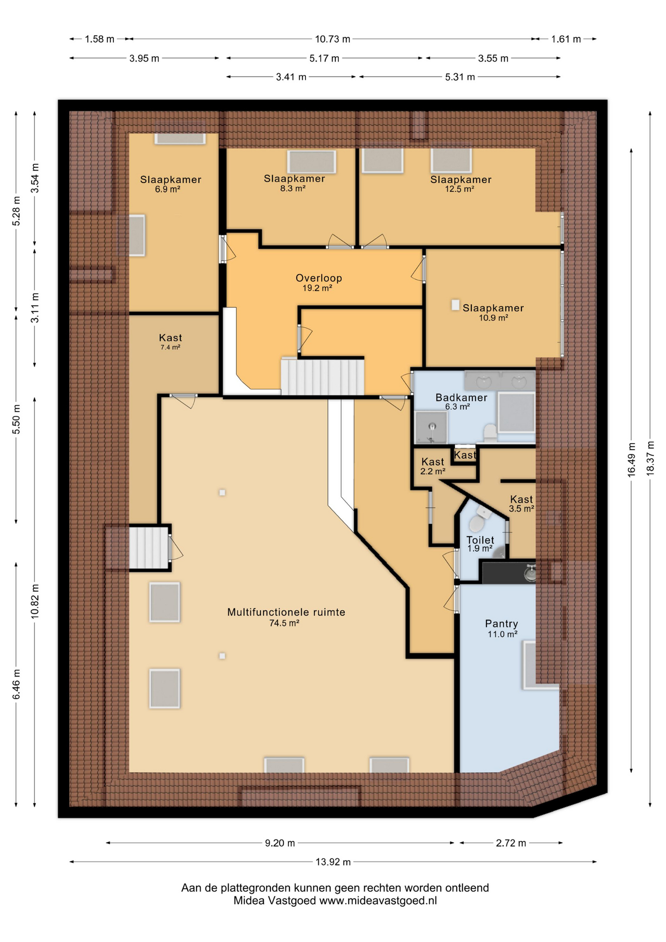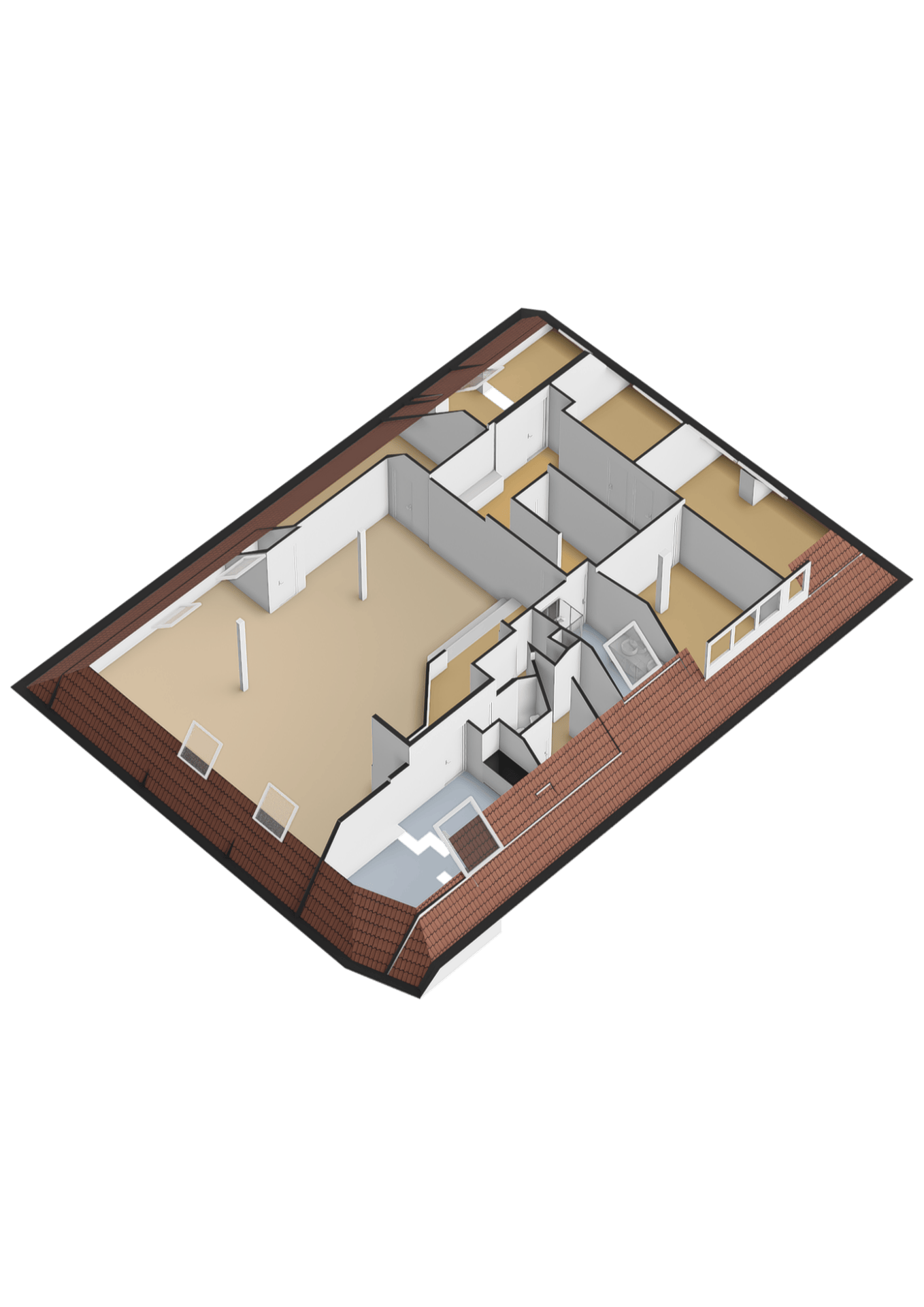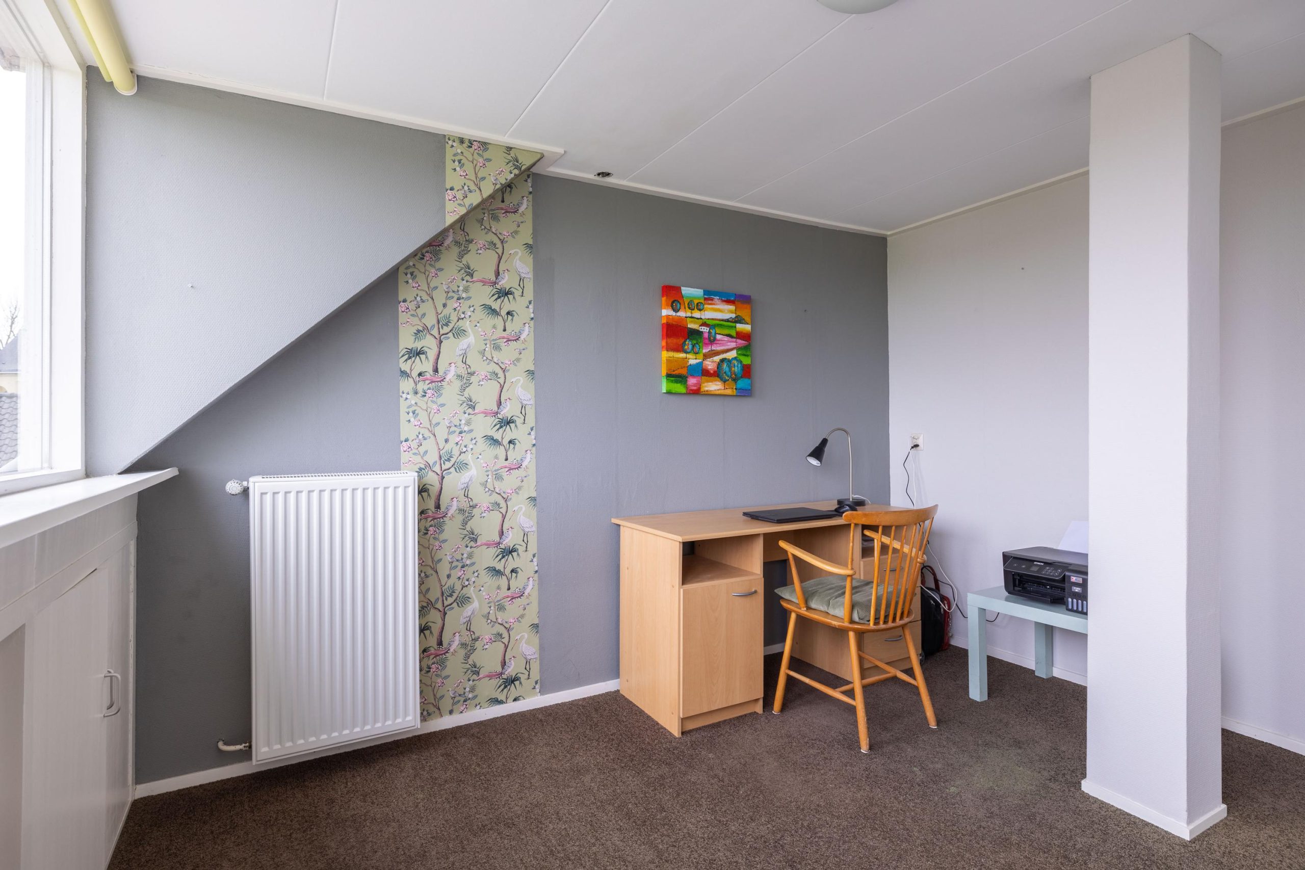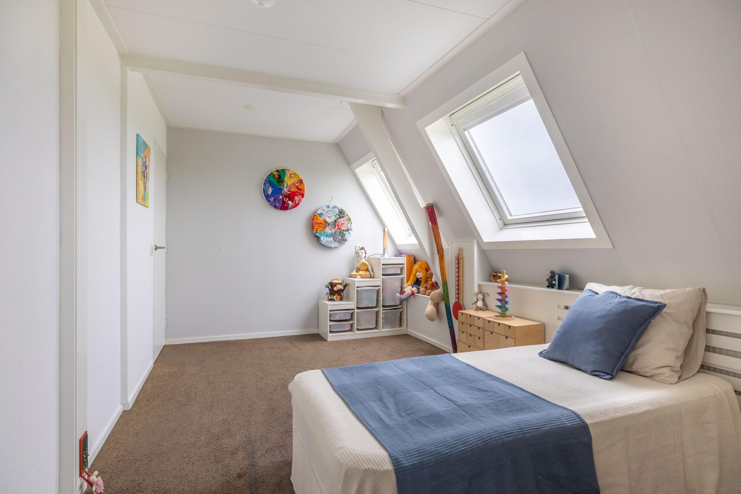 Op de tweede verdieping bevindt zich nog een volwaardige extra slaapkamer, een fijne en rustige plek die zich uitstekend leent als logeerkamer, werkruimte of privévertrek. Dankzij de aanwezige ruimte rondom is er bovendien volop bergruimte beschikbaar, wat deze verdieping extra praktisch maakt. De open indeling biedt daarnaast mogelijkheden om de ruimte verder naar eigen wens in te delen, bijvoorbeeld als combinatie van slapen en werken of als hobbyruimte.