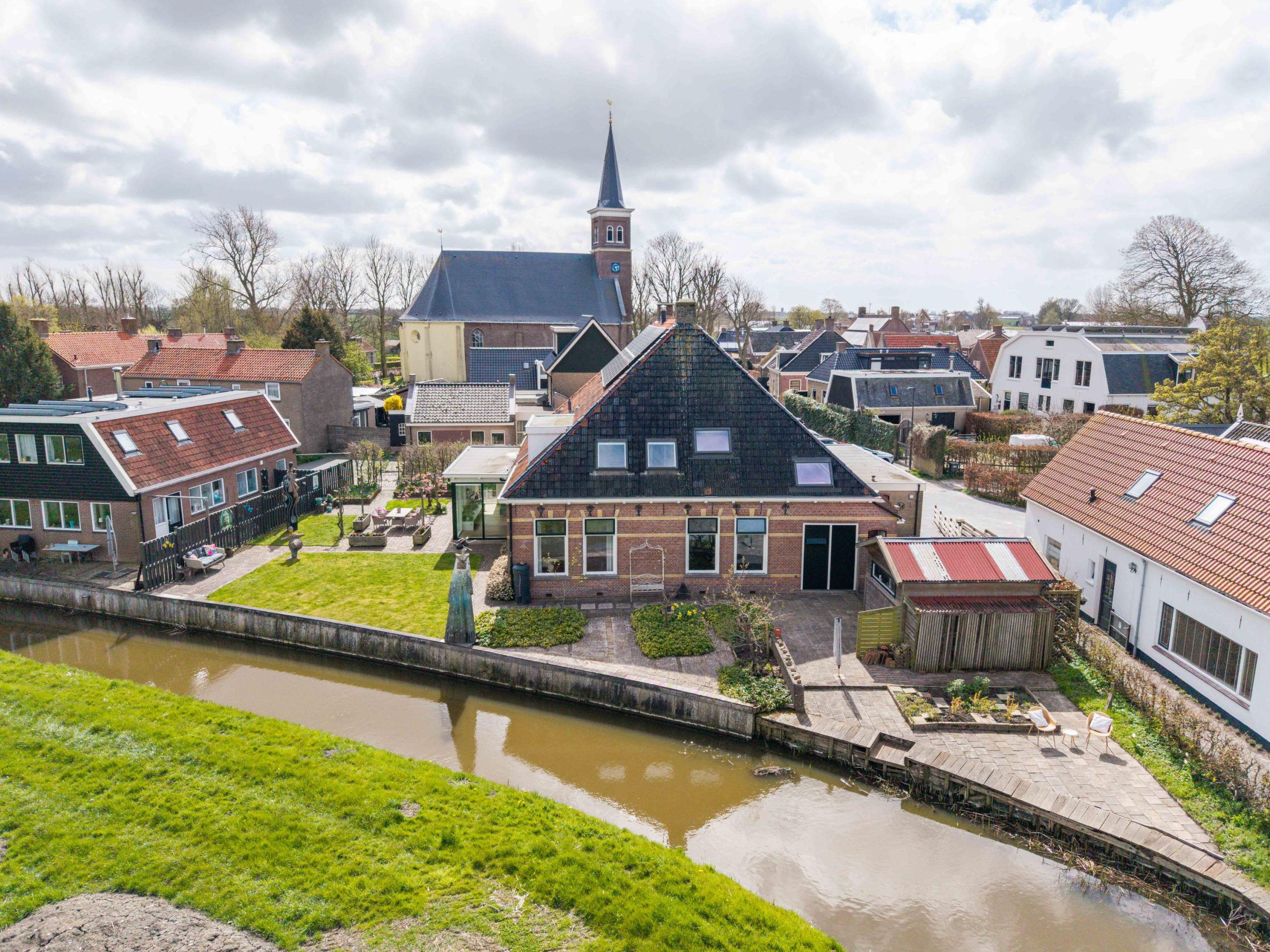 In het rustige en karaktervolle Tjerkwerd woon je hier op een bijzondere plek waar historie, water en ruimte samenkomen. Aan de voorzijde ligt de woning midden in de oude dorpskern, terwijl je aan de achterzijde juist vrij uitkijkt over het weidse landschap en het water van de Oude Haven. Deze recent uitgebaggerde sloot staat in open verbinding met de Bolswarder Trekvaart, waardoor je vanuit je eigen achtertuin zó het Friese merengebied op vaart. En dat alles op slechts enkele minuten van de A7, waardoor voorzieningen altijd binnen handbereik zijn.