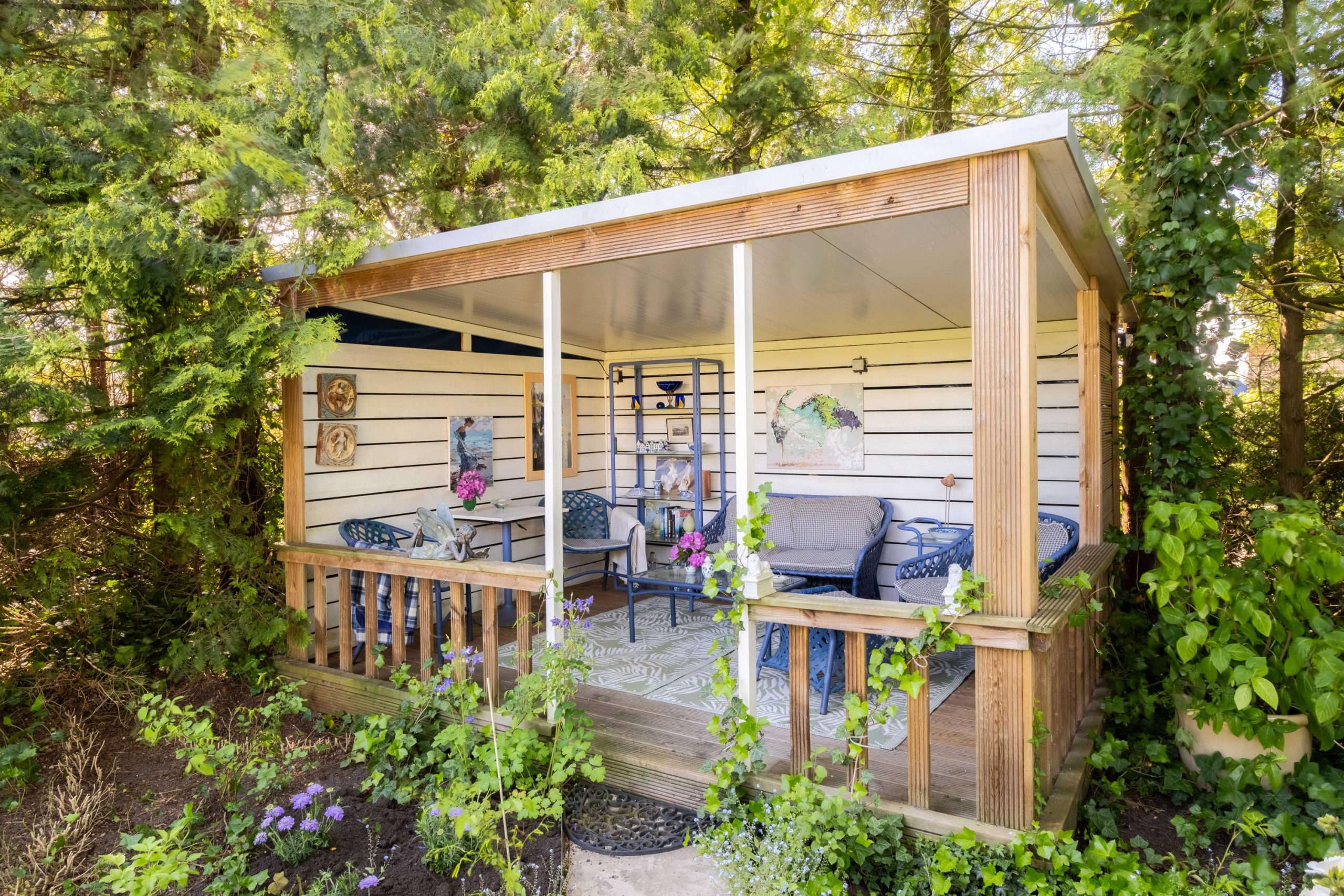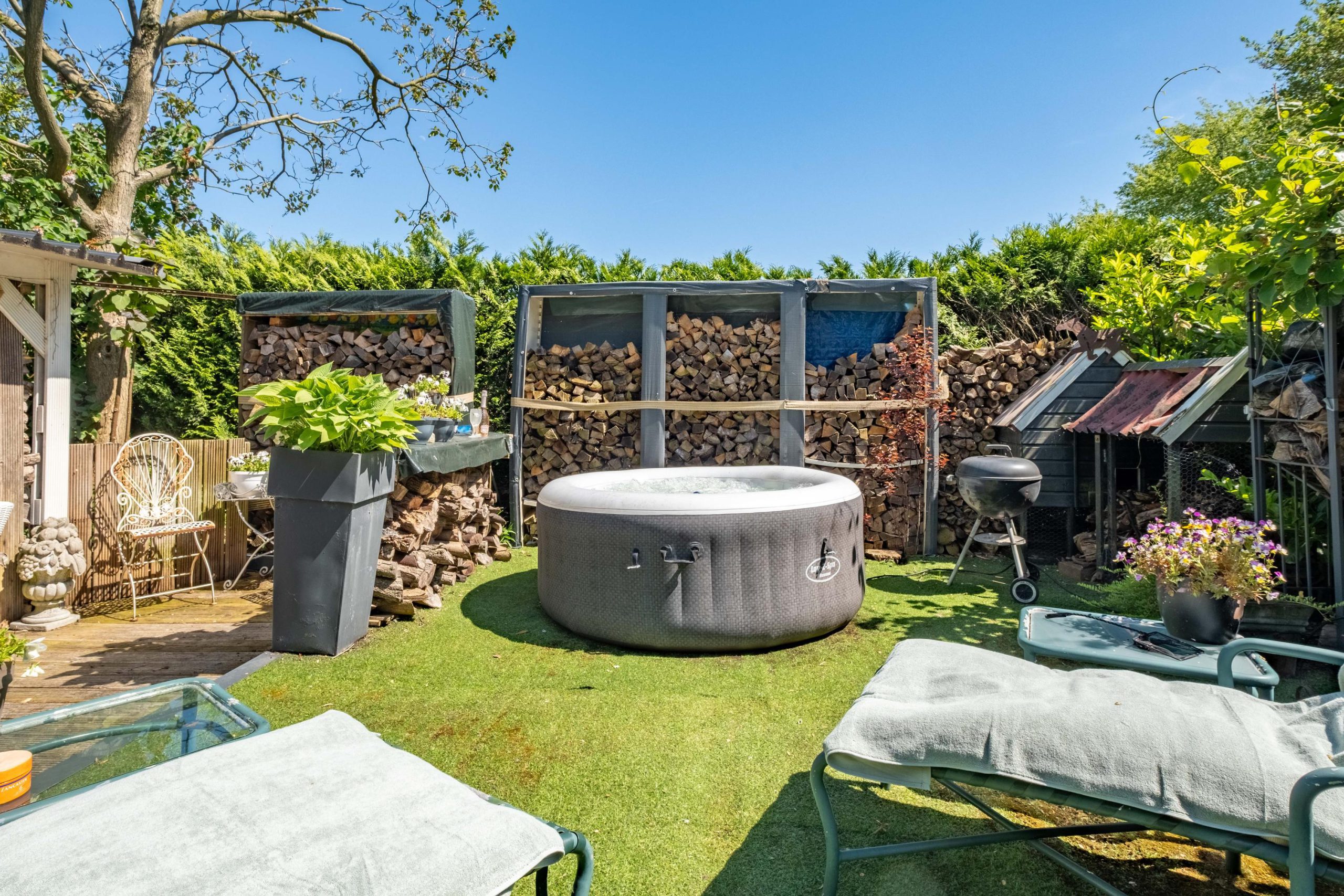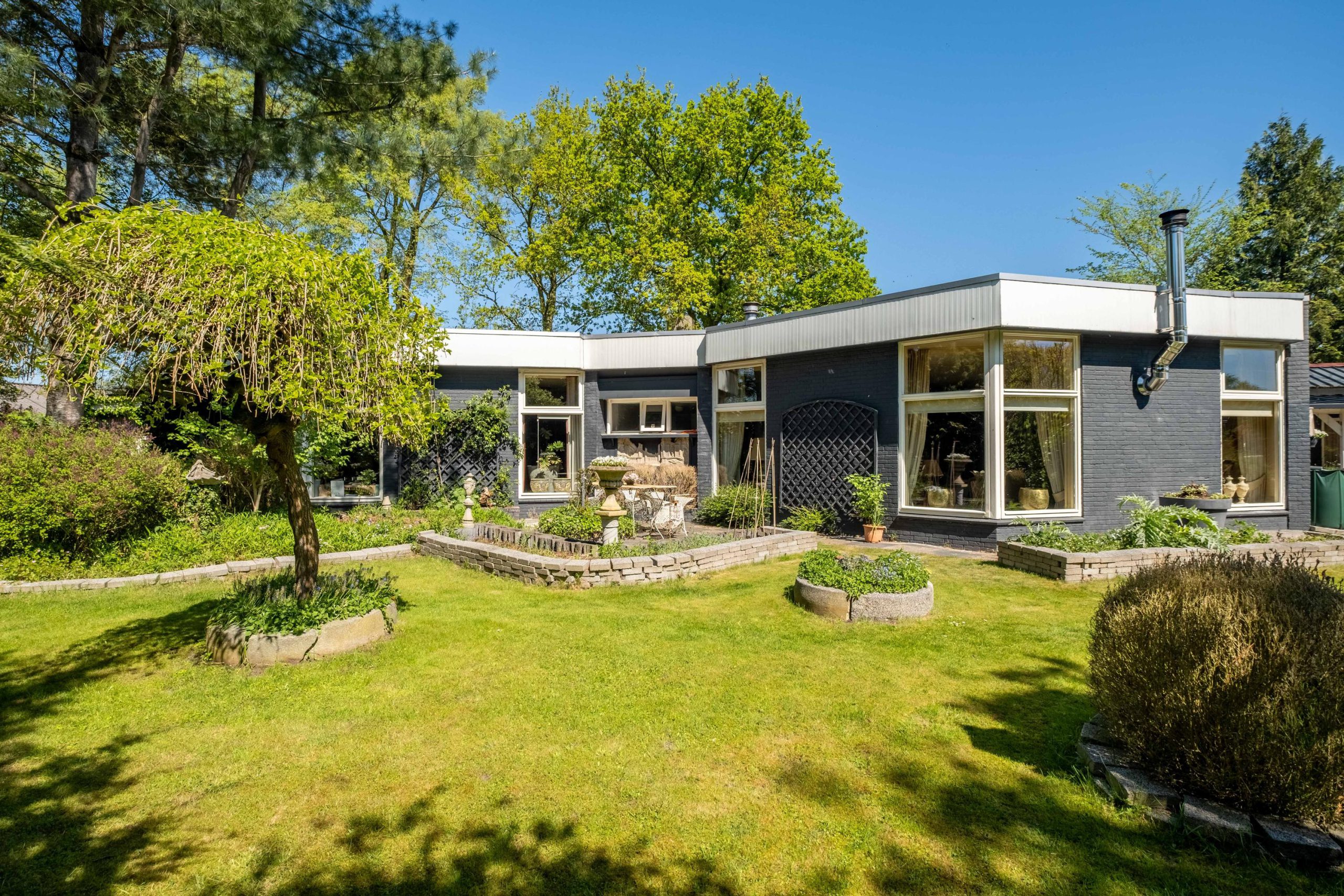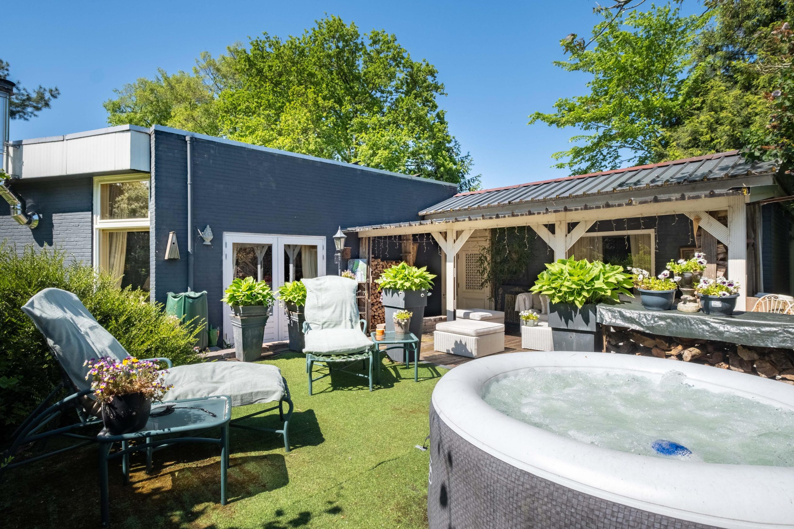 Het perceel van 1.420 m² biedt veel buitenruimte en privacy. De tuin ligt op het zuiden, met meerdere terrassen en een ruime grasweide – een fantastische speelplek voor kinderen. Er is bovendien voldoende ruimte om een zwembad aan te leggen of extra bijgebouwen te plaatsen. De tuin is groen, verzorgd en biedt altijd een plekje in de zon of schaduw.