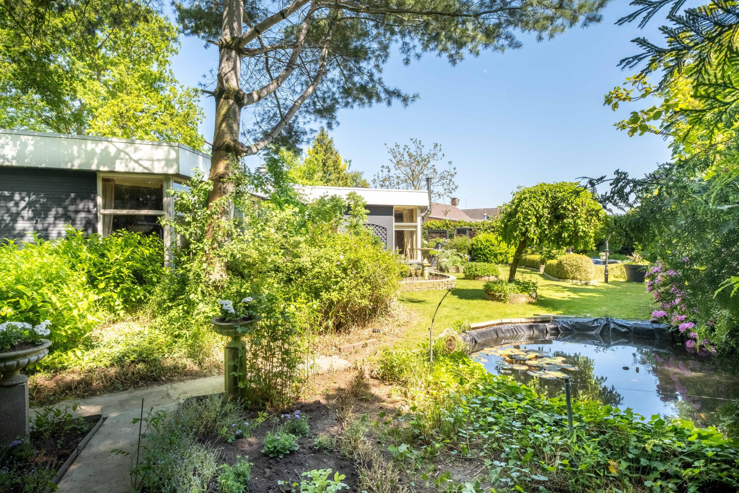 - Grote tuin op het zuiden met speelveld en ruimte voor zwembad