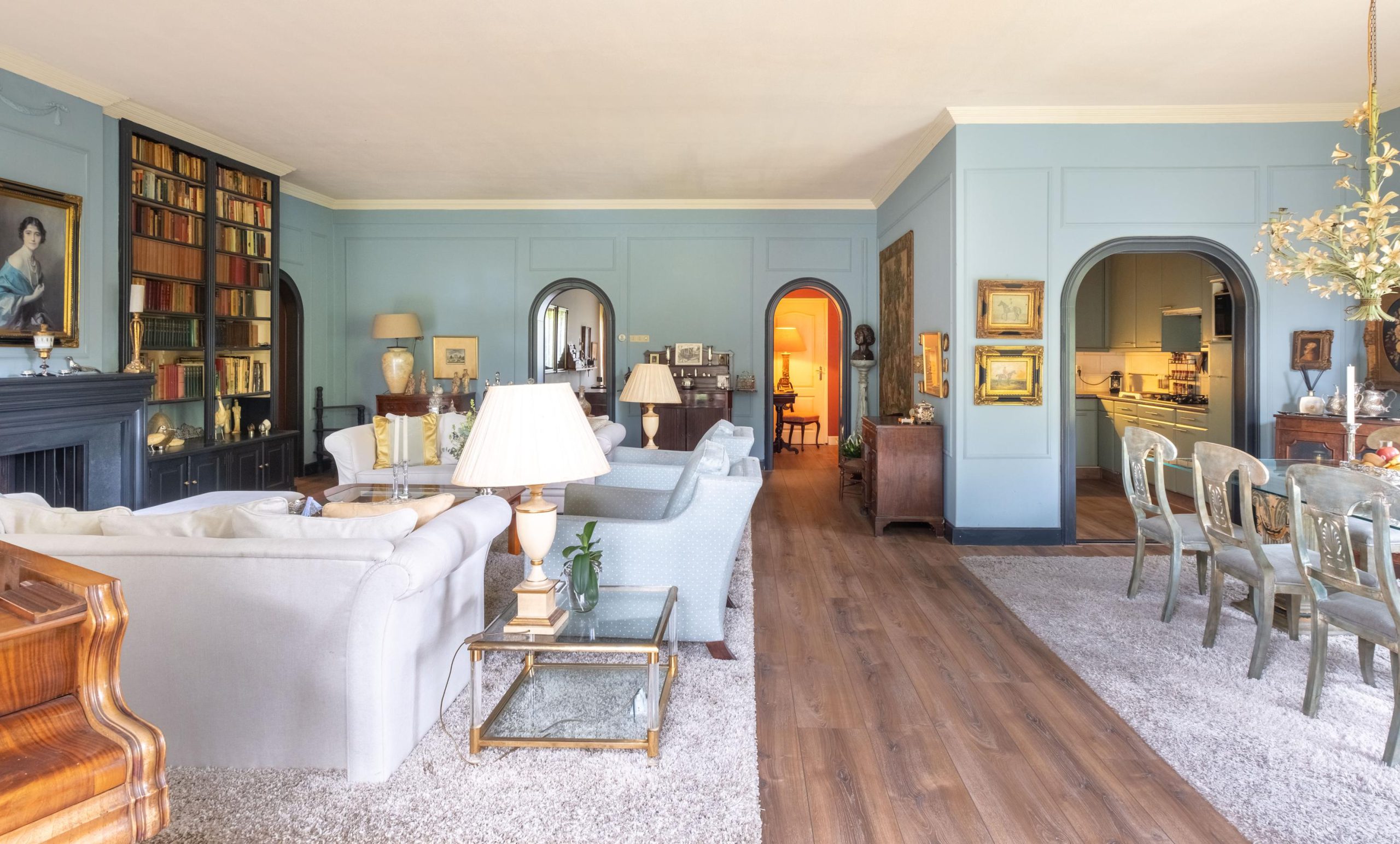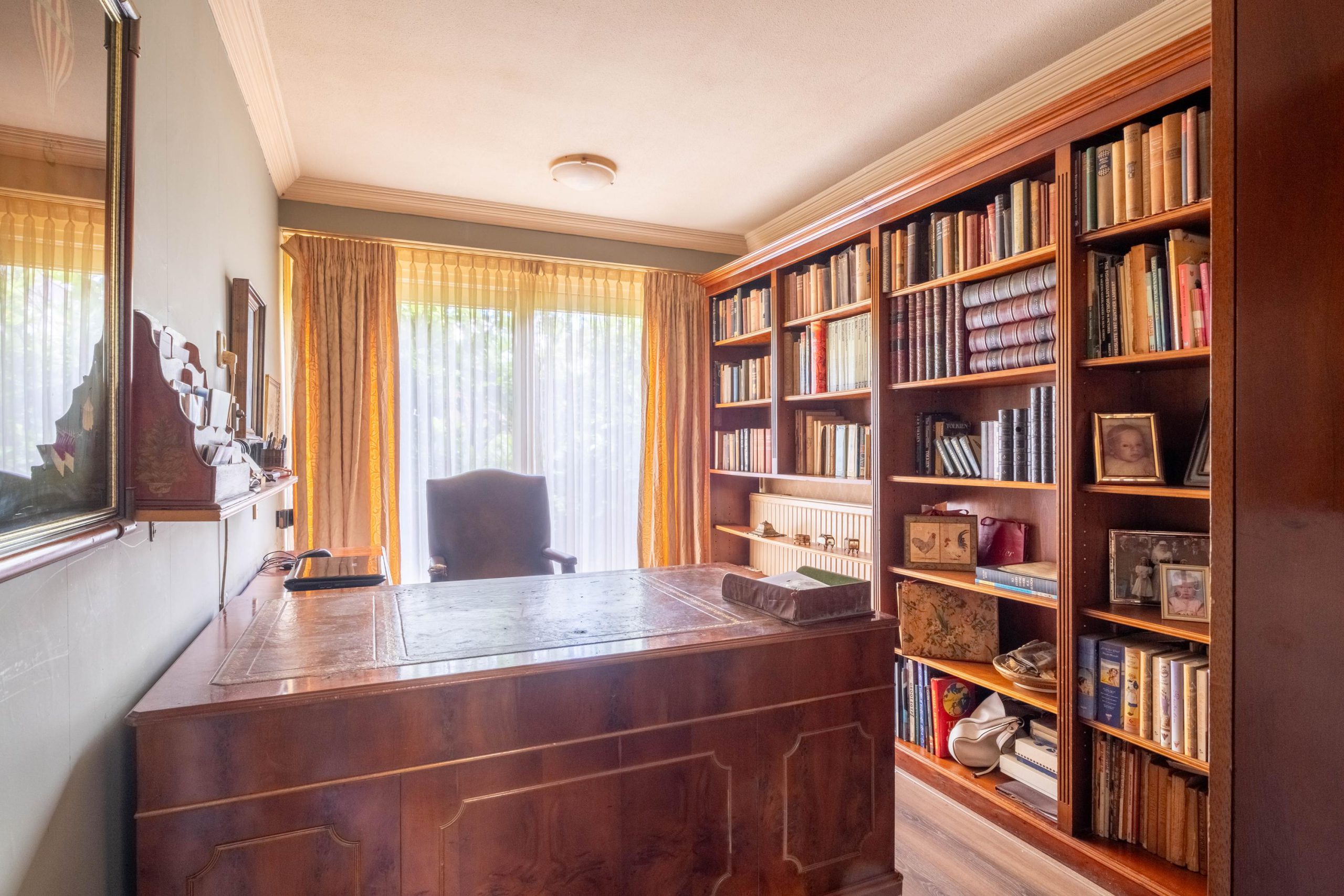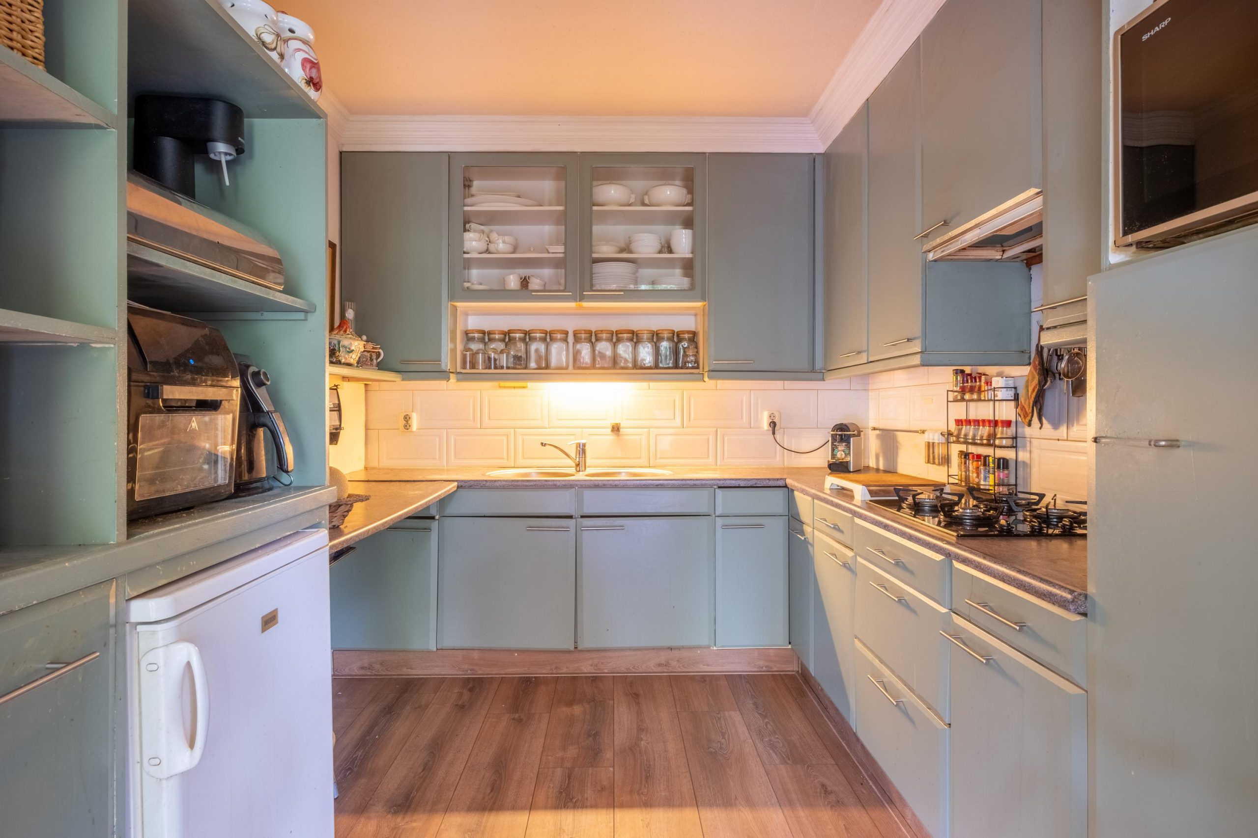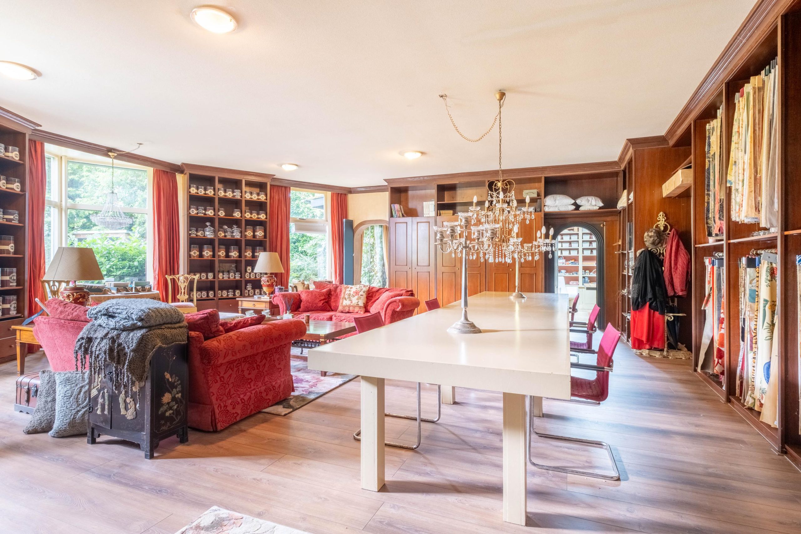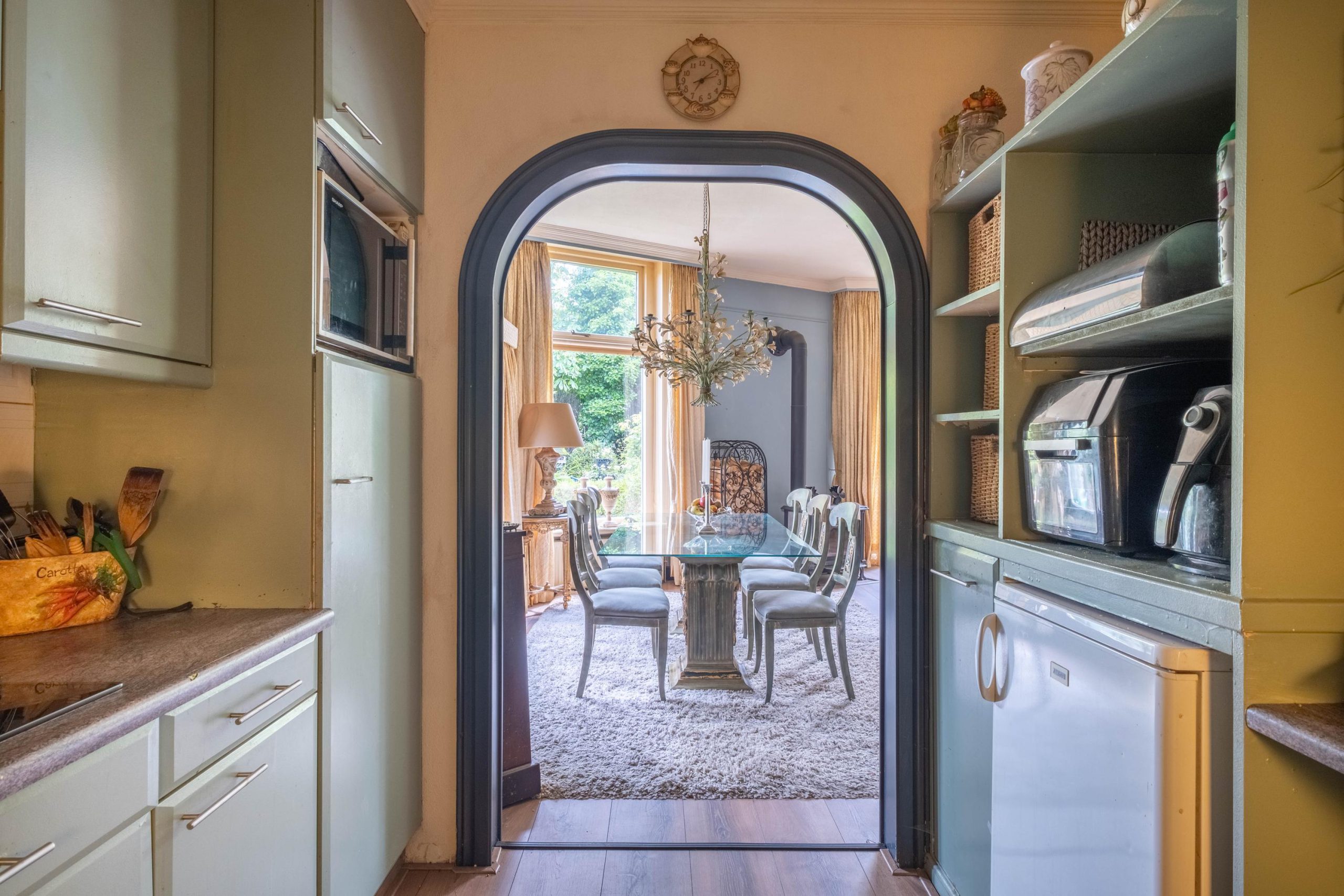 Binnen tref je een royale, goed onderhouden woning met meerdere leefruimtes. Grote raampartijen zorgen voor een lichte en open sfeer. De woonkamer biedt volop ruimte voor een royale zithoek en eettafel, met zicht op de tuin. De keuken is gezellig en voorzien van de nodige apparatuur – een fijne plek om te koken en samen te eten, zonder overdadige luxe.