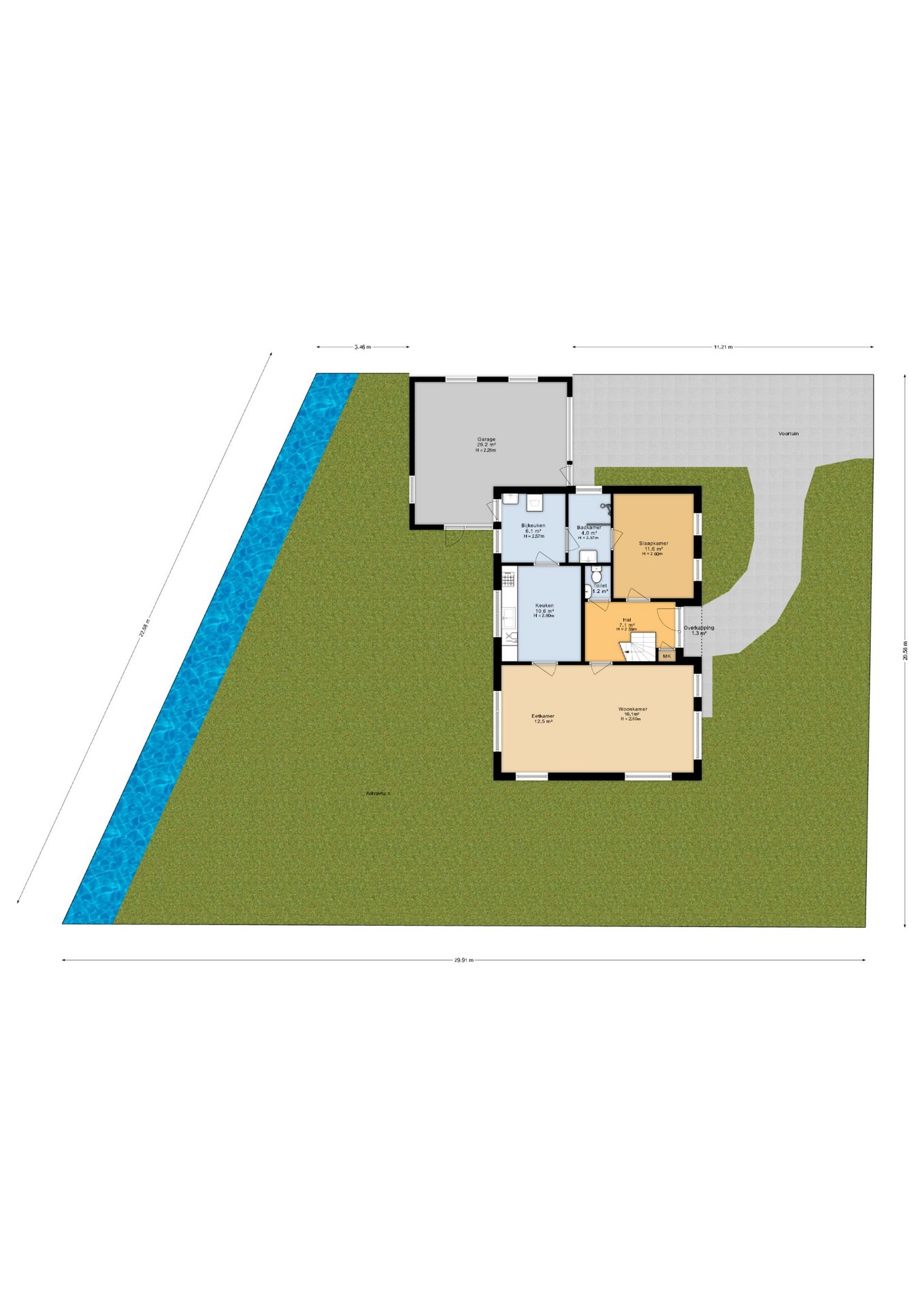Via de oprit met ruime parkeergelegenheid bereik je de entree. De woning ademt meteen warmte en licht uit. In de hal vind je het toilet en de trap naar boven. Vanuit hier loop je zo de woonkamer in. De woonkamer is ruim en licht, met meerdere grote ramen waardoor je overal om je heen zicht hebt op groen. Zowel aan de voor- als achterzijde kijk je uit over de landerijen. Waarbij je aan de achterzijde ook nog eens uitzicht hebt op het aangrenzende water. Een plek die steeds weer uitnodigt om even stil te staan en te genieten. Grenzend aan de woonkamer ligt de royale dichte keuken. Hier is ruimte genoeg om uitgebreid te koken en te tafelen. Vanuit de keuken stap je de bijkeuken in: praktisch voor voorraad, witgoed en toegang naar de tuin en garage. Deze woning is levensloopbestendig. Op de begane grond bevindt zich namelijk een slaapkamer, met daarnaast een badkamer voorzien van douche en wastafel. Comfortabel en toekomstbestendig dus.