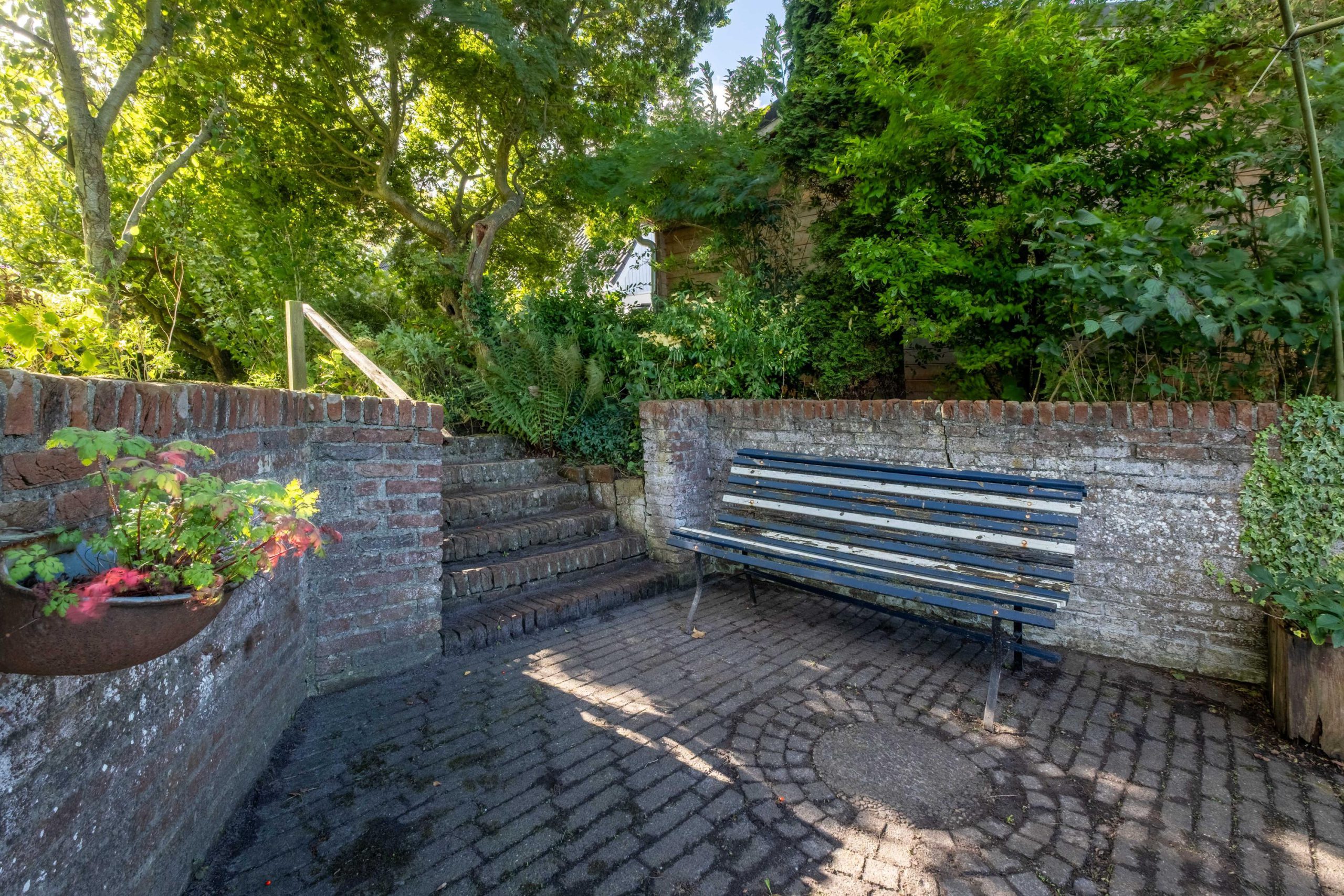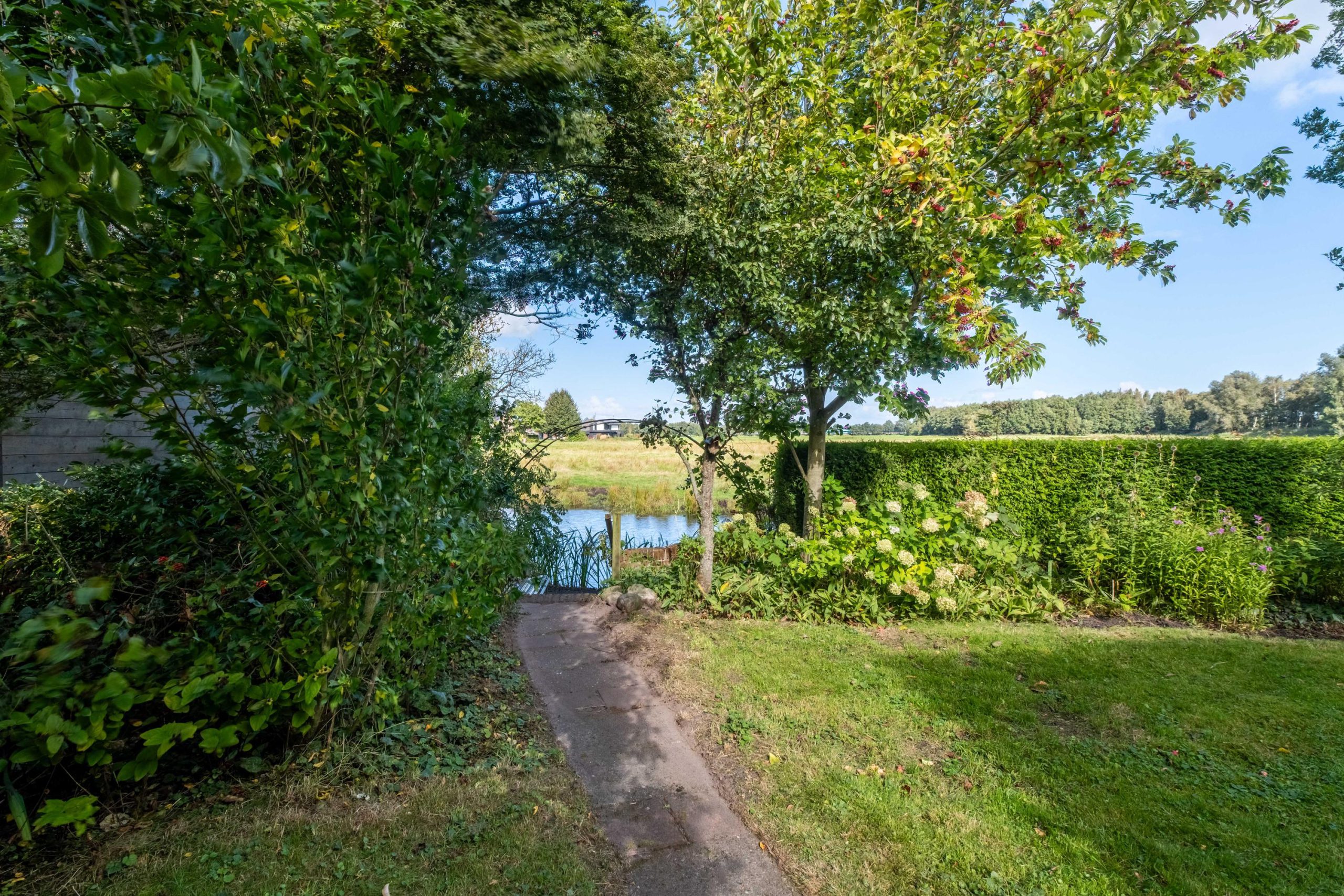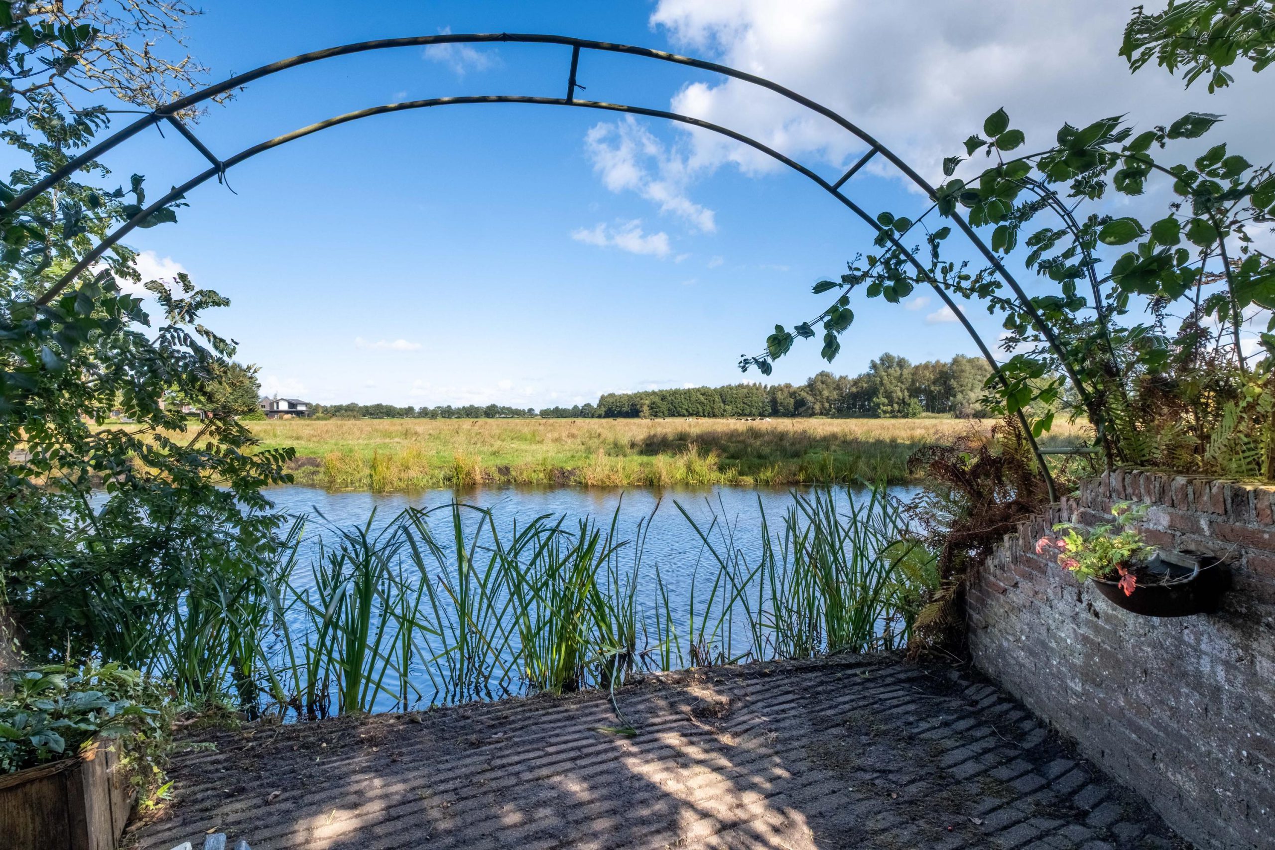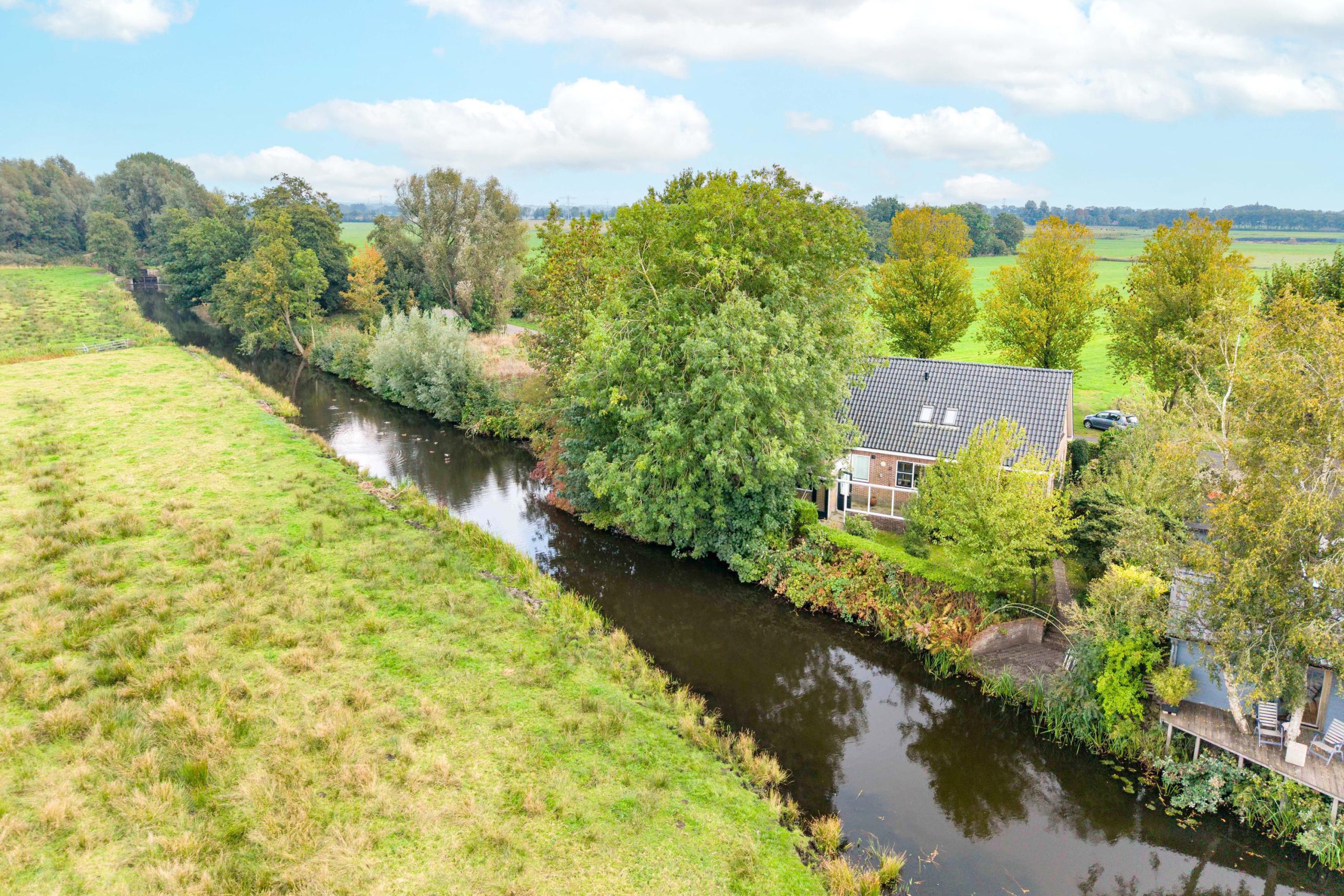 De tuin rondom het huis is een plek om verliefd op te worden. Aan de voorzijde heerlijk beschut, aan de achterzijde vrij uitzicht over de weilanden. Hier staan koeien letterlijk water te drinken uit je ‘achtertuin’. Je hebt je eigen vlonder aan het water: een idyllisch hoekje om te vissen, te zitten of, bij strenge vorst, de schaatsen onder te binden.