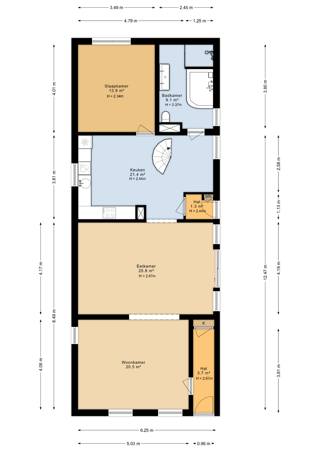 - Binnenzijde volledig gestuct en geschilderd in 2021