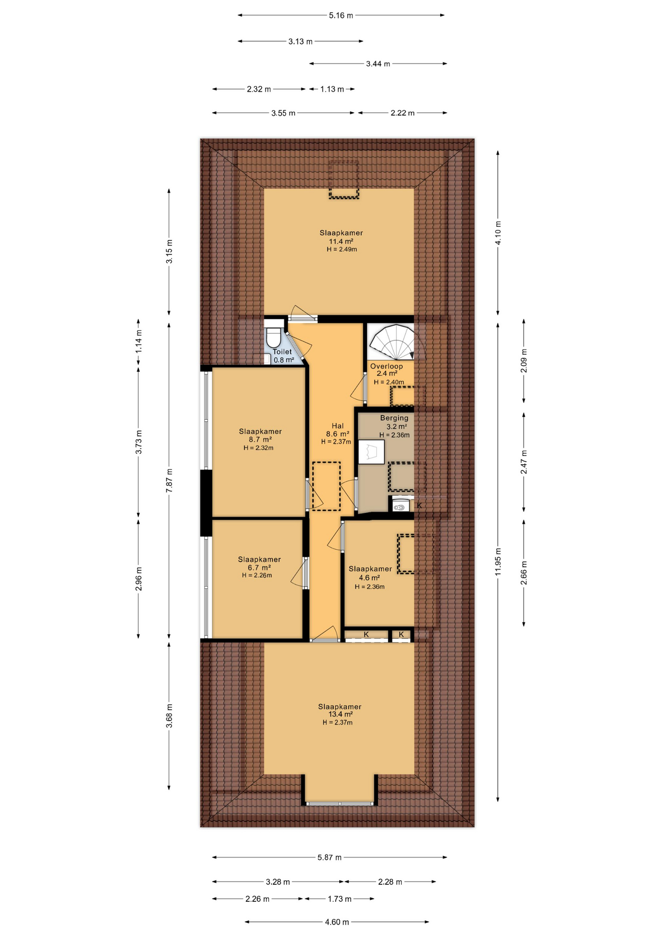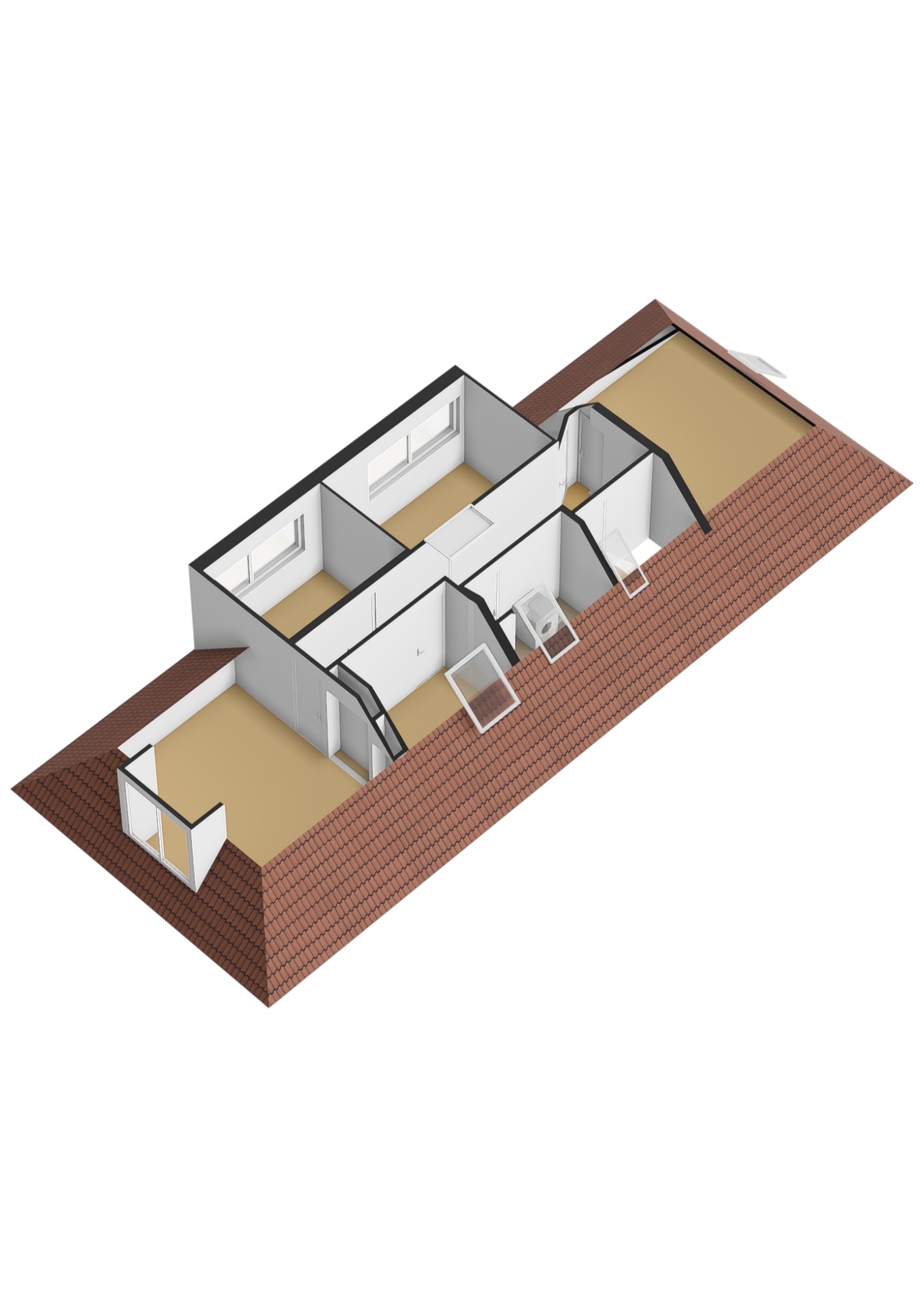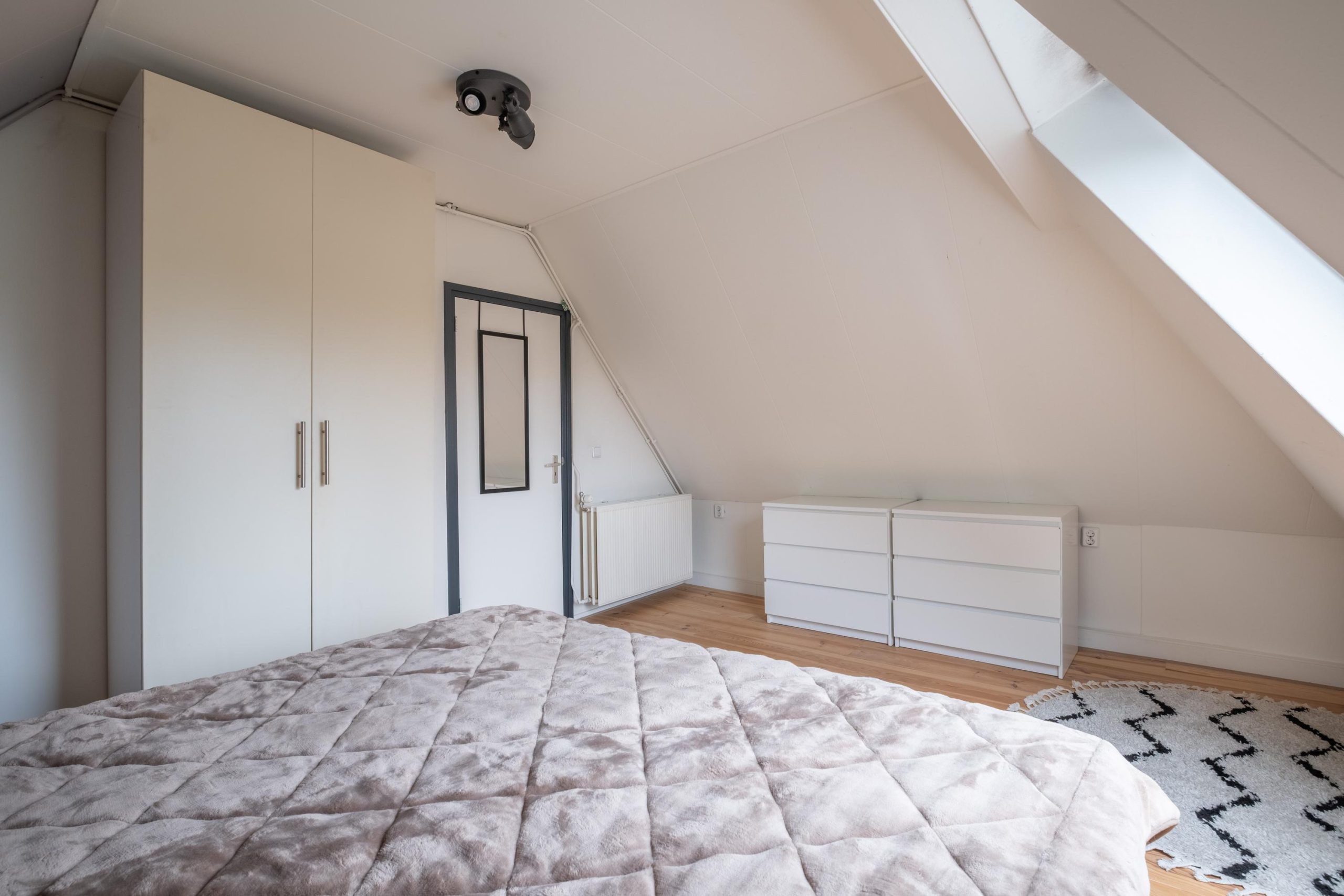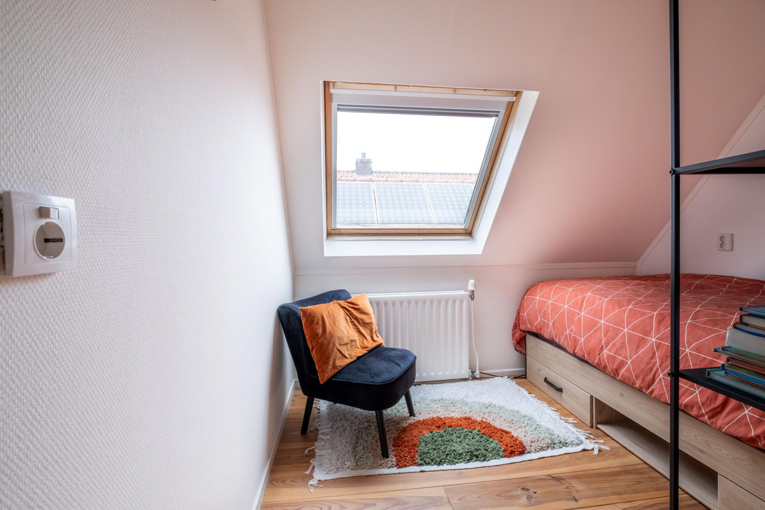 Via de elegante open wenteltrap bereiken we de eerste verdieping, waar een karakteristieke houten vloer over de gehele verdieping ligt. Aan de ruime overloop grenzen maar liefst vijf slaapkamers! Twee royale kamers van 11,4 en 13,4 m², waarvan één met vaste kasten, en drie extra slaapkamers waarvan twee met rechte wanden — ideaal als kinderkamer, werkkamer of inloopkast. Daarnaast is er een tweede toilet met wastafel, een praktische berging met witgoedaansluiting én toegang tot de vliering via een vlizotrap.