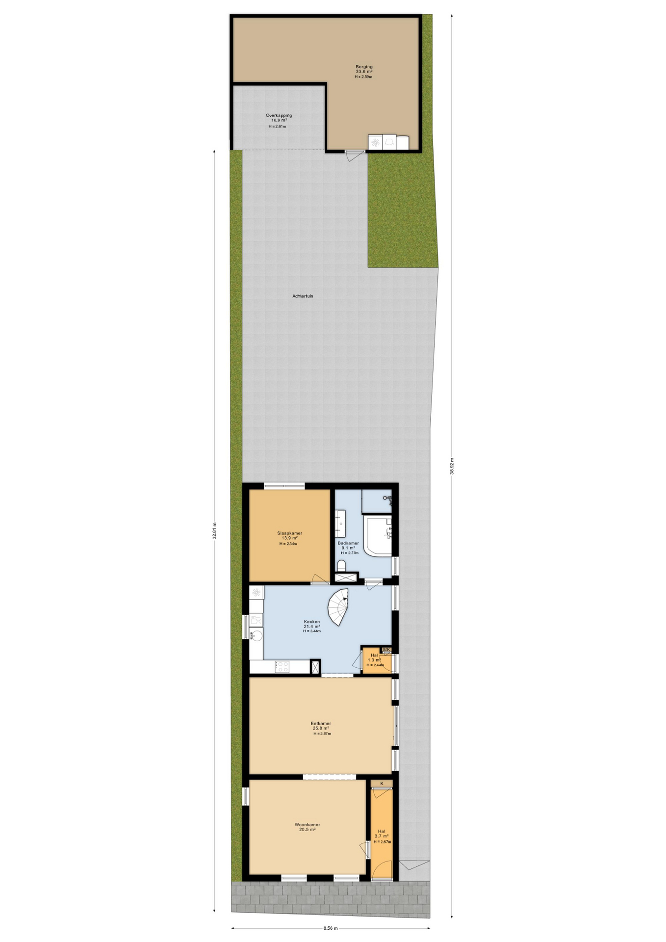 En dan de tuin: wat een heerlijke, vrije plek! Dankzij de schutting geniet je van volop privacy, de onderhoudsvriendelijke inrichting met tegels en kunstgras zorgt voor gemak, en achterin vind je een ruime overkapping met een riante schuur van 33,6 m². Perfect voor de hobbyist of klusser. De tuin is ook bereikbaar via een achterom.