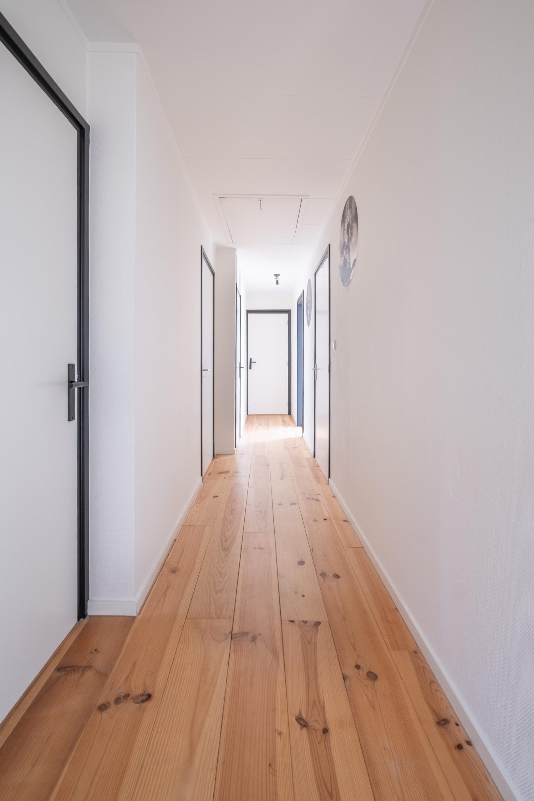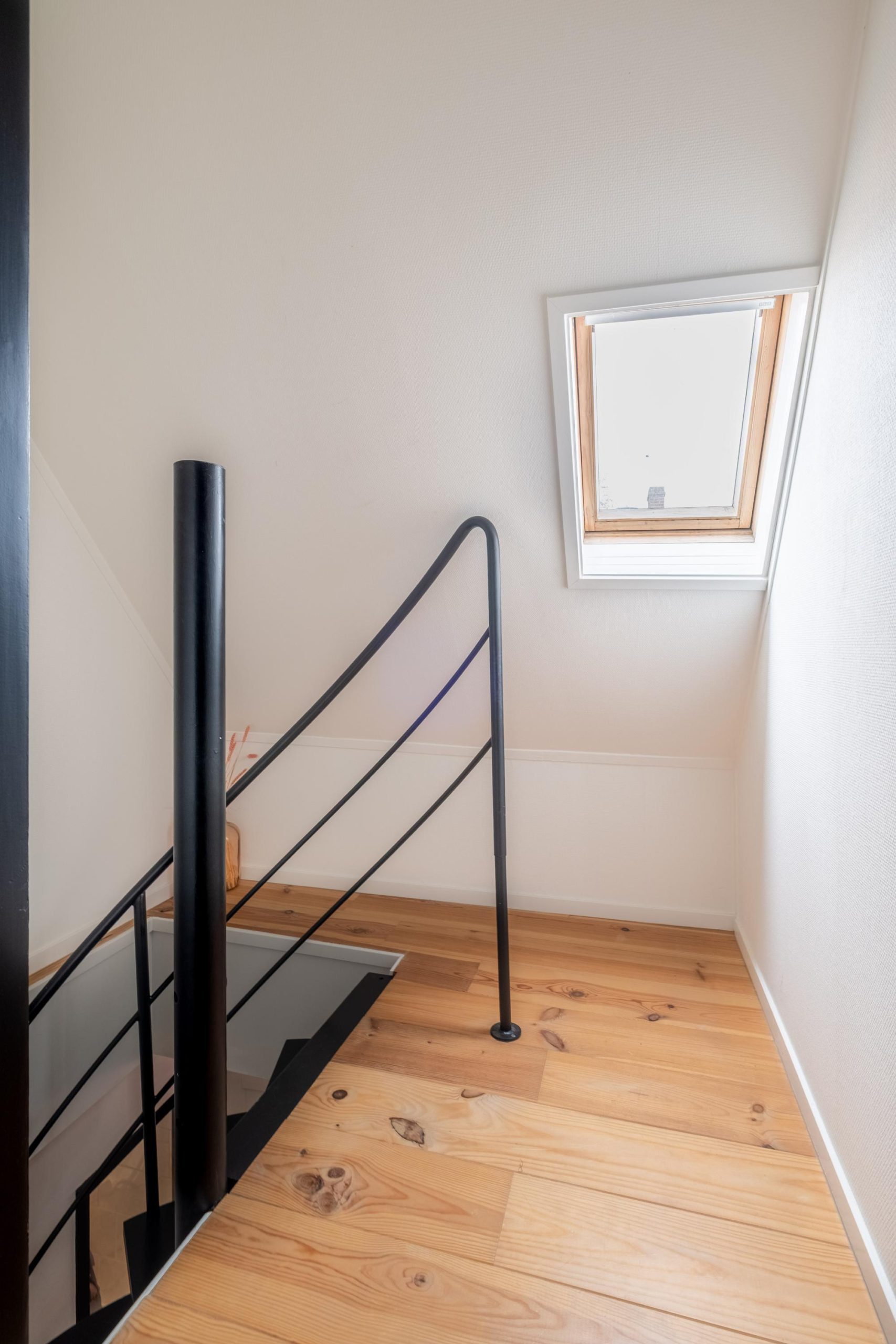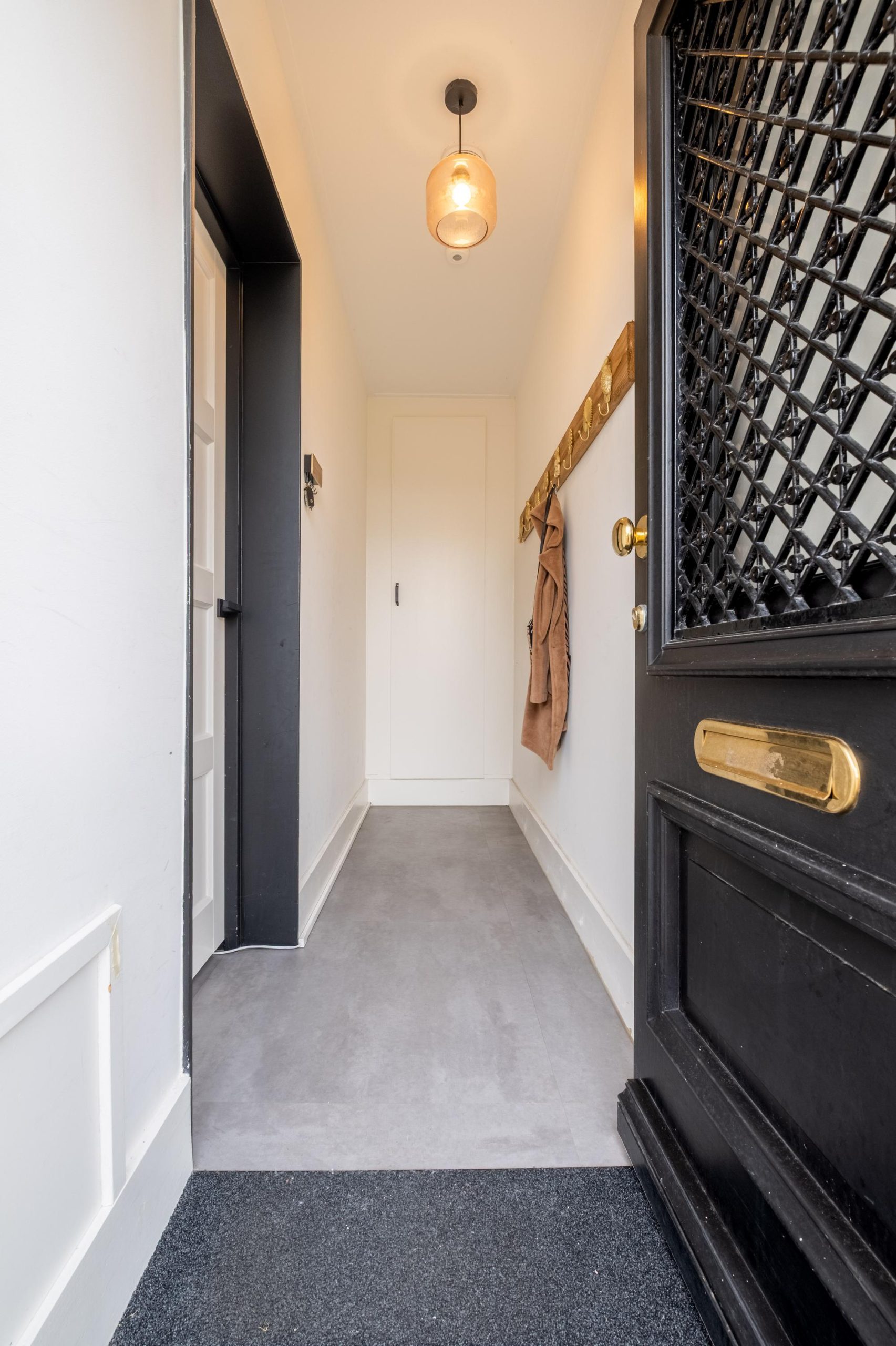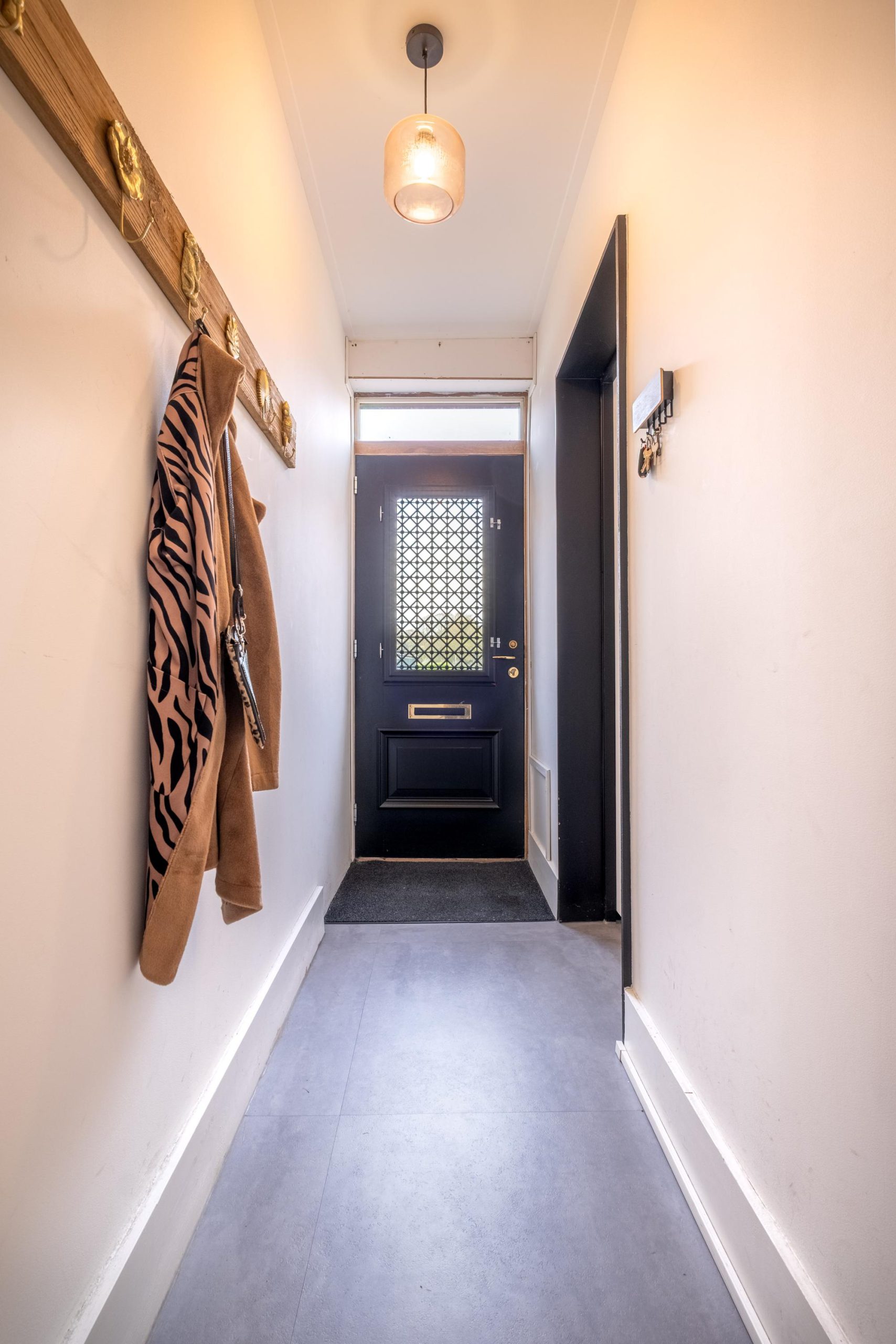 De straat straalt rust en karakter uit, en nummer 22 springt meteen in het oog met de frisse gevel en verzorgde uitstraling. Zodra we binnenstappen in de hal, valt direct op hoe strak en smaakvol alles is afgewerkt.