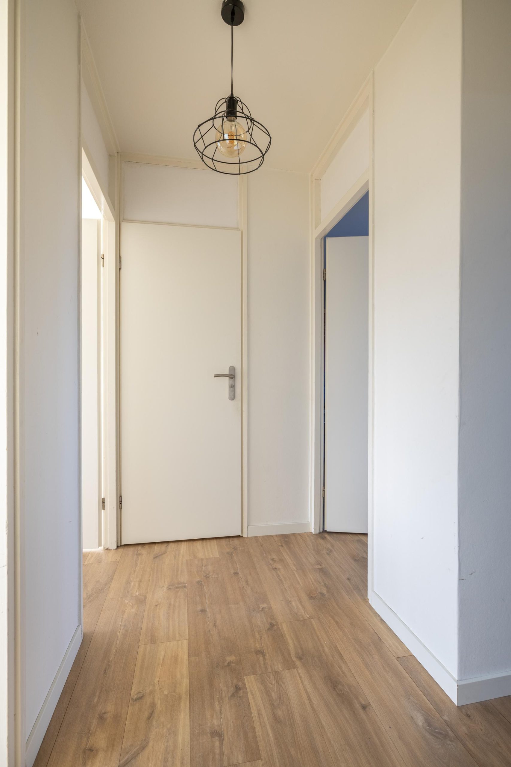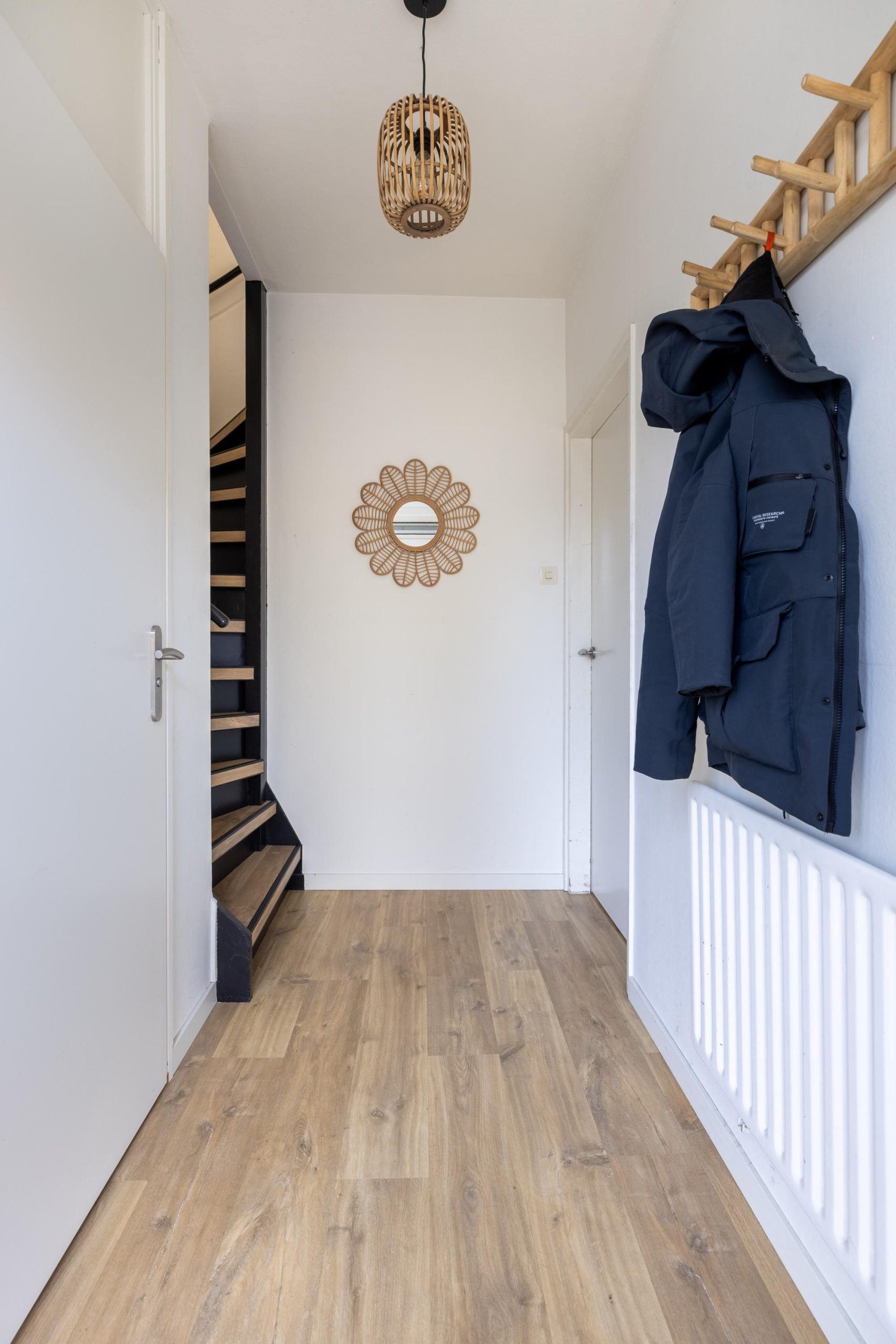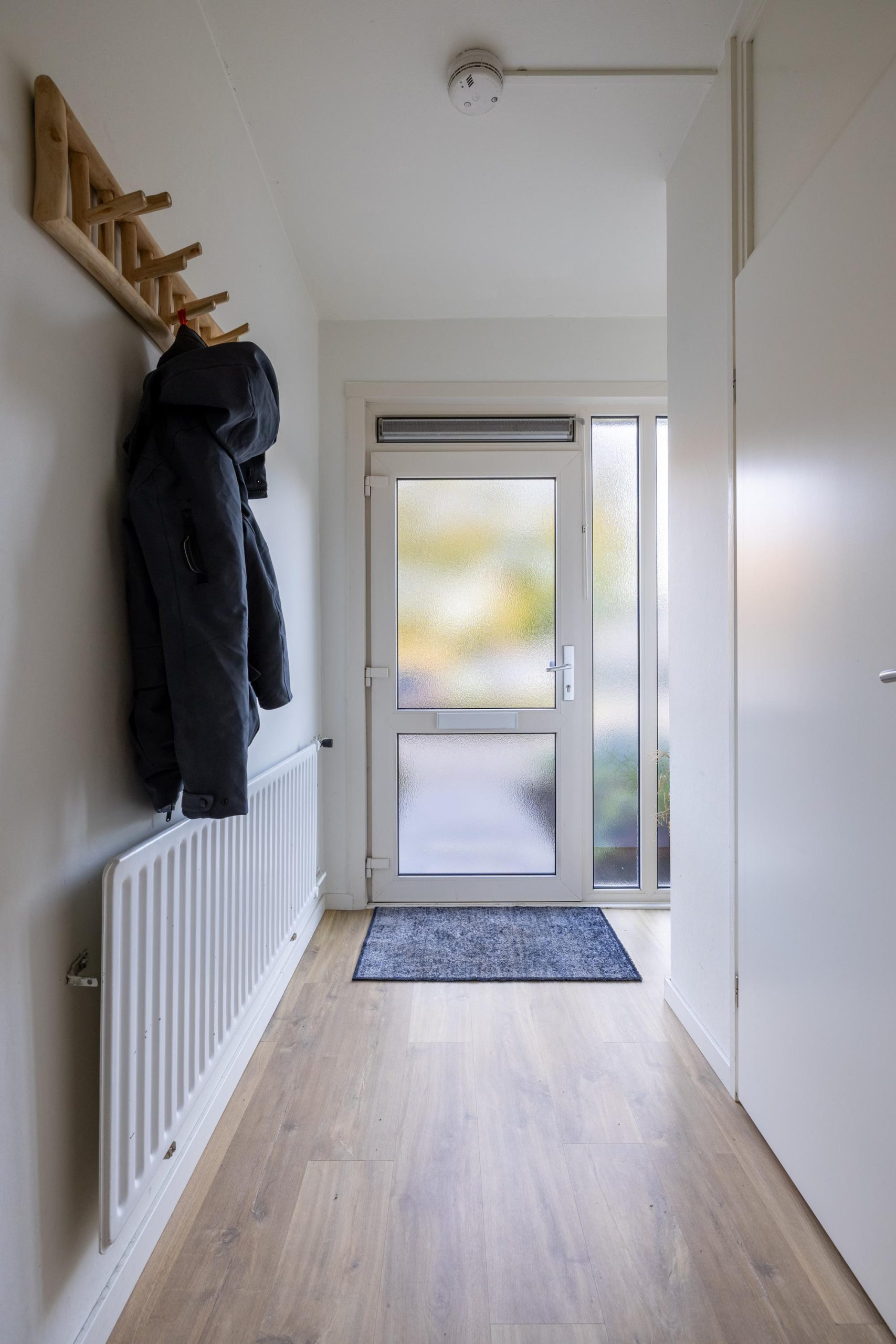 Je komt binnen via de hal, waar je de meterkast en het toilet vindt. Licht, overzichtelijk en direct door naar de woonkamer: een logische en prettige routing.