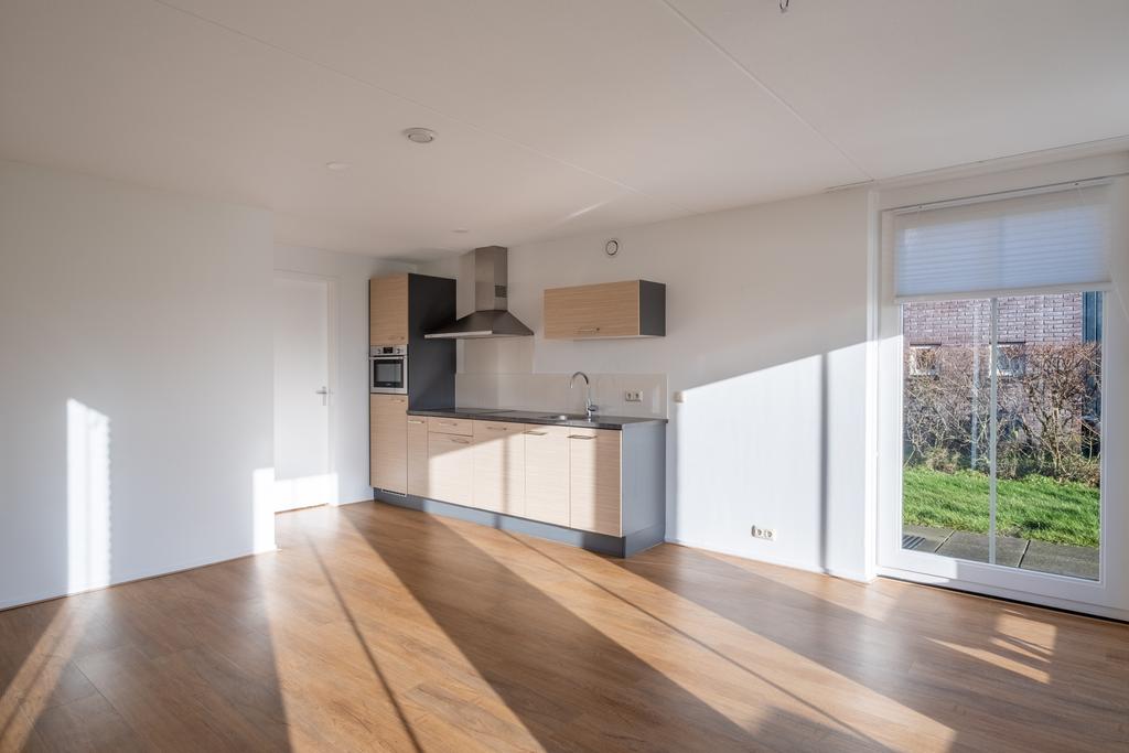 Via de voordeur stap je de ruime entree binnen. Hier bevindt zich het moderne toilet met fonteintje; geheel vernieuwd in 2020. Wanneer je doorloopt kom je uit in de tuingerichte woonkamer met prachtig uitzicht. Hier valt direct de hoeveelheid licht die via de grote raampartijen naar binnen schijnt op. Via de openslaande deur stap je zo de achtertuin in. Genieten! In deze open leefruimte bevindt zich ook de moderne keuken, voorzien van verschillende inbouwapparatuur: een koelkast, inductiekookplaat, AEG vaatwasser (2021), Bosch combimagnetron en afzuiginstallatie. Een praktische bijkomstigheid is de trappenkast tegenover de keuken: ideaal voor het bergen van voorraad.